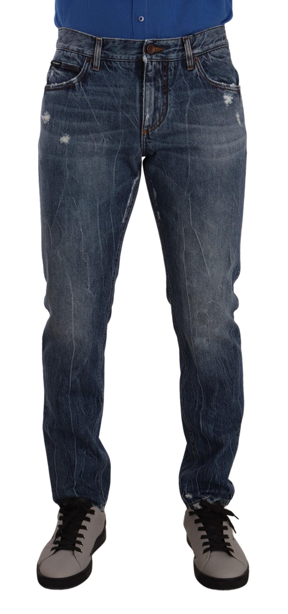Exude timeless style in these exquisite Dolce & Gabbana straight fit jeans. Expertly crafted in Italy, the superb 100% cotton material ensures both comfort and durability. A regular fit falls perfectly around the waist, harmonizing with any ensemble for a day out or a casual evening. The classic blue hue adds a touch of traditional denim charm, tailored to elevate your wardrobe essentials.