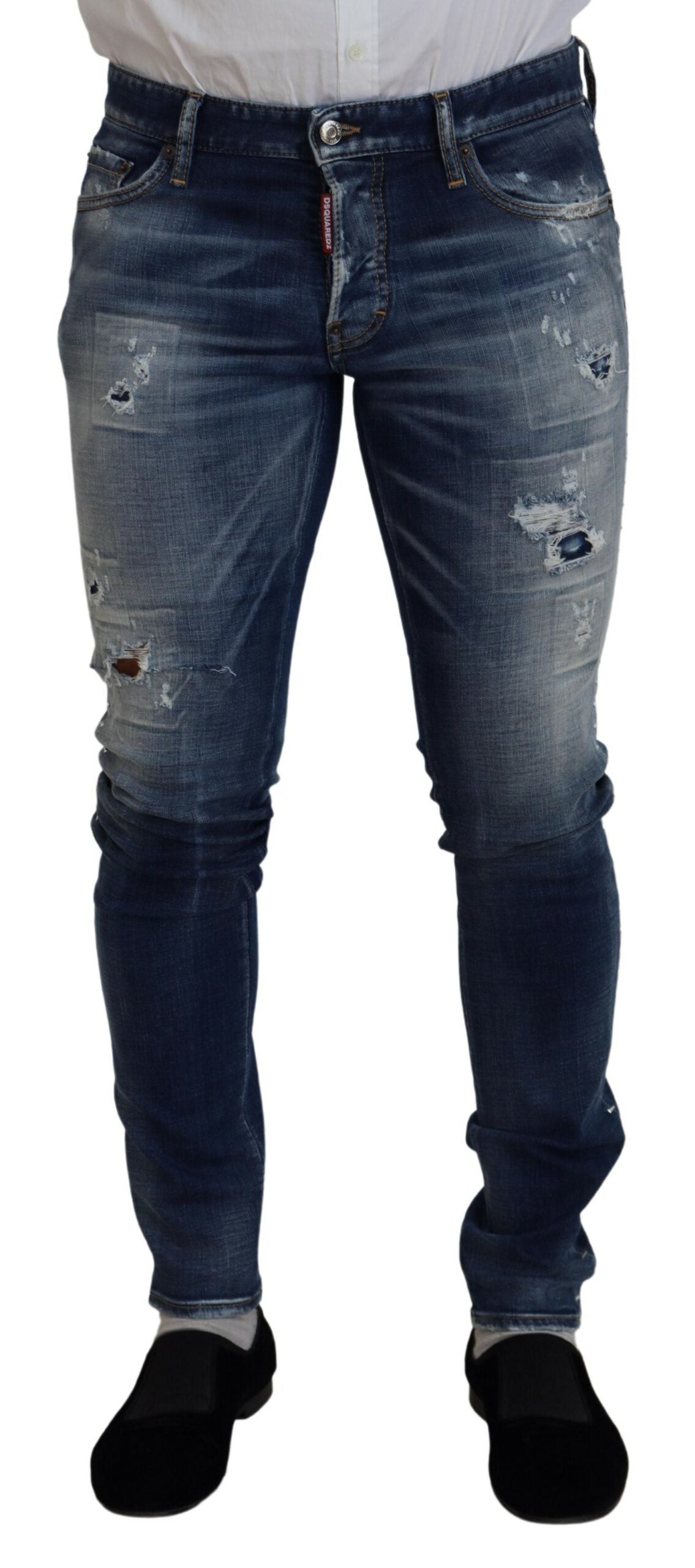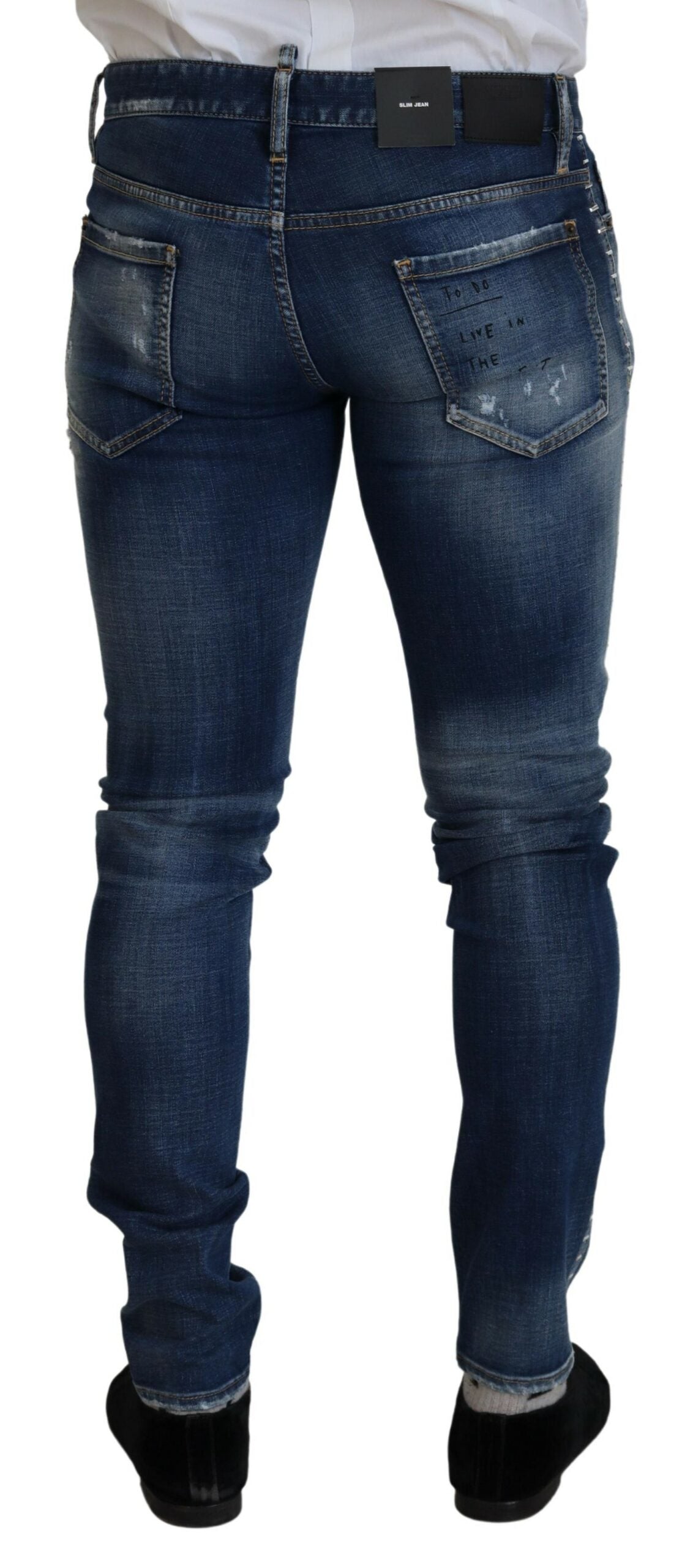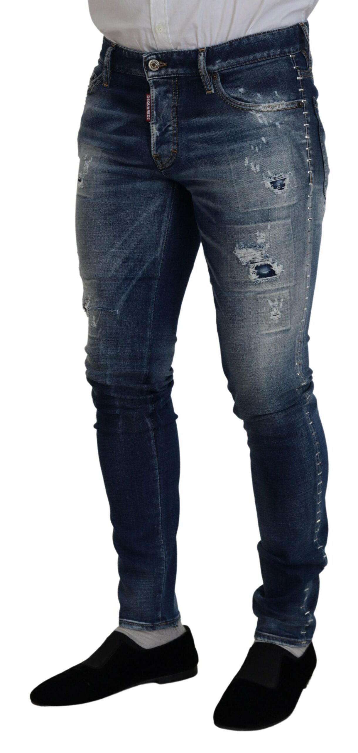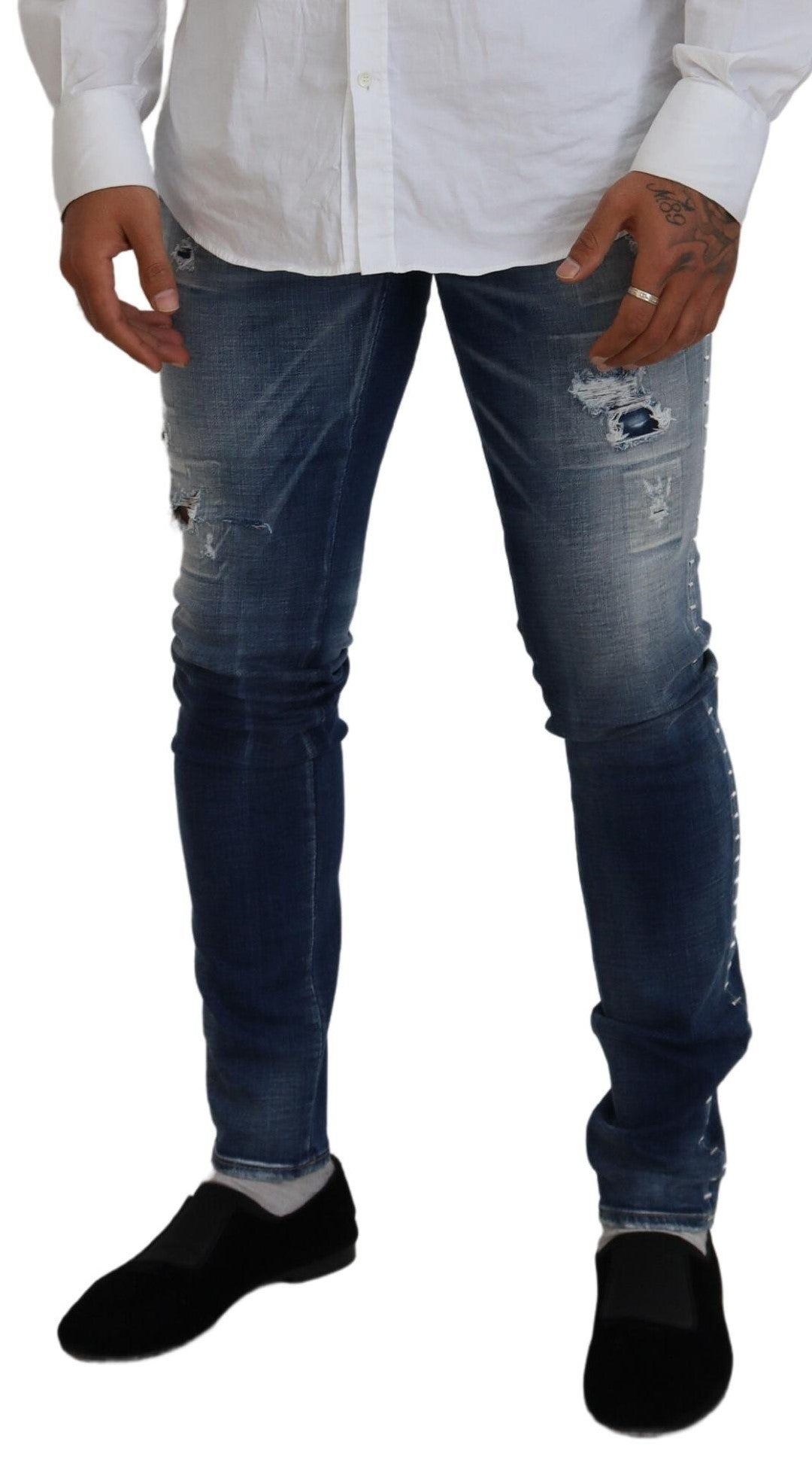 Blue Washed Cotton Tattered Skinny Denim Jeans