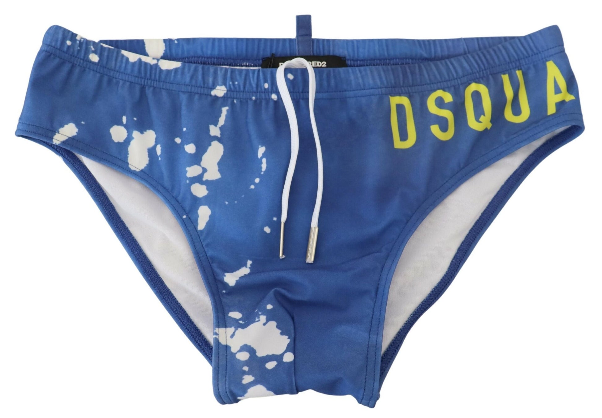 Discover the pinnacle of summer style with our DSQUARED2 swimming trunks. These exclusive brief-style swimwear offer an impeccable blend of fashion and comfort, crafted to elevate your beach or poolside look. Their striking blue and white color palette is accented with a bold logo print, ensuring you stand out with sophistication.