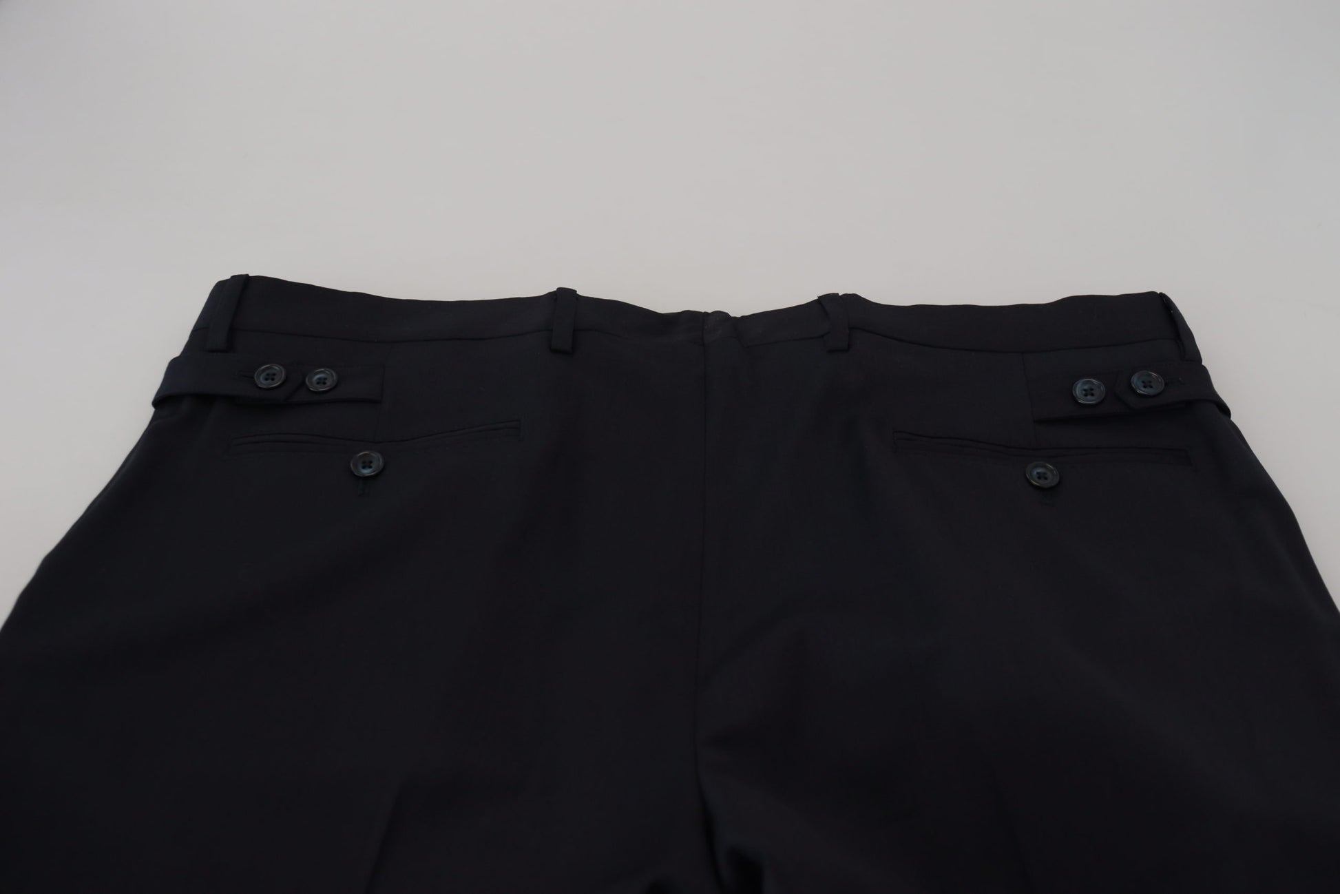 Discover the epitome of Italian craftsmanship with these exquisite trousers by Dolce & Gabbana. Tailored to perfection, these pants are a must-have for any discerning gentleman’s wardrobe. Crafted with a luxurious blend of wool and just enough elastane for a comfortable fit, they are the perfect choice for both formal occasions and stylish everyday wear.