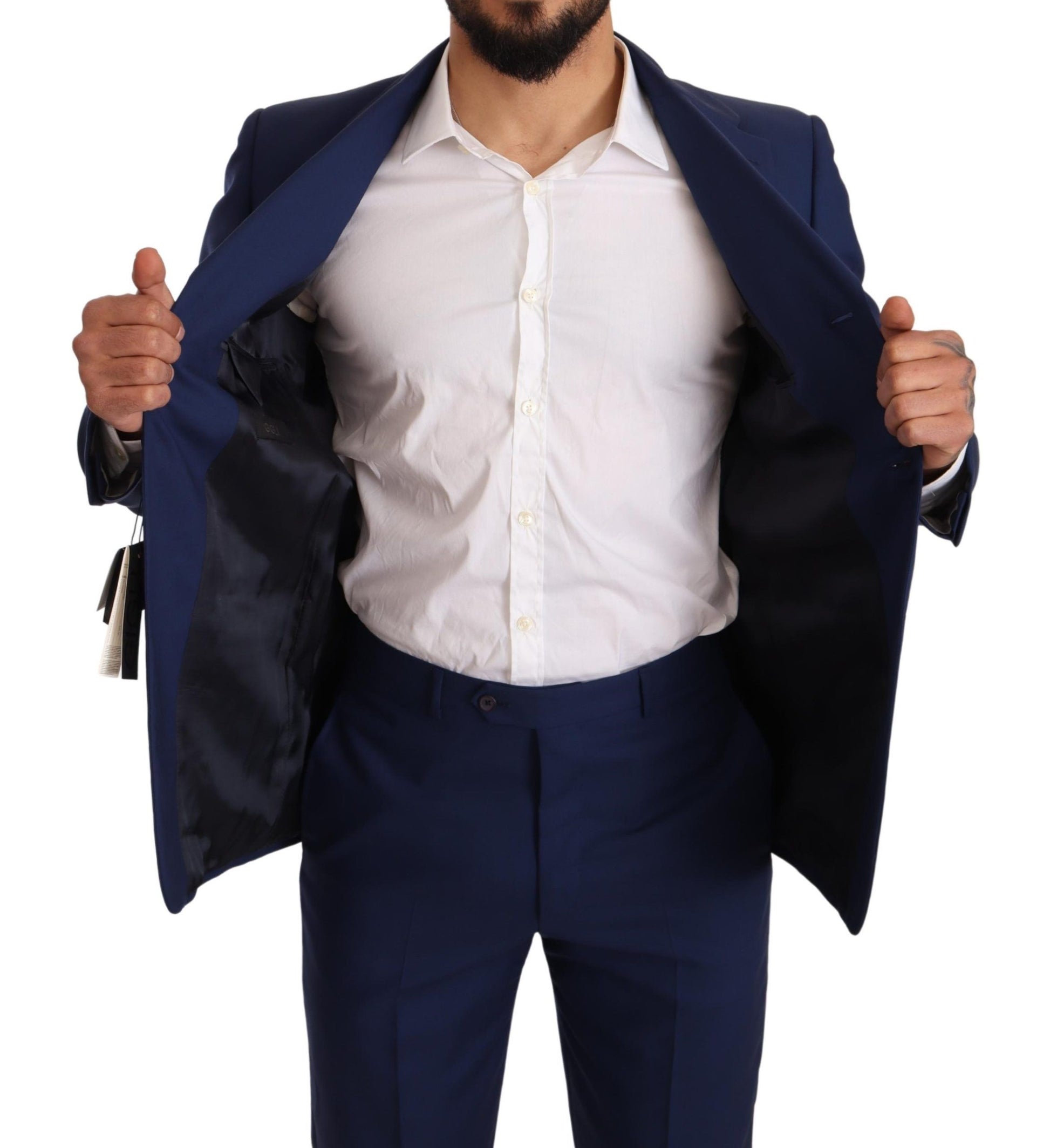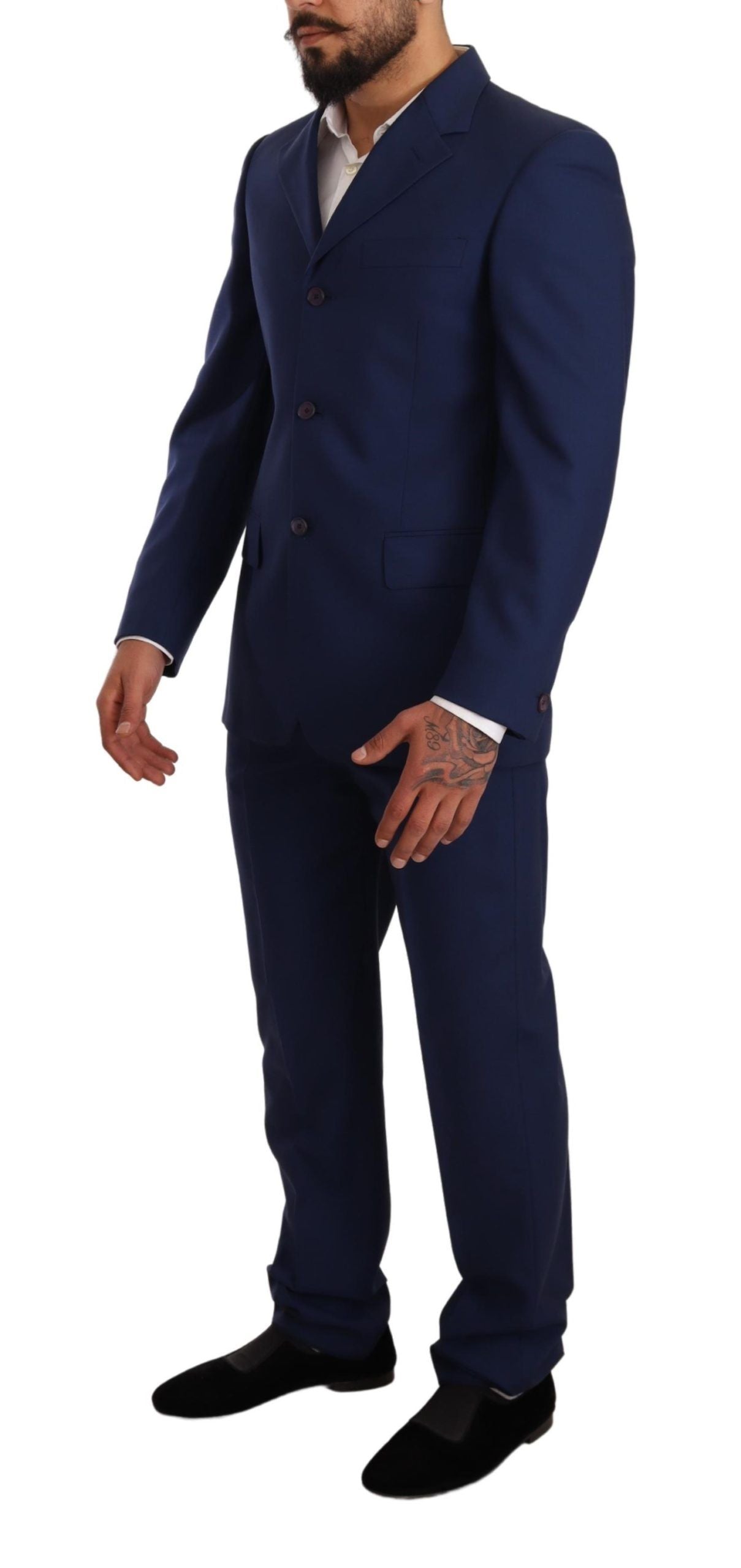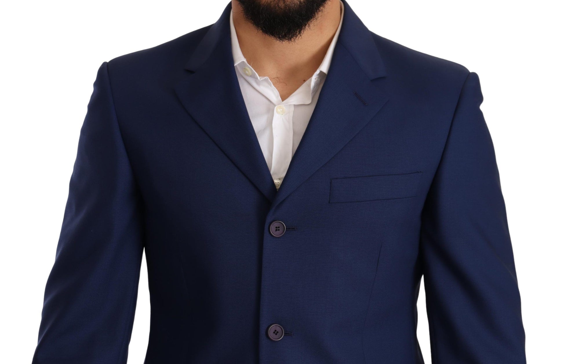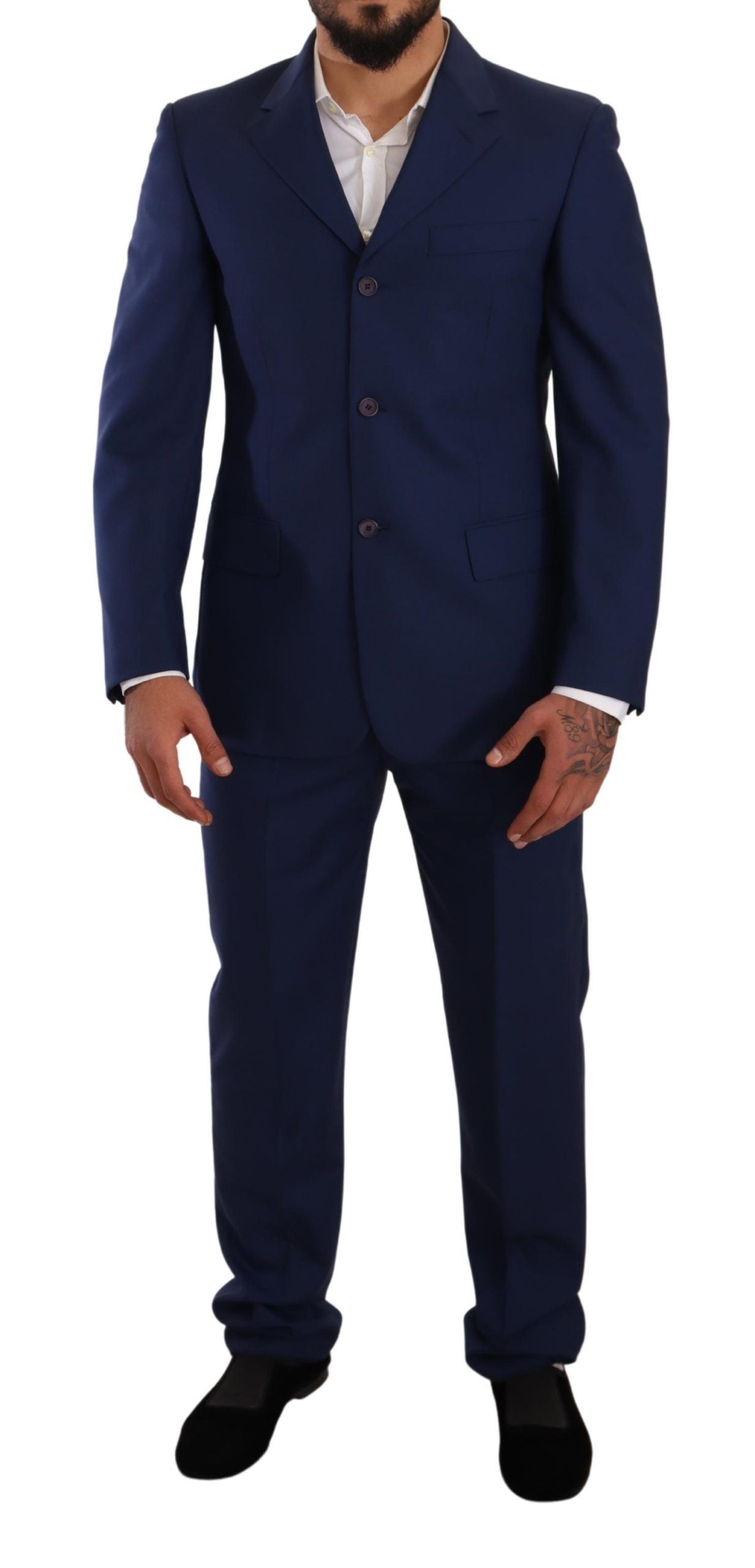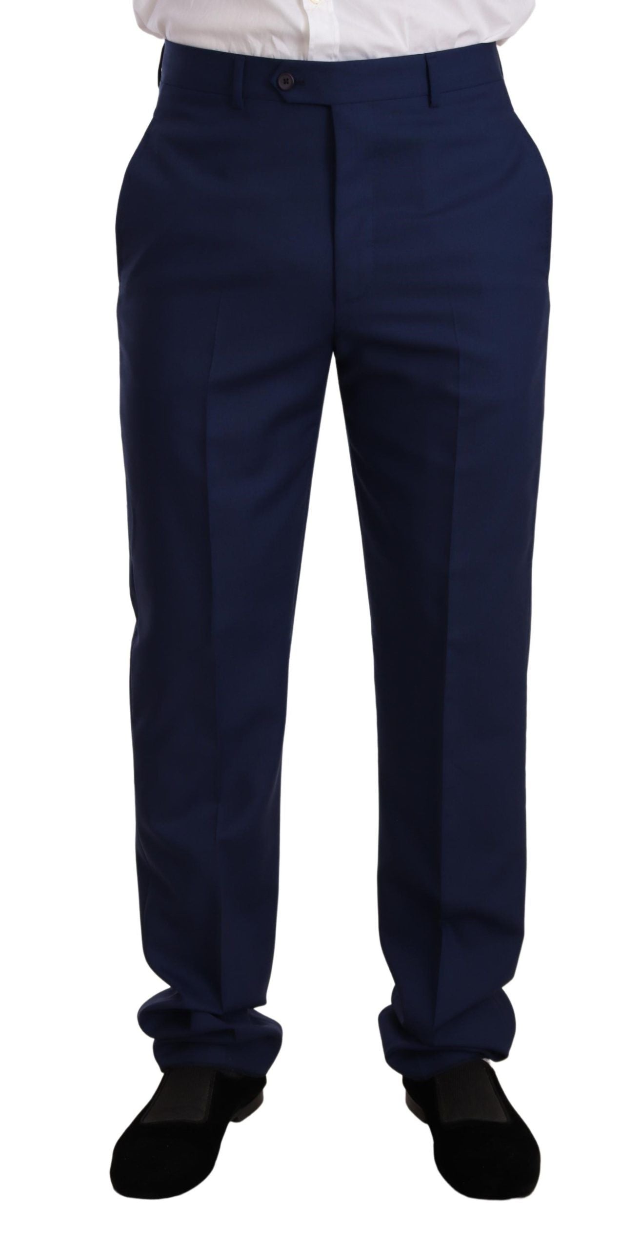 Elegant Blue Virgin Wool Two-Piece Men's Suit