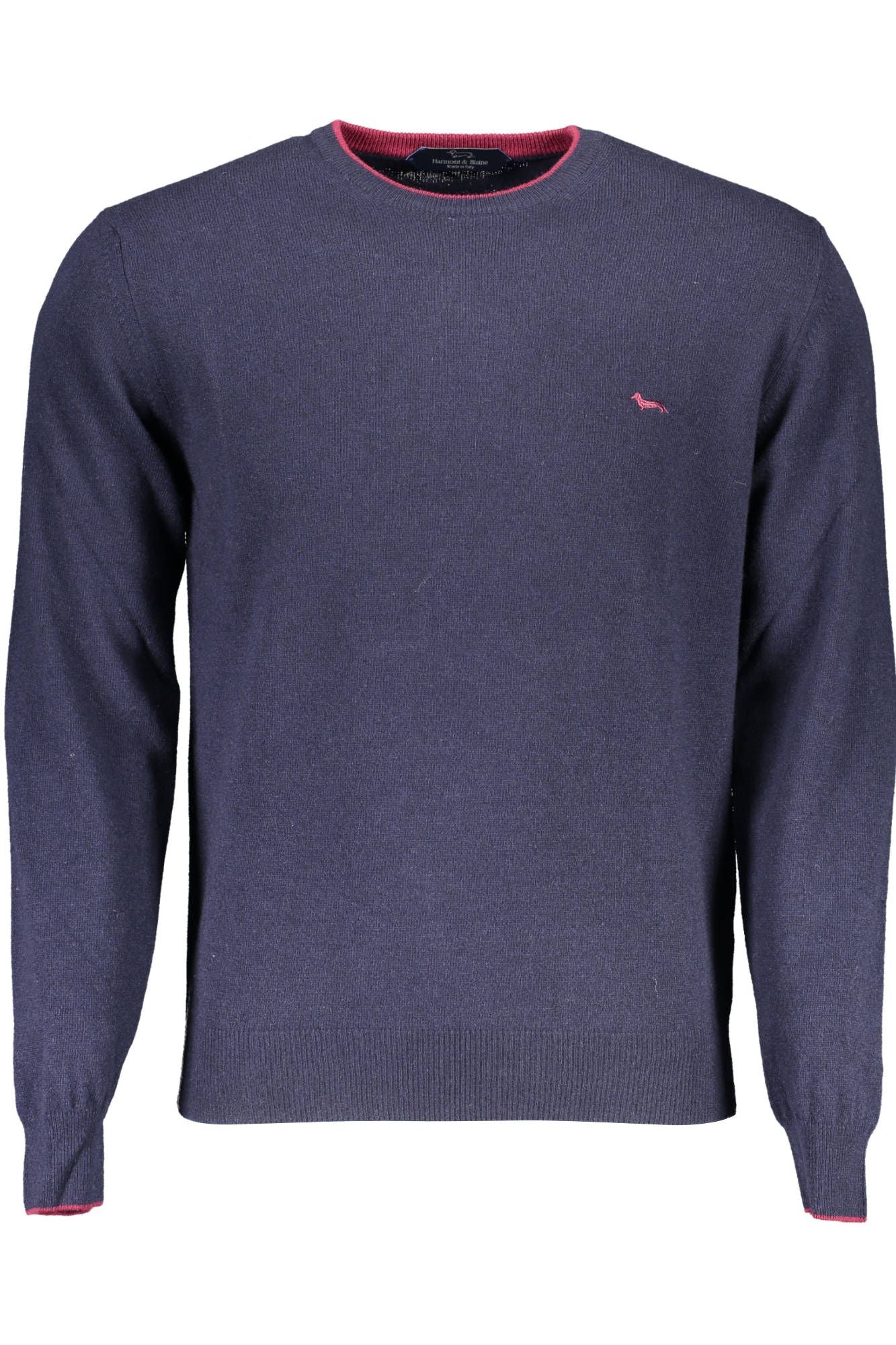 Indulge in the impeccable craftsmanship of Harmont & Blaine with this sophisticated long-sleeved sweater. Designed for the modern man, it features a classic round neck with eye-catching contrasting details that elevate your style quotient. Adorned with the iconic Harmont & Blaine logo, this blue wool sweater is a testament to Italian fashion heritage – a must-have piece to infuse luxury into your everyday wardrobe.