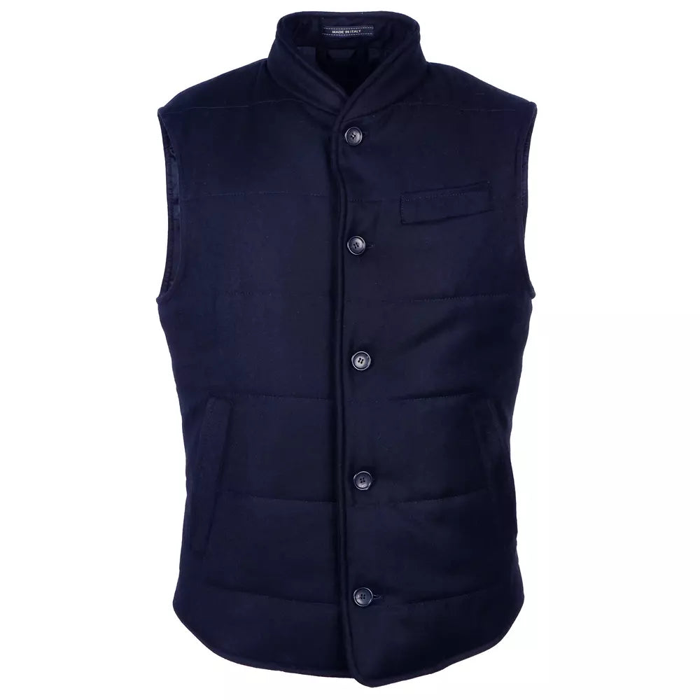 Experience elegance and exquisite craftsmanship with this luxurious wool and cashmere blend vest, designed for those who appreciate the finer things in life. From the esteemed ‘Made in Italy’ collection, this vest features a sophisticated front button closure, functional two-pocket design, and an additional chest pocket for an extra touch of class. Internally, the vest is thoughtfully equipped with pockets and finished with a tone-on-tone lining, ensuring both style and practicality. Indulge in the quality and comfort that only an Italian-made garment can provide.