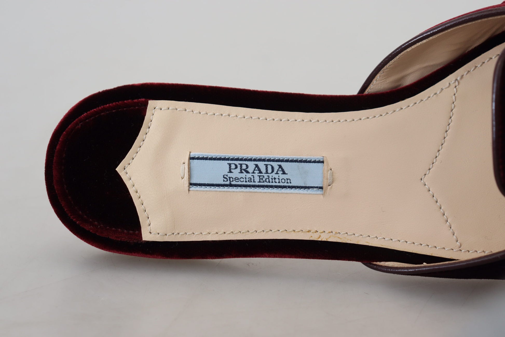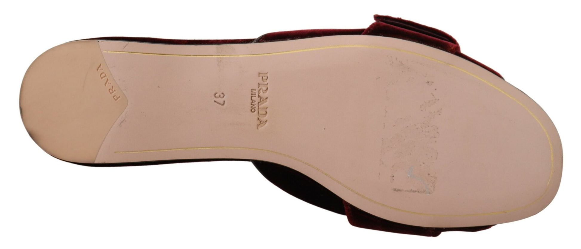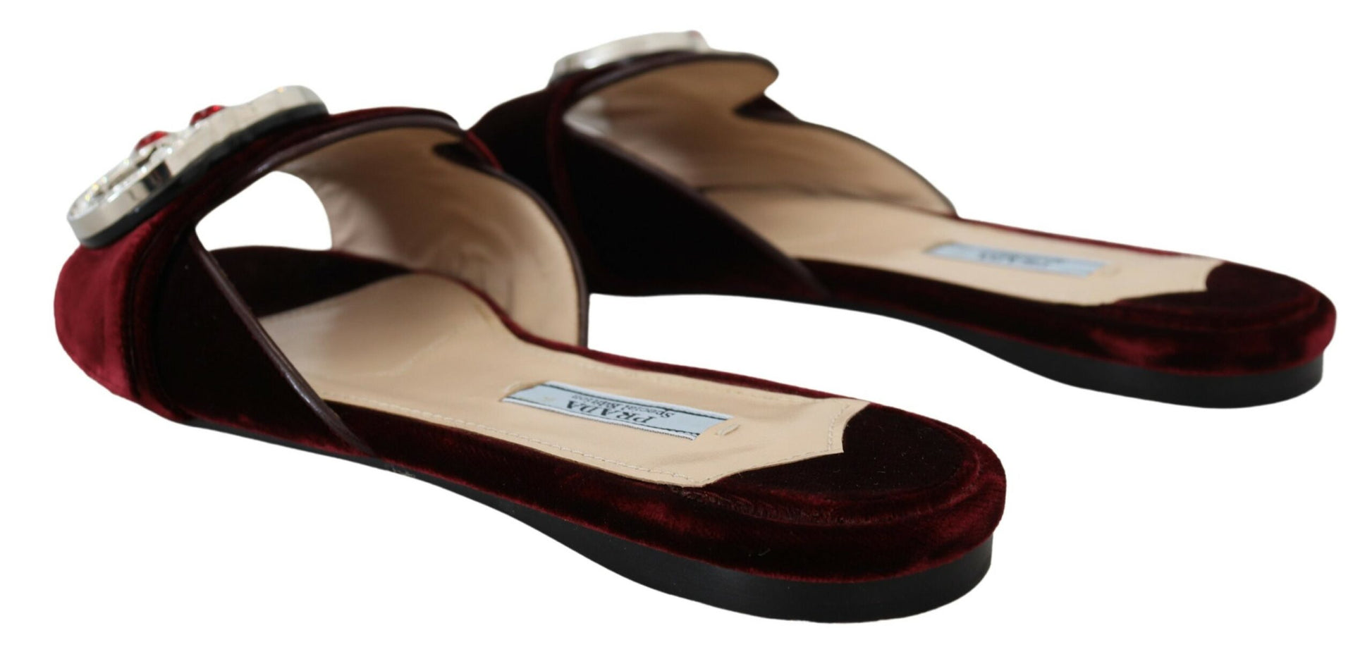 Indulge in the epitome of luxury with these gorgeous, brand new flats by Prada. Crafted with meticulous attention to detail and outstanding craftsmanship, these pumps are not just shoes but a statement of elegance. The lush Bordeaux velvet leather is a testament to Prada’s commitment to quality and high fashion. Adorned with subtle logo details and a classic leather bottom sole, these shoes are the perfect blend of comfort and style, made in the fashion heartland of Italy.