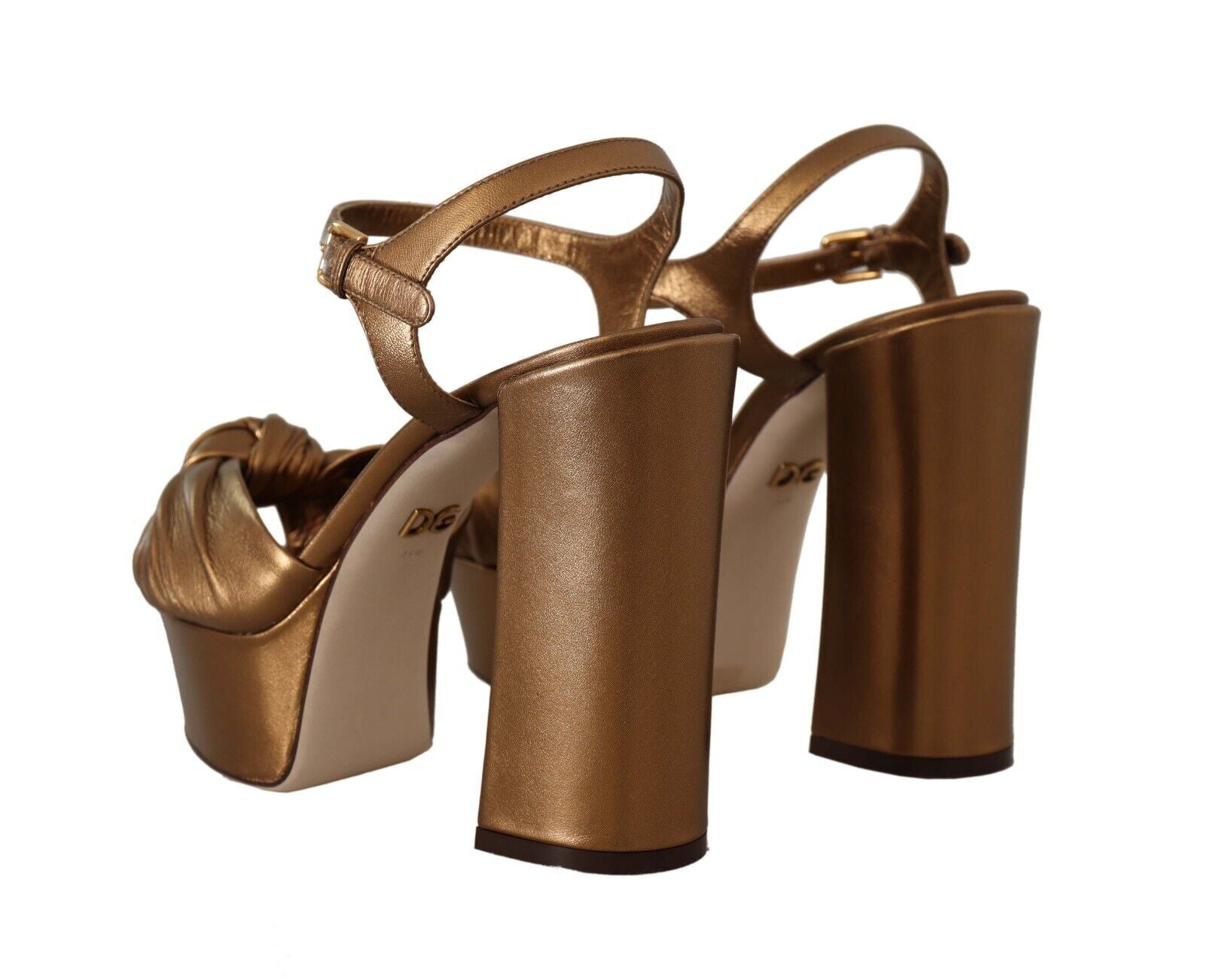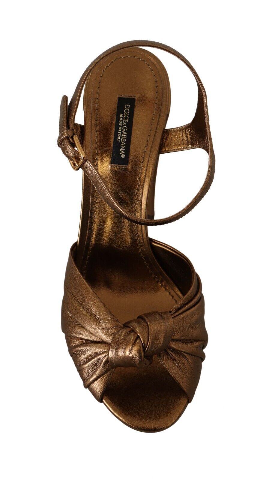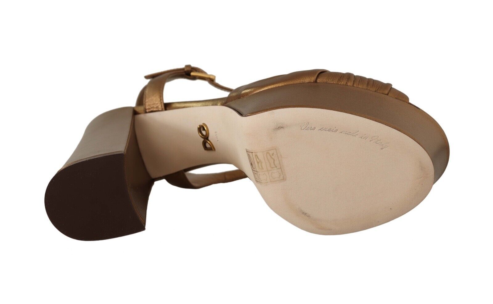 Step into luxury with these stunning, brand new ankle strap heels from the esteemed Dolce & Gabbana collection. Crafted from high-quality 100% leather, these sandals boast a gleaming bronze hue that is sure to turn heads and elevate any ensemble. Their carefully designed structure ensures both comfort and durability, while the intricate logo details add a touch of refined branding. Assembled by skilled artisans in Italy, these heels exemplify the elegance and craftsmanship synonymous with Dolce & Gabbana.