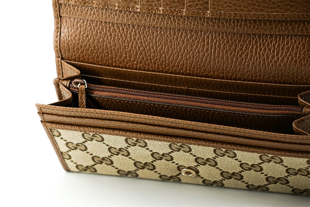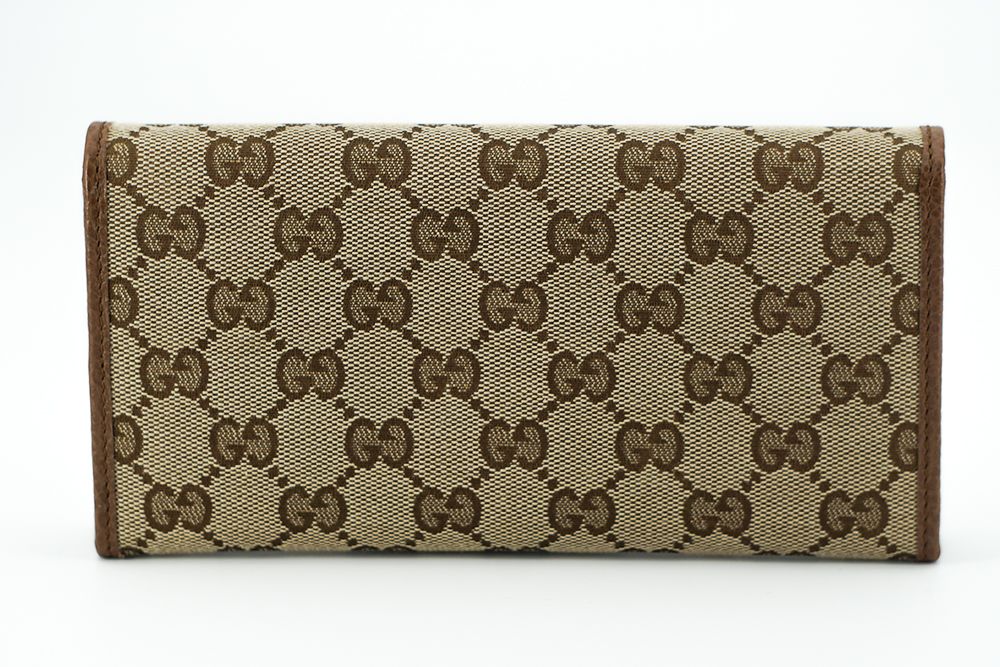 Discover the epitome of luxury and functionality with our exquisite, brand new wallet, complete with original tags, dust bag, and box. This 100% Authentic Gucci Wallet, crafted from premium calf leather and durable canvas, offers flawless style and sophistication. The wallet features a flap top closure accented with leather trim, providing both security and elegance.