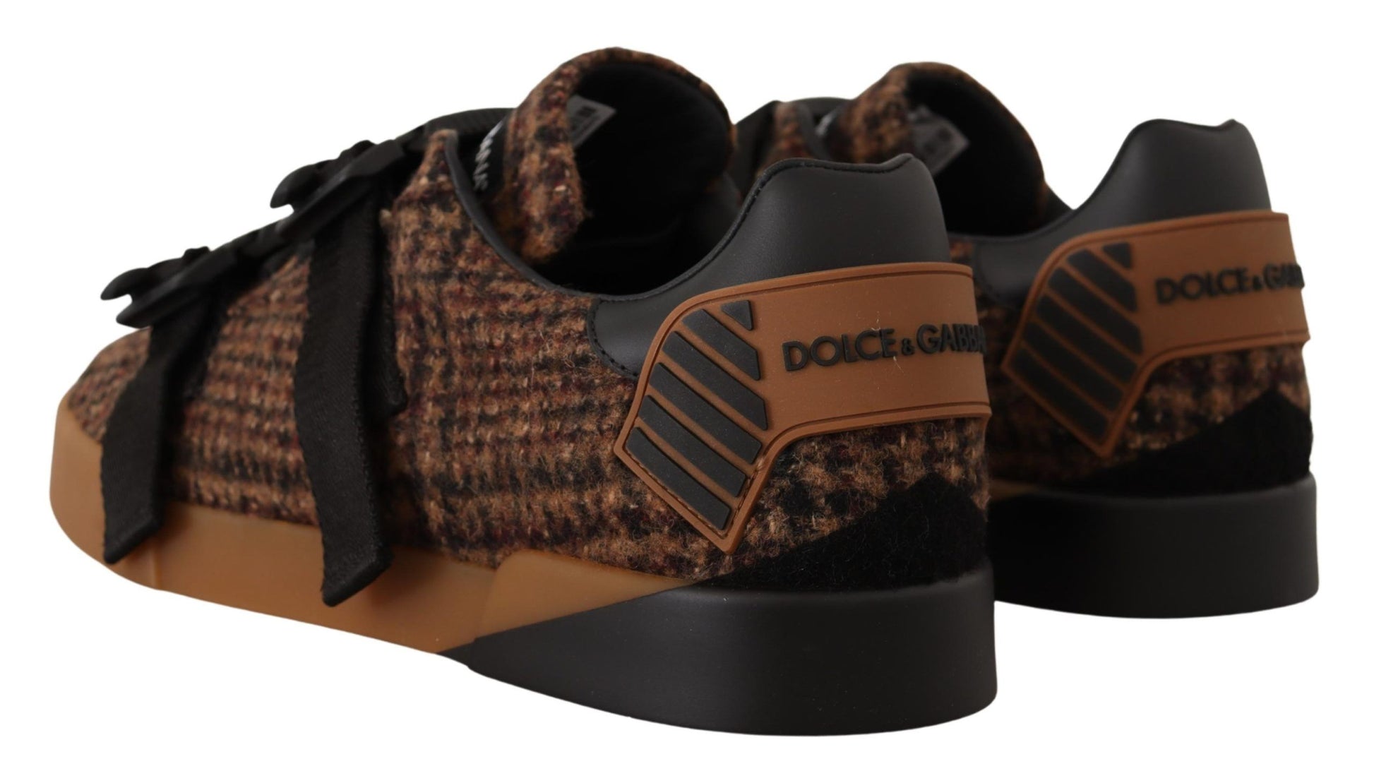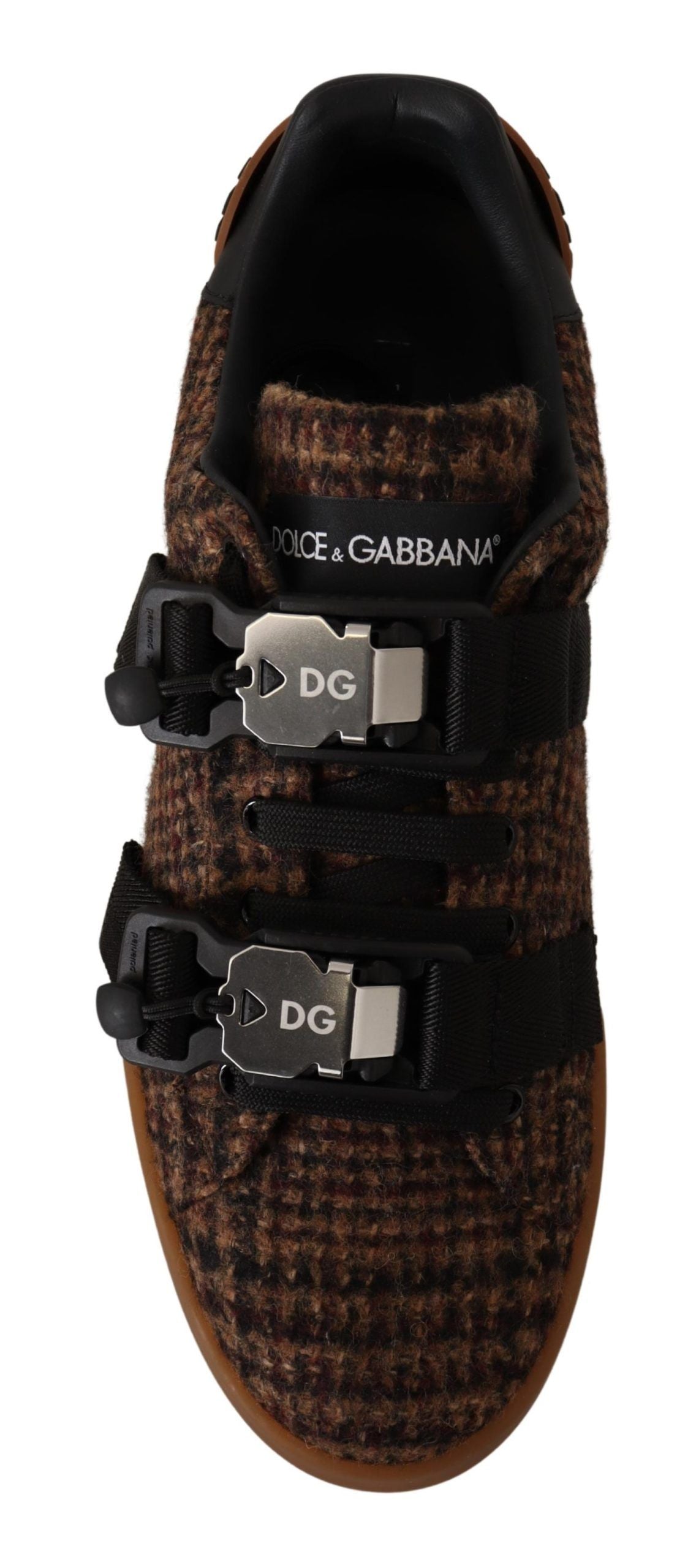 Step into style with these gorgeous, brand new sneakers from Dolce & Gabbana. Crafted from a luxurious blend of wool and cotton, these low top casual sneakers embody both comfort and elegance. The black color provides versatility, while the subtle brown accents add a unique touch to this designer footwear. Complete with a durable rubber sole and iconic logo details, these shoes are sure to make a statement. Each pair is proudly made in Italy, ensuring the utmost quality and craftsmanship.