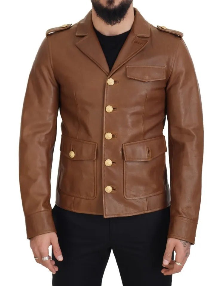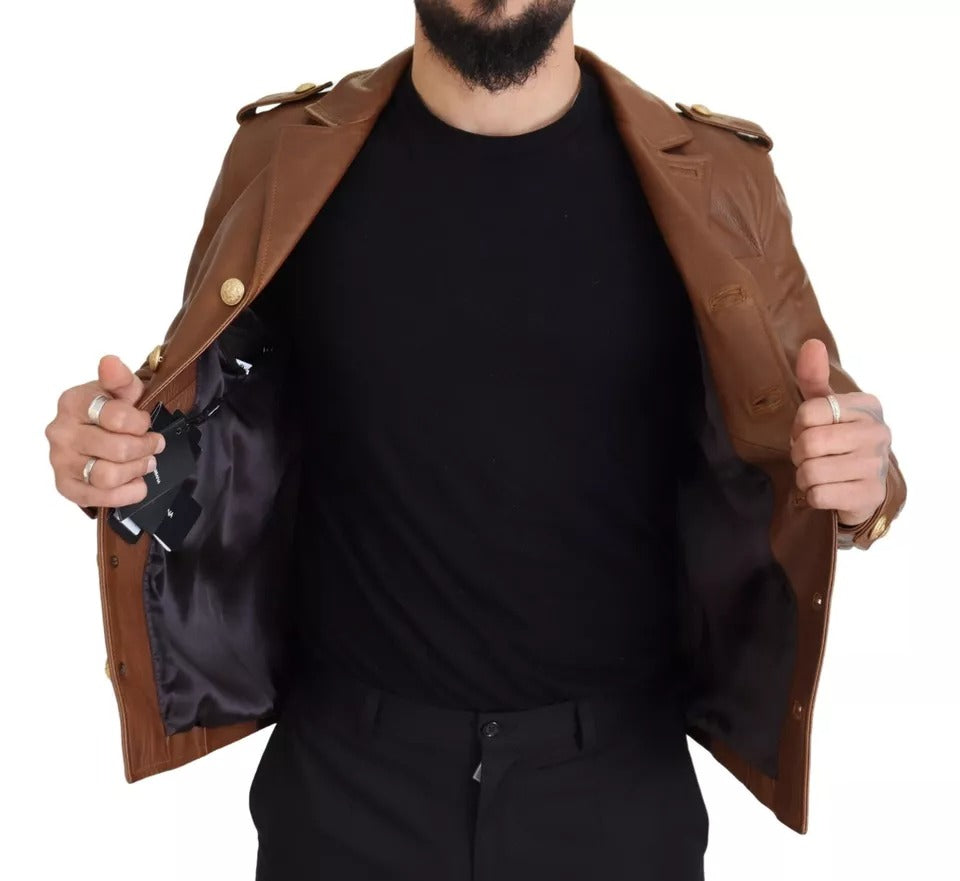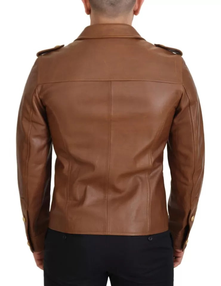 Absolutely stunning, 100% Authentic, brand new with tags Dolce & Gabbana biker leather jacket features a full button front fastening and long sleeves.
