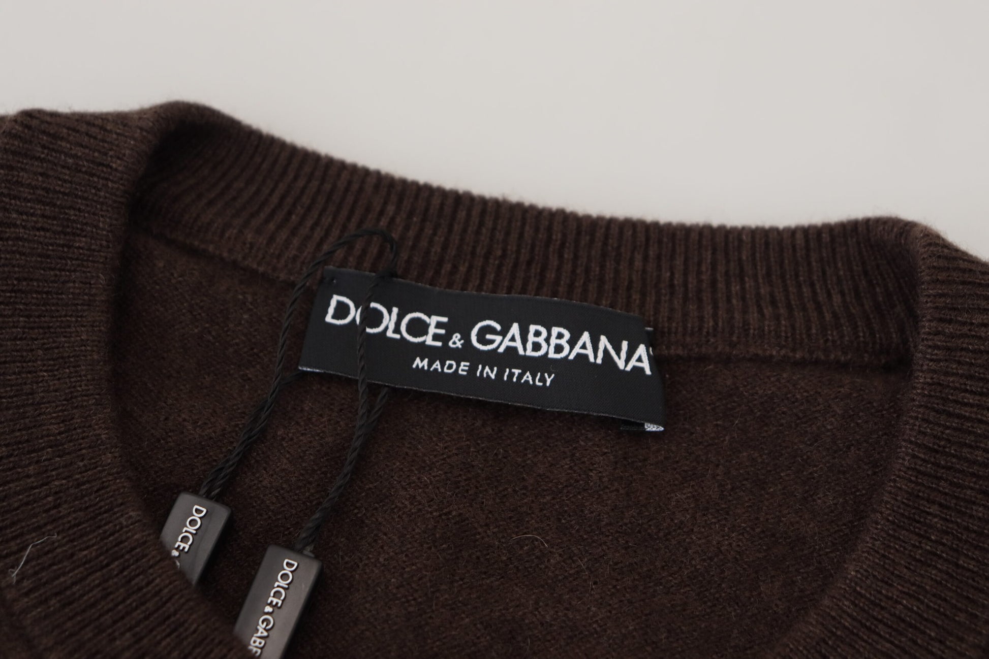 Indulge in the epitome of luxury with this sumptuous 100% cashmere pullover sweater from the prestigious house of Dolce & Gabbana. Meticulously crafted in Italy, this brown sweater exudes sophistication and effortless style. Embellished with subtle branding details, it is the quintessential garment for those who appreciate enduring elegance and comfort.