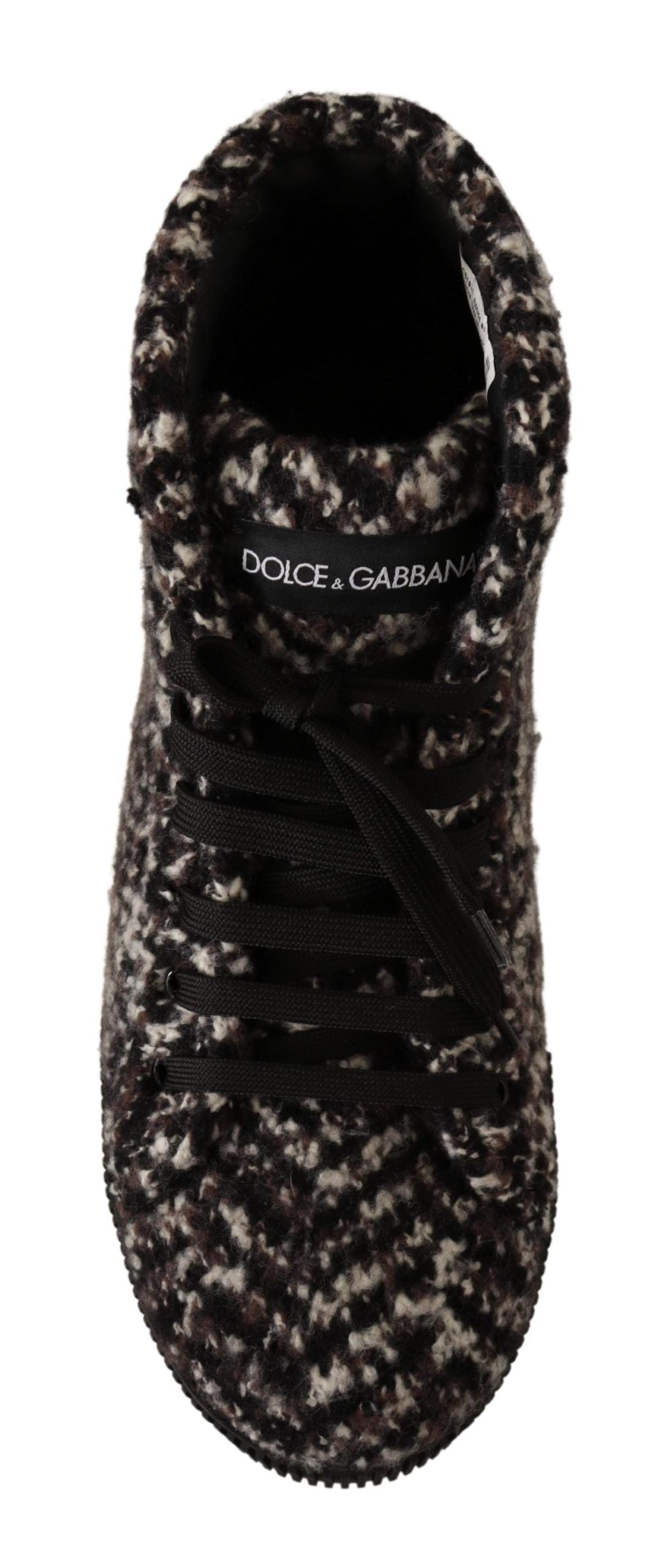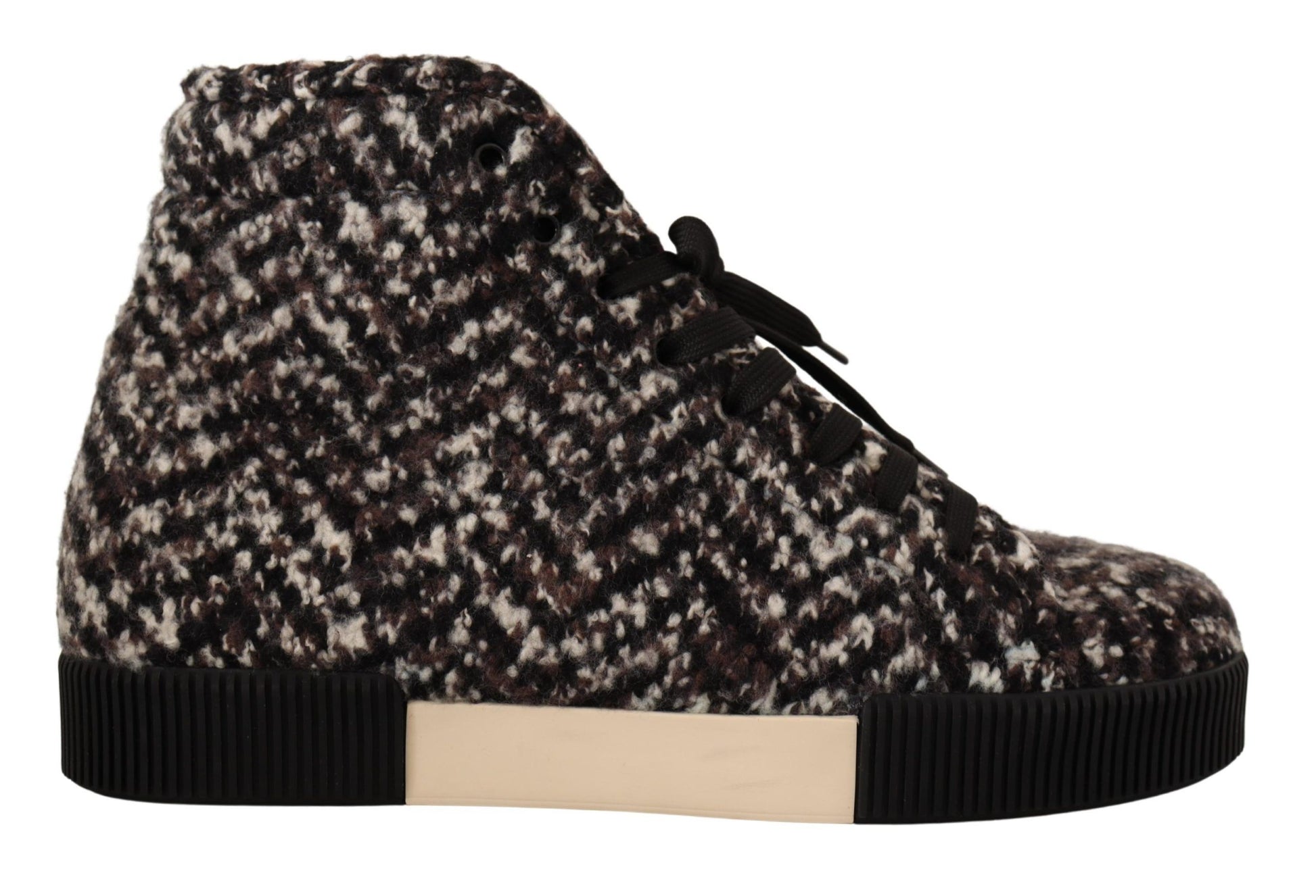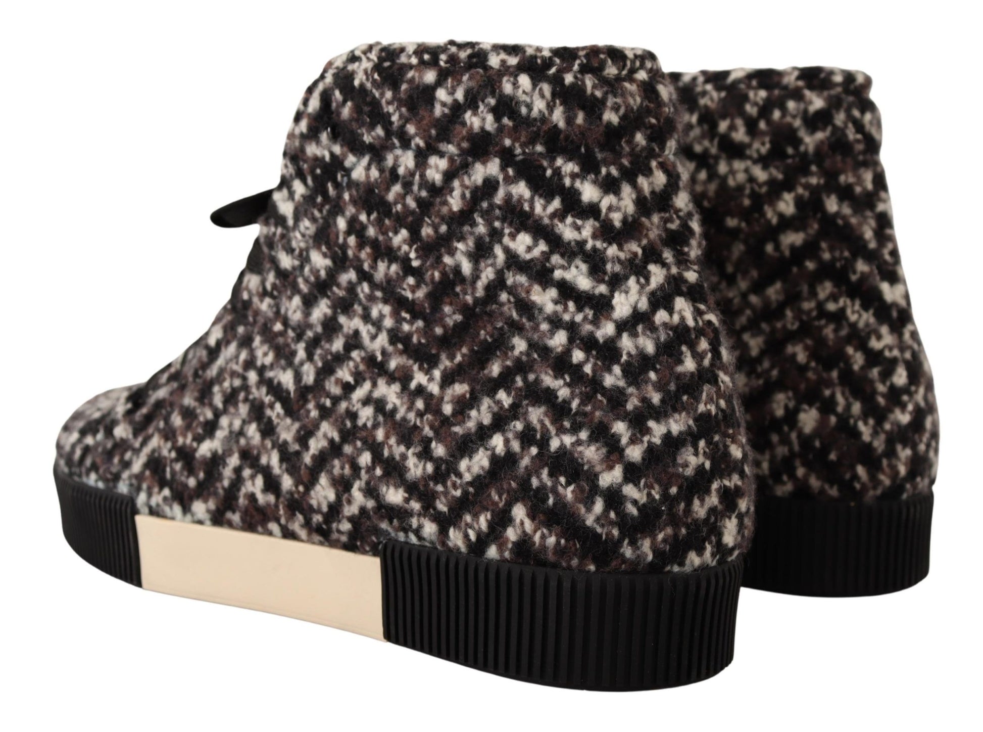 Step into luxury with these exquisite High-End High Top Sneakers. Boasting the unmistakable craftsmanship of Dolce & Gabbana, these shoes are guaranteed to bring a touch of Italian elegance to your wardrobe. The chevron material not only adds a unique texture but also exemplifies the sneaker’s premium quality. Finished in a versatile brown hue and set on a durable rubber sole, these sneakers offer both style and comfort. Accented with logo details, they are a true representation of fashion-forward footwear, made for the discerning gentleman.