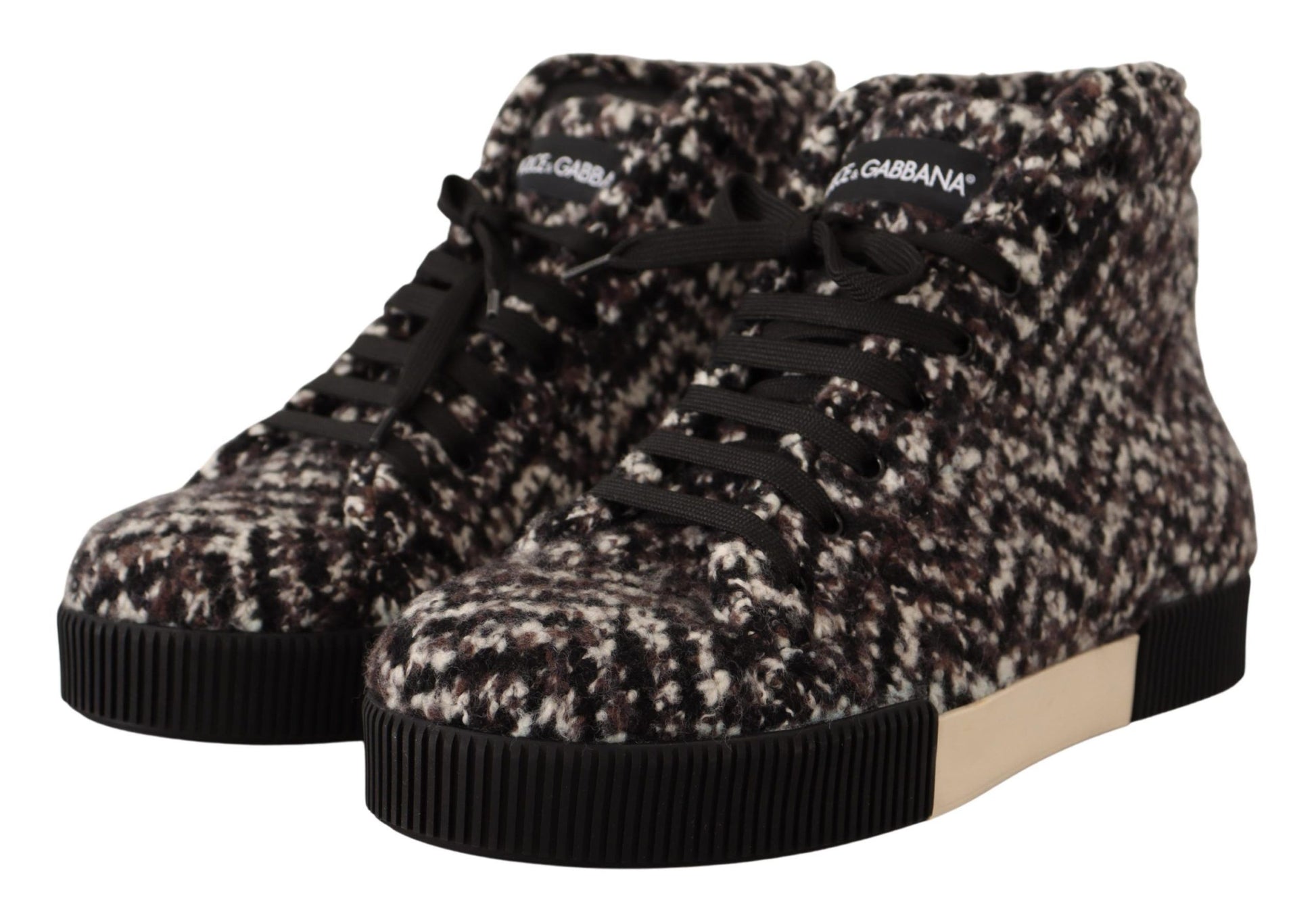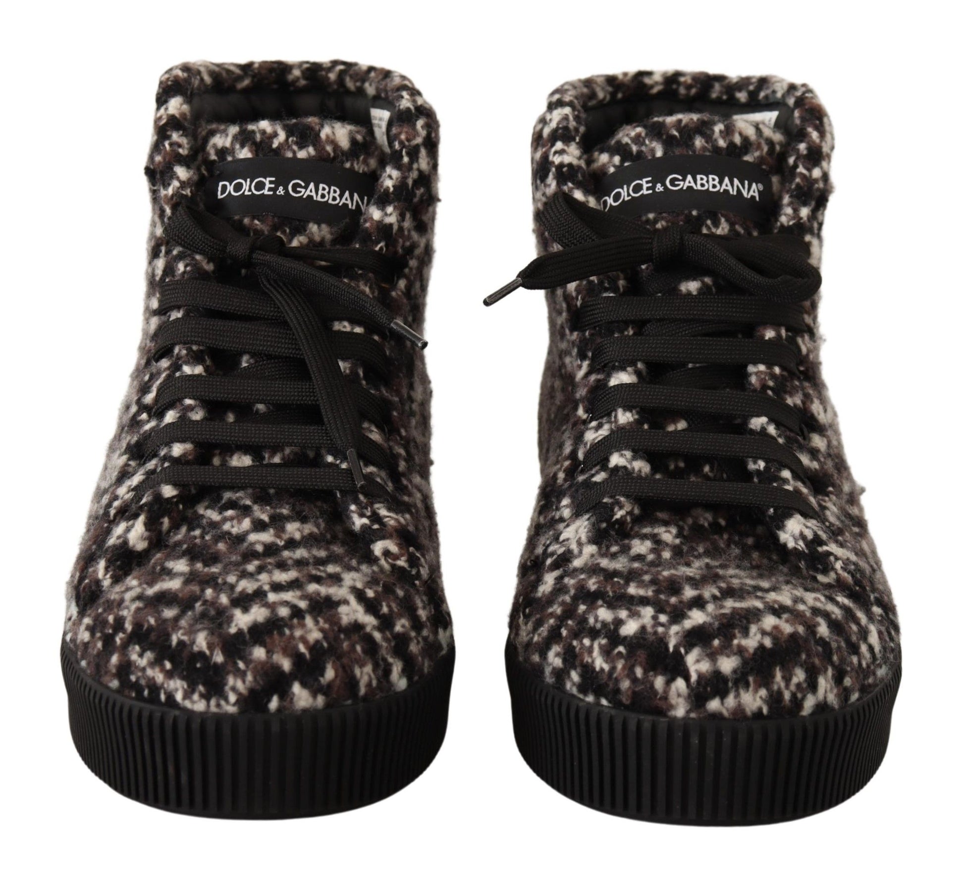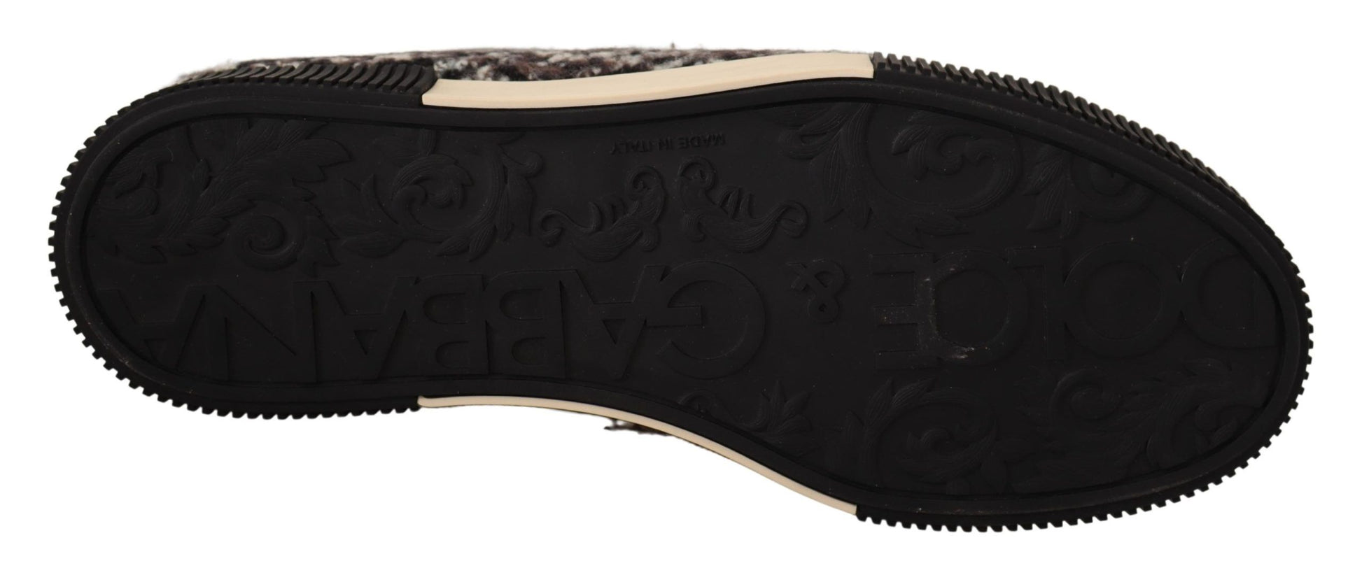 Step into luxury with these exquisite High-End High Top Sneakers. Boasting the unmistakable craftsmanship of Dolce & Gabbana, these shoes are guaranteed to bring a touch of Italian elegance to your wardrobe. The chevron material not only adds a unique texture but also exemplifies the sneaker’s premium quality. Finished in a versatile brown hue and set on a durable rubber sole, these sneakers offer both style and comfort. Accented with logo details, they are a true representation of fashion-forward footwear, made for the discerning gentleman.