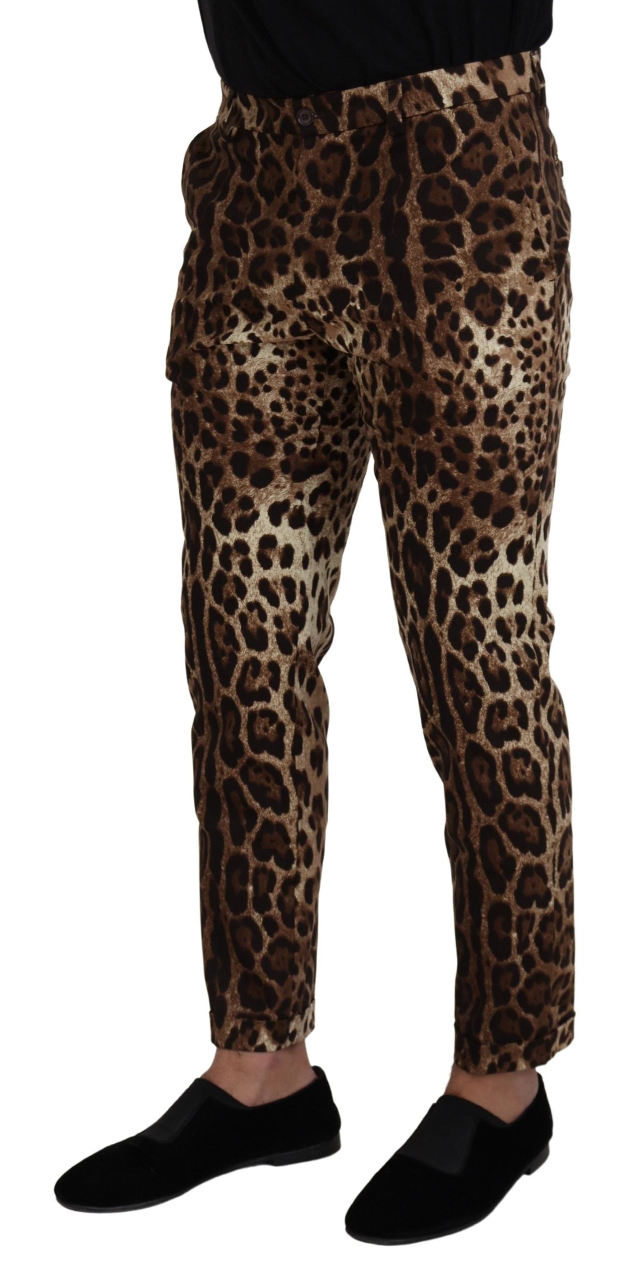 Step into the wild side with these absolutely stunning Pants, featuring a bold leopard print that’s sure to turn heads. Tailored by Dolce & Gabbana, this piece originates from their exclusive MainLine collection, embodying the luxury and craftsmanship the brand is celebrated for. Crafted from a comfortable blend of cotton and elastane, and finished with striking logo details, these pants meld fashion with function for an exquisite Italian-made addition to your wardrobe.