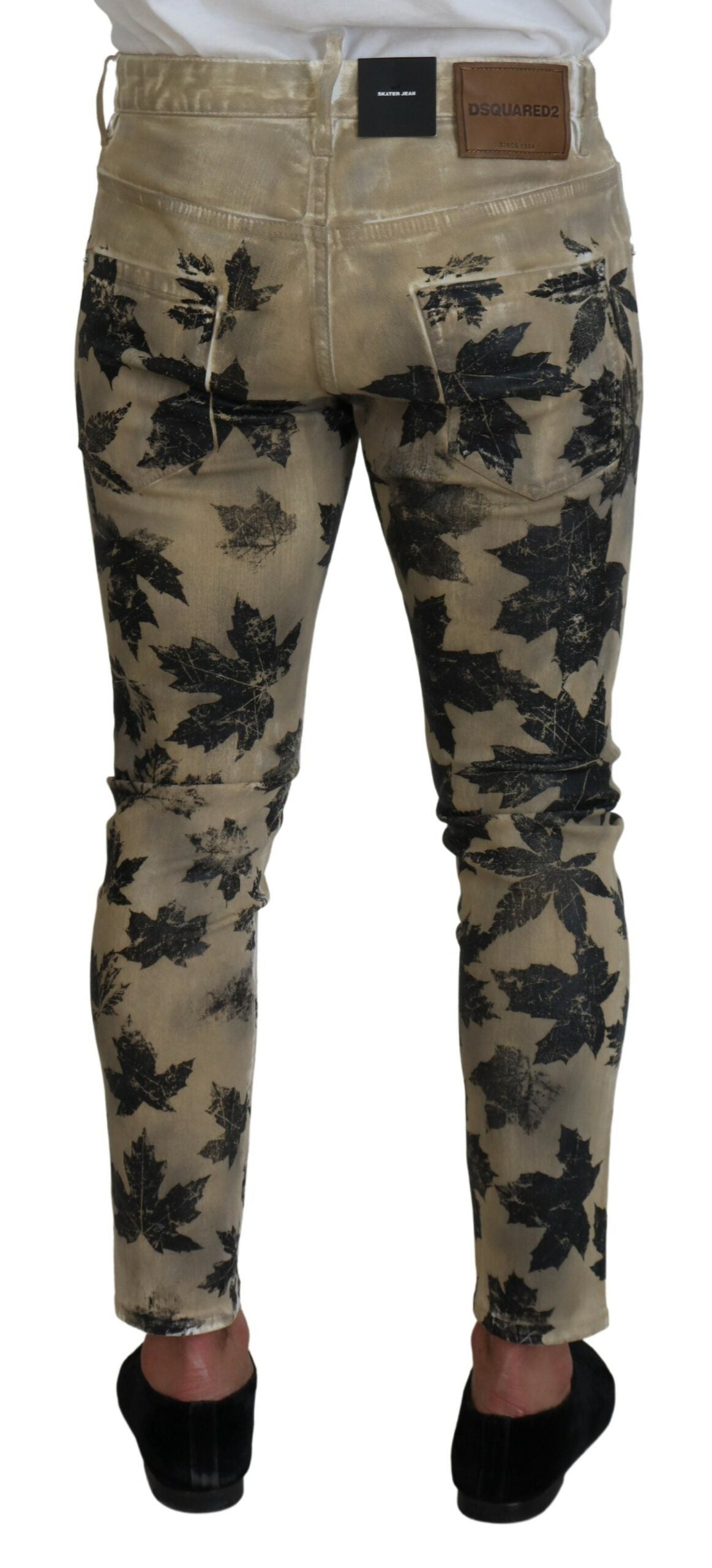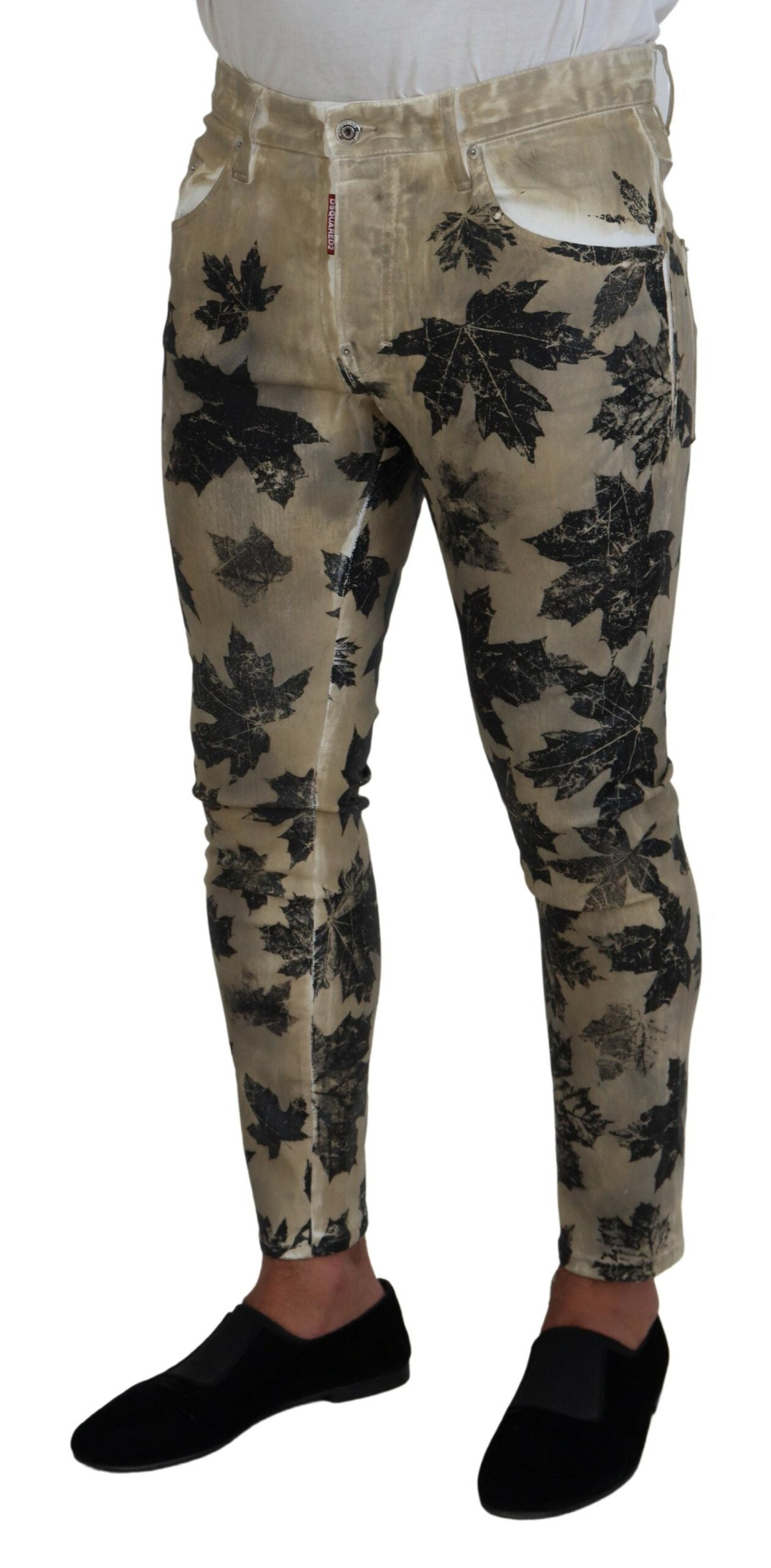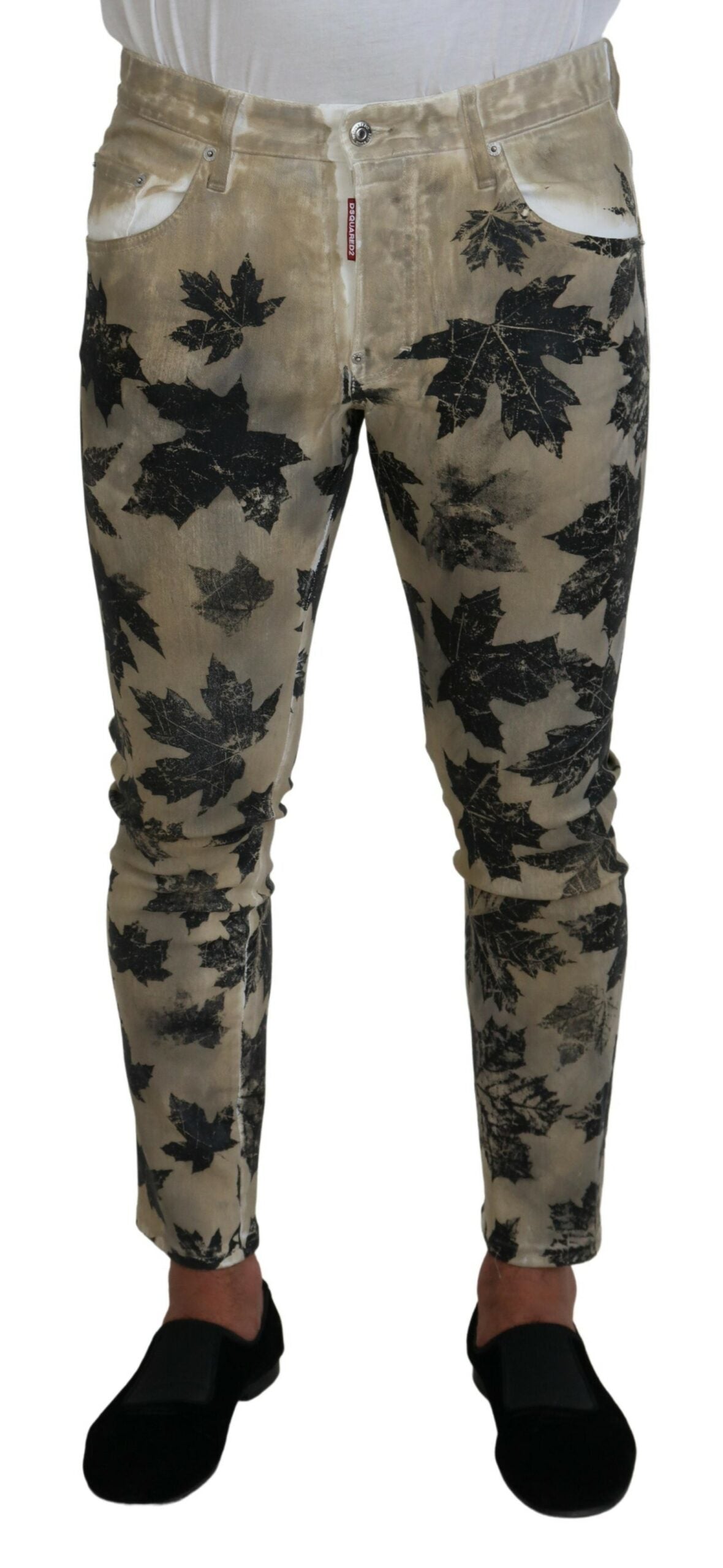 Brown Cotton Printed Skinny Men Casual Denim Jeans