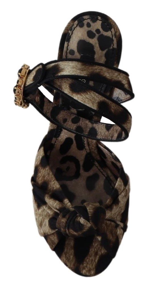Elevate your style quotient with these exquisite Leopard Print Ankle Strap Sandals from Dolce & Gabbana. Ideal for fashion-forward individuals, these sandals are a perfect blend of comfort and luxury, boasting a sensual open-toe design and a glamorous brown leopard print embellished with black crystals for that extra sparkle.