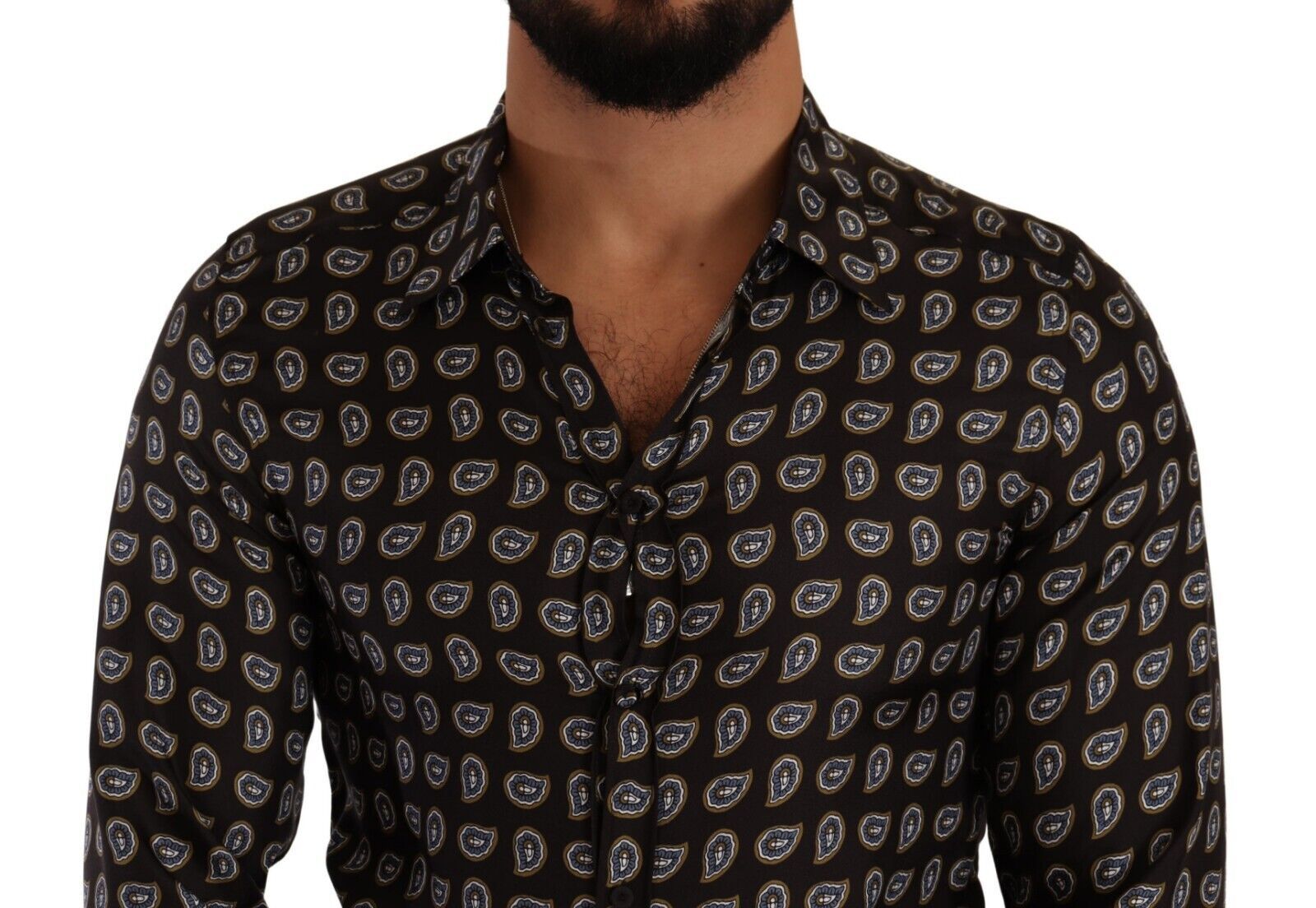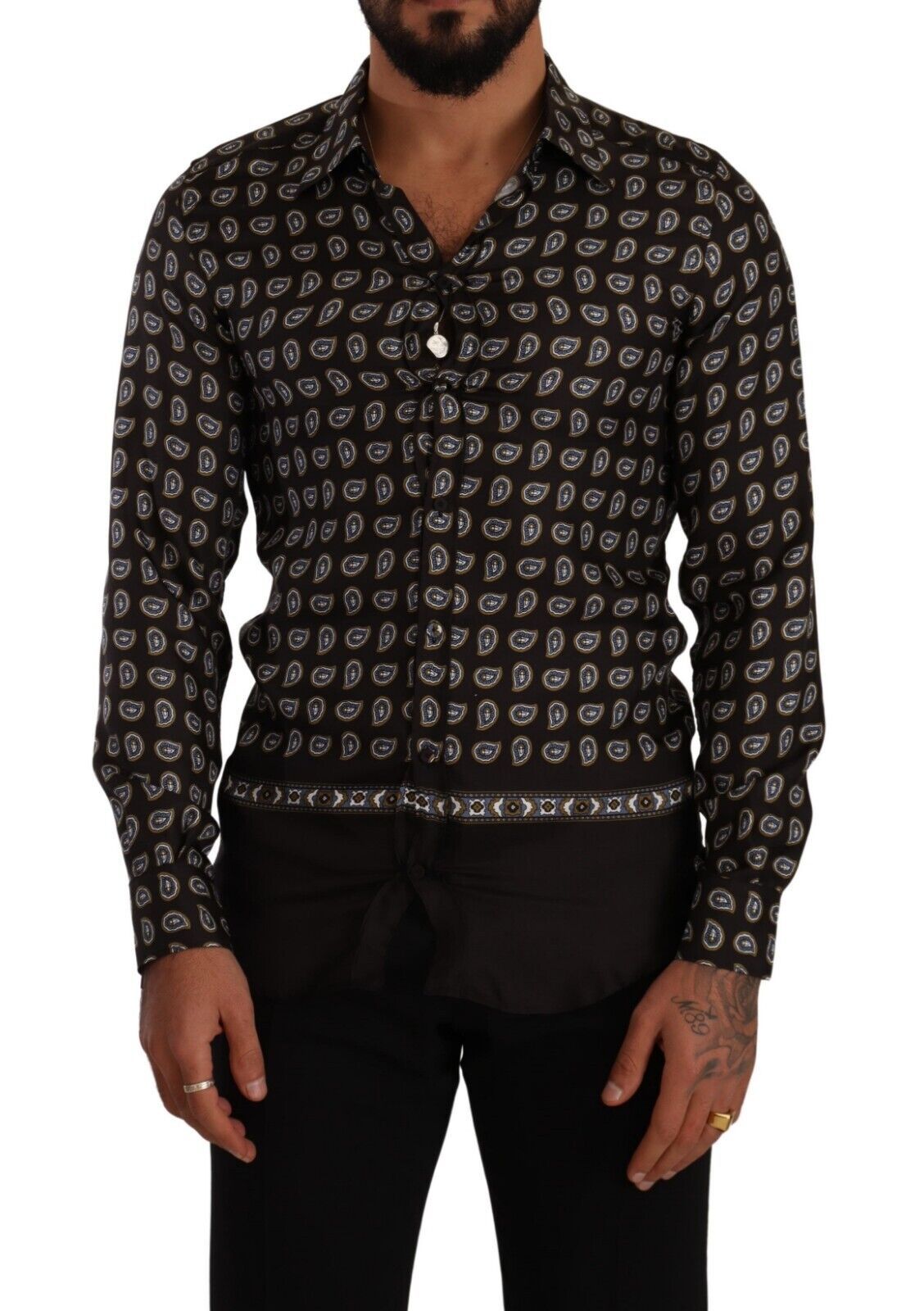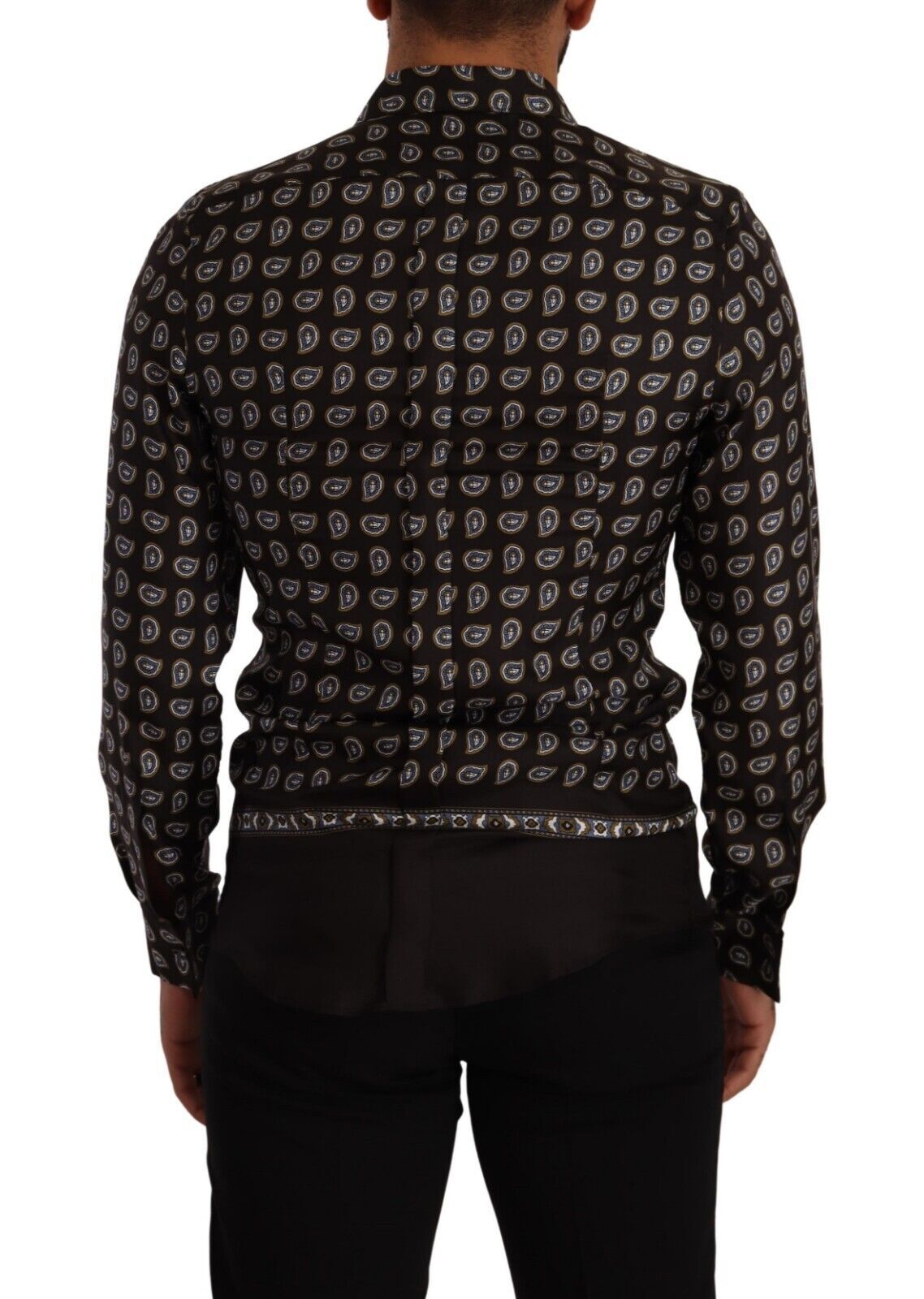 Experience the pinnacle of luxury dressing with the exquisite Dolce & Gabbana silk shirt. This 100% authentic, slim fit GOLD collection shirt is a testament to the brand’s commitment to superior craftsmanship and elegant design. Featuring a classic neck and long sleeves, the shirt’s sophisticated brown pattern is versatile for any high-end occasion. Finely crafted in Italy, this piece bears the iconic logo, ensuring its authenticity and exclusive appeal. Elevate your wardrobe with this quintessential Dolce & Gabbana creation.