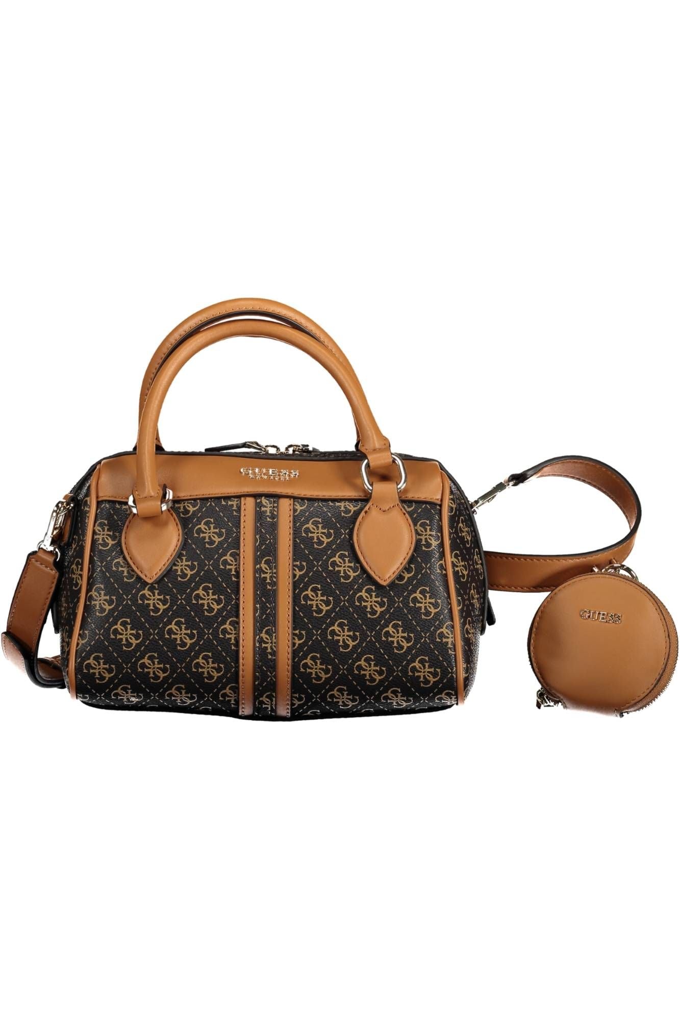 Elevate your accessory game with the Guess Jeans standout handbag, expertly crafted for the modern trendsetter. With its chic brown hue and contrasting details, this bag boasts functionality and style. A removable coin purse adds a touch of versatility, while the spacious interior with a dedicated phone holder keeps you organized on the go. Carry effortlessly with the dual handles or go hands-free with the adjustable, detachable shoulder strap. The gleaming logo is the finishing touch on this fashionable statement piece.