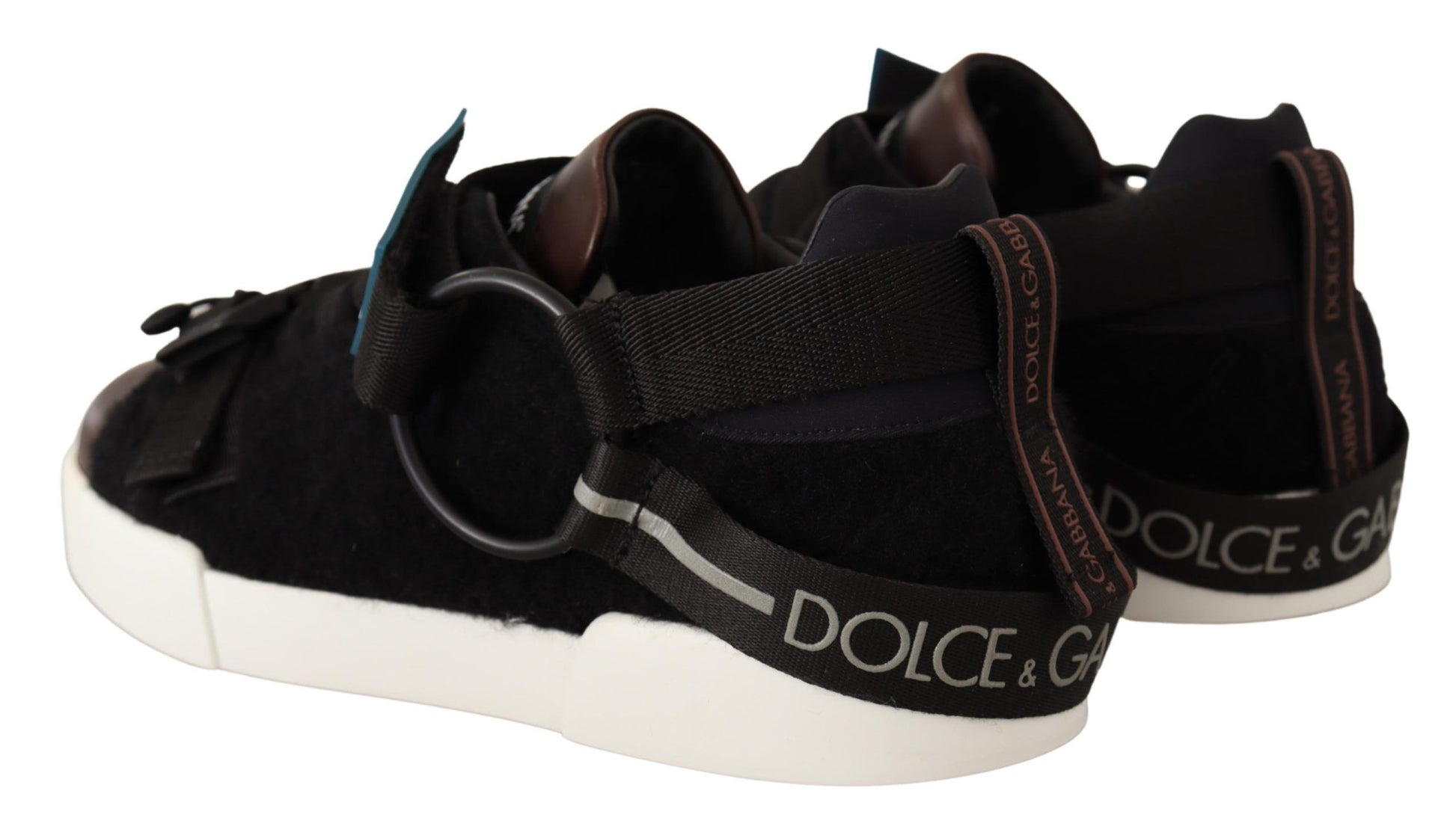 Indulge in the blend of luxury and comfort with these Dolce & Gabbana low top casual sneakers. Designed for the fashion-forward individual, these sneakers feature a lavish leather and shearling construction, offering both style and warmth. The classic brown hue is complemented by striking black accents, creating a versatile pair of shoes that will elevate any ensemble. Secure your stride with the robust lace and buckle strap closure, and enjoy the durability of the expertly crafted rubber sole. These sneakers are a true testament to Italian craftsmanship, ensuring you step out in elegance and sophistication.