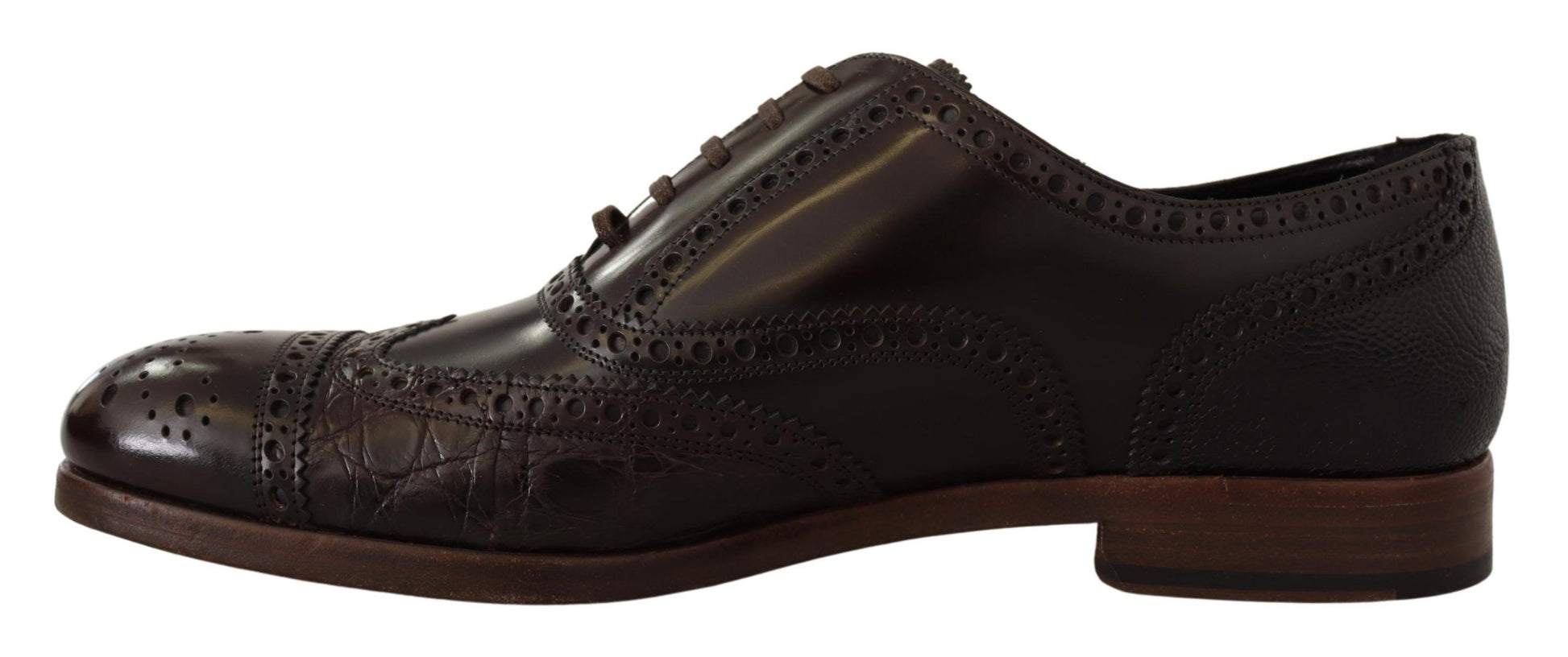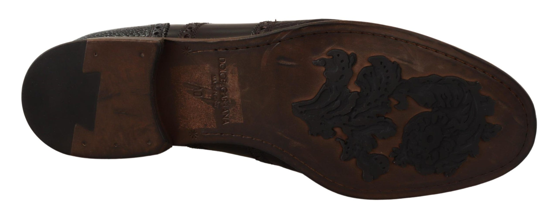 Discover the epitome of craftsmanship with Dolce & Gabbana’s latest sartorial masterpiece. These formal Derby brogue shoes are a testament to timeless style and luxury. Crafted from a rich blend of materials, they feature a brown color palette that radiates sophistication. The blend of leather, caiman, and ostrich textures creates a distinctive look that’s both opulent and dignified. Perfect for the discerning gentleman, these shoes boast a leather and rubber sole and are adorned with the subtle yet iconic logo details. Made with pride in Italy, they promise to be a very exclusive addition to your wardrobe.