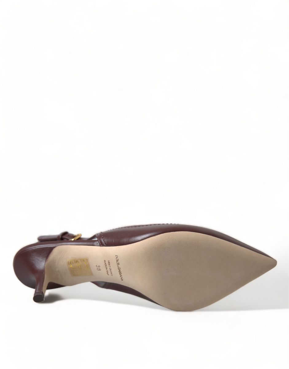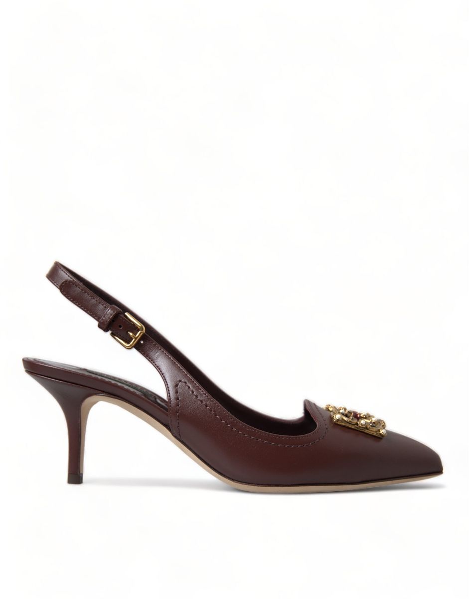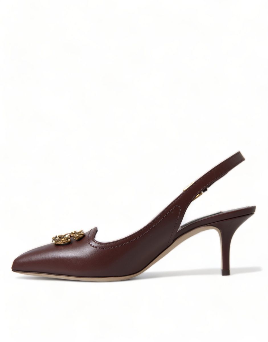 Step out in style with these stunning new slingback pumps from the legendary house of Dolce & Gabbana. Boasting the brand’s synonymous craftsmanship, these 100% authentic heels embody sophistication with their elegant brown leather exterior and immaculately crafted leather soles for unmatched quality and comfort. These made-in-Italy luxuries feature exquisite logo details that add a signature touch to your ensemble, ensuring you make an impression wherever you go.