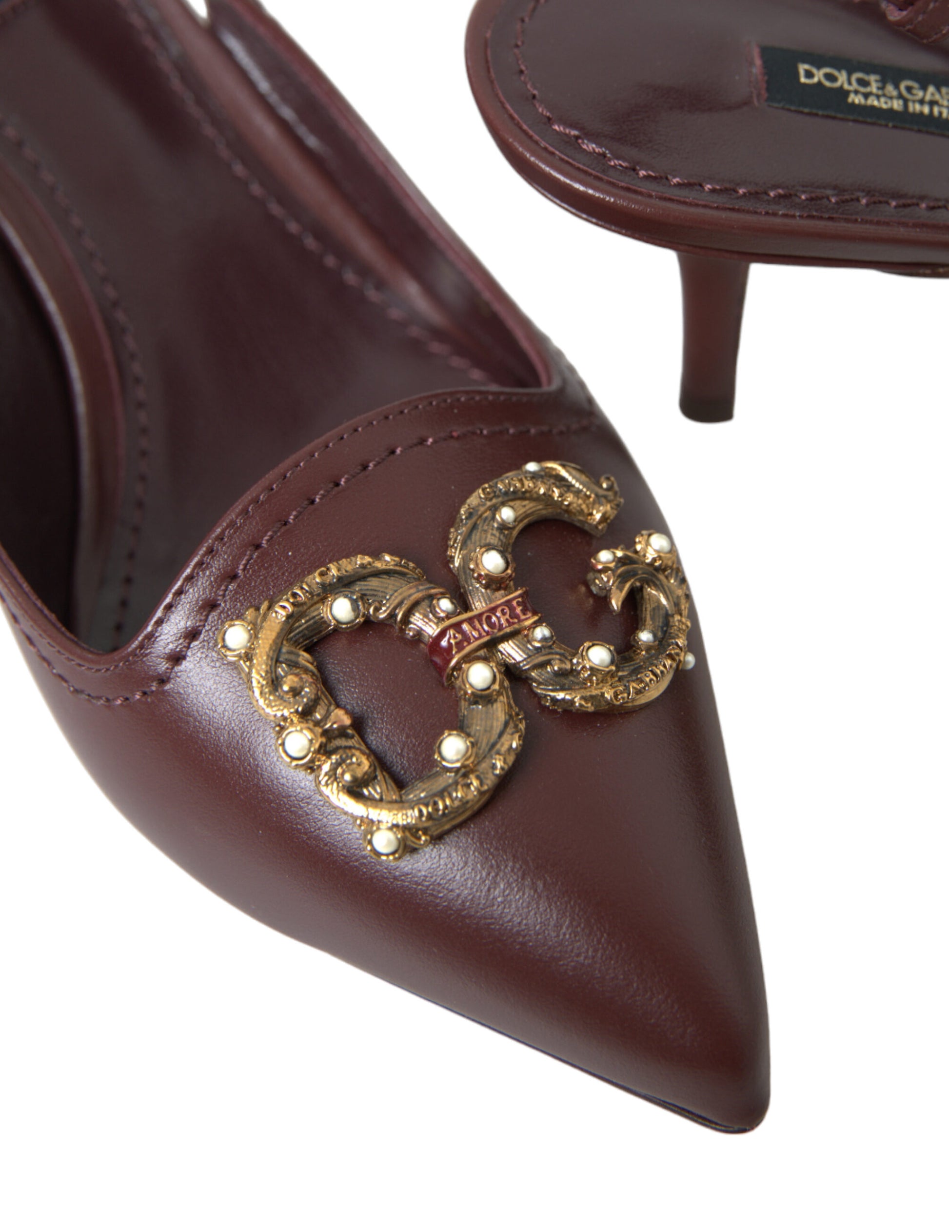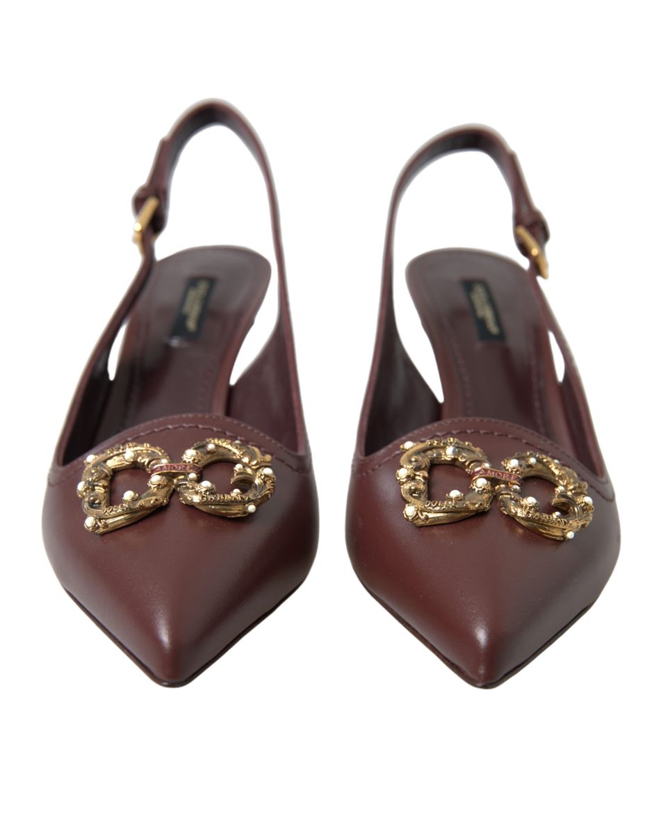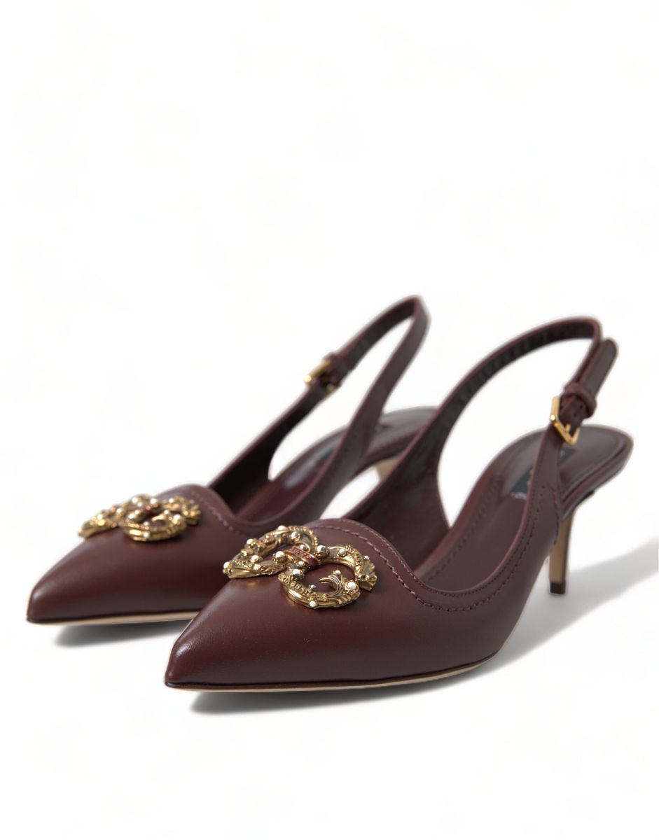 Step out in style with these stunning new slingback pumps from the legendary house of Dolce & Gabbana. Boasting the brand’s synonymous craftsmanship, these 100% authentic heels embody sophistication with their elegant brown leather exterior and immaculately crafted leather soles for unmatched quality and comfort. These made-in-Italy luxuries feature exquisite logo details that add a signature touch to your ensemble, ensuring you make an impression wherever you go.