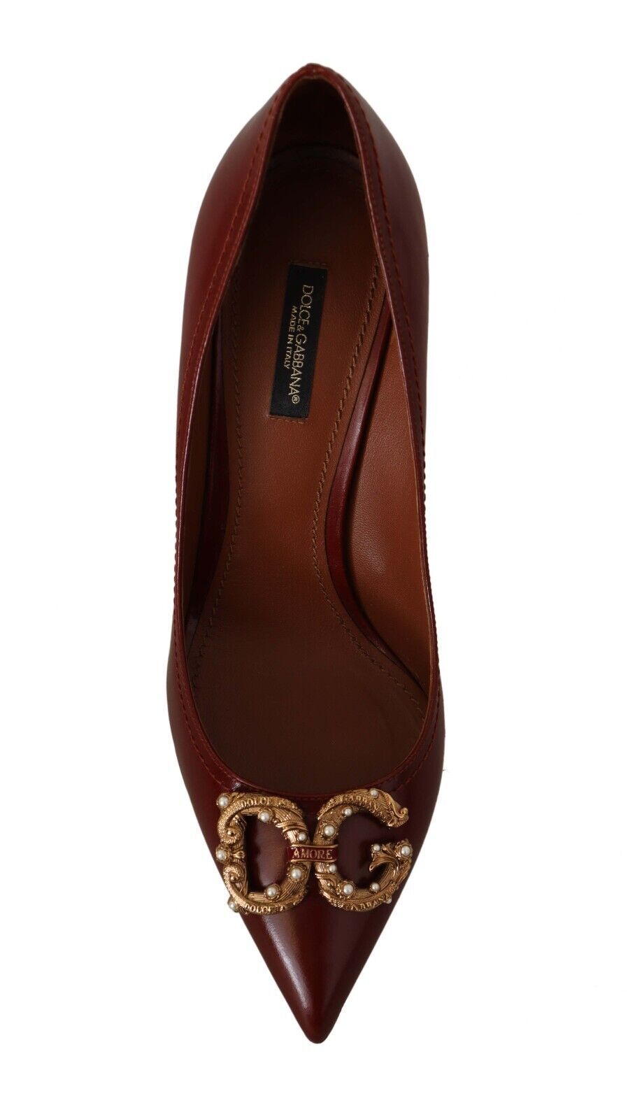Embrace the epitome of Italian luxury and style with these stunning pumps from Dolce & Gabbana . These gorgeous, brand new heels come with tags, ensuring their authenticity and brand-new condition. Crafted from the finest leather, the pumps feature an opulent gold DG Amore logo, signifying love and passion, which is a theme often explored by the designer duo. Not only do these heels boast a sophisticated aesthetic, but they also promise very high quality and comfort, perfect for elevating any outfit with an elegant touch.