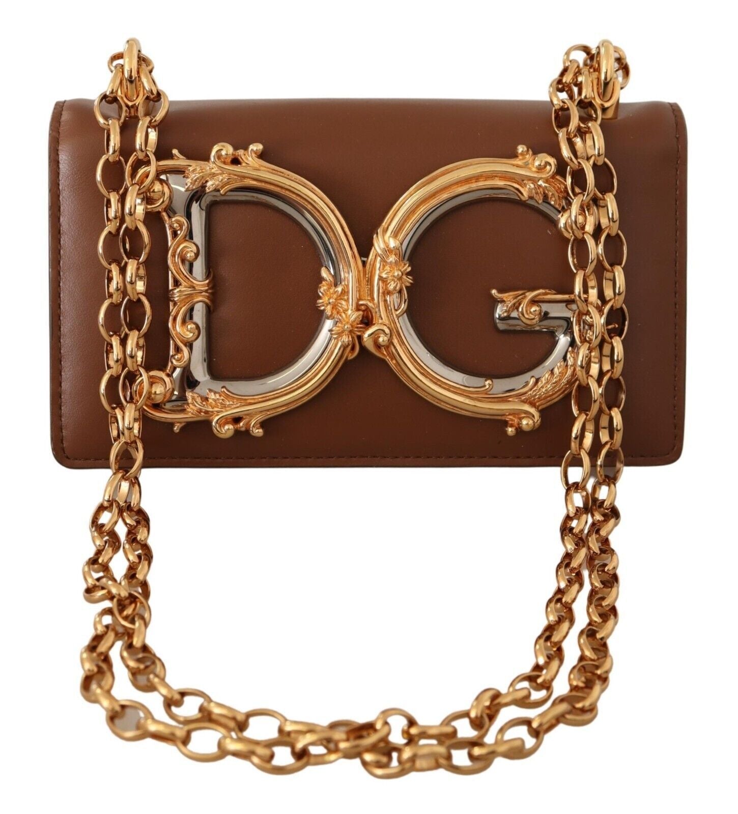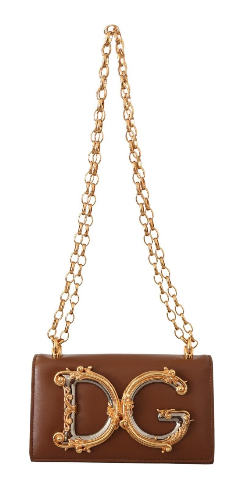 Functionality meets style with its convenient card slots and a secure push-button flap closure which ensures your essentials are always at hand while maintaining an air of chic sophistication. Dolce & Gabbana’s attention to detail is evident in the logo-engraved hardware and the sumptuous brown leather lining that speaks volumes of the brand’s commitment to luxury and quality.