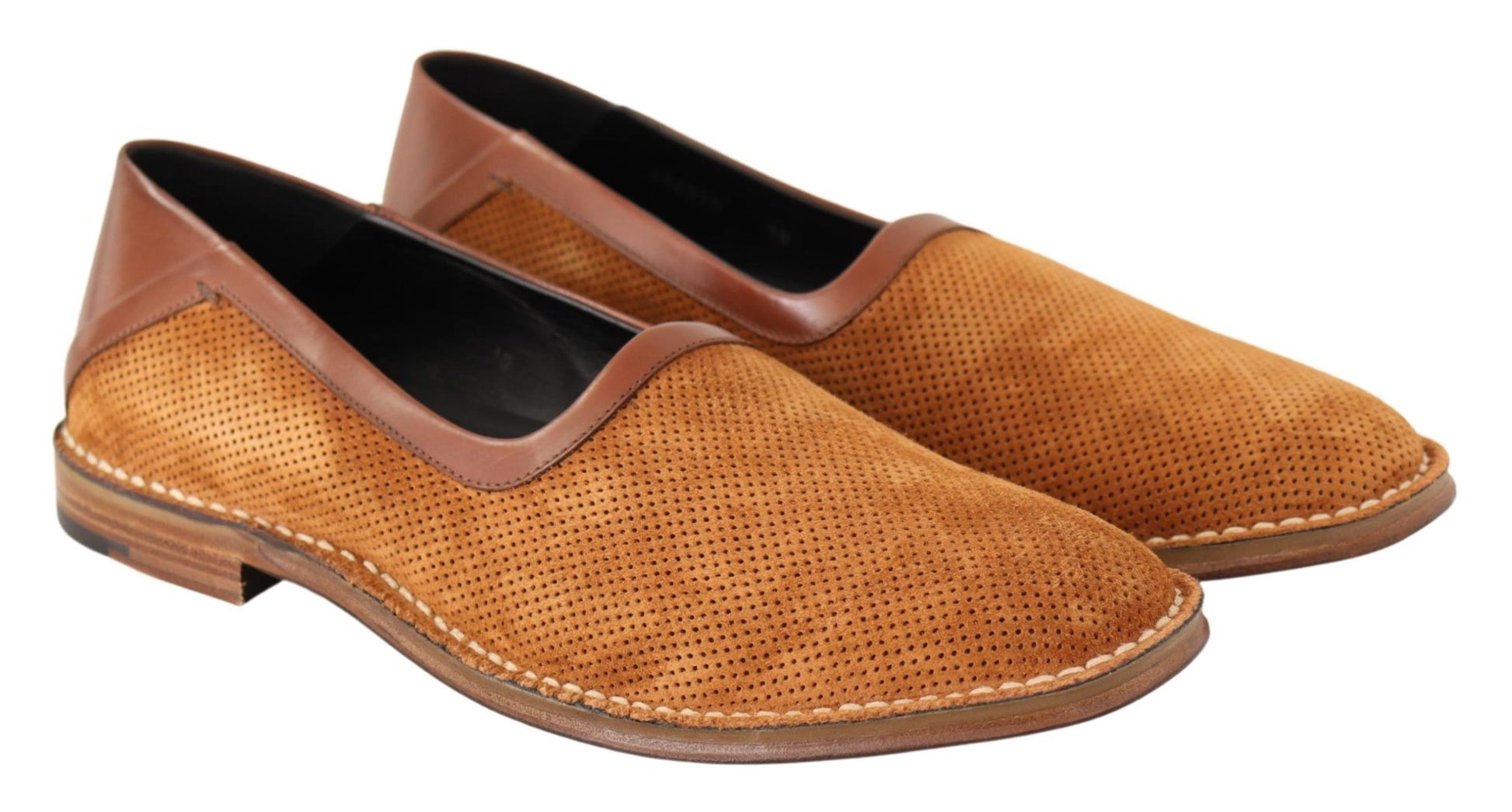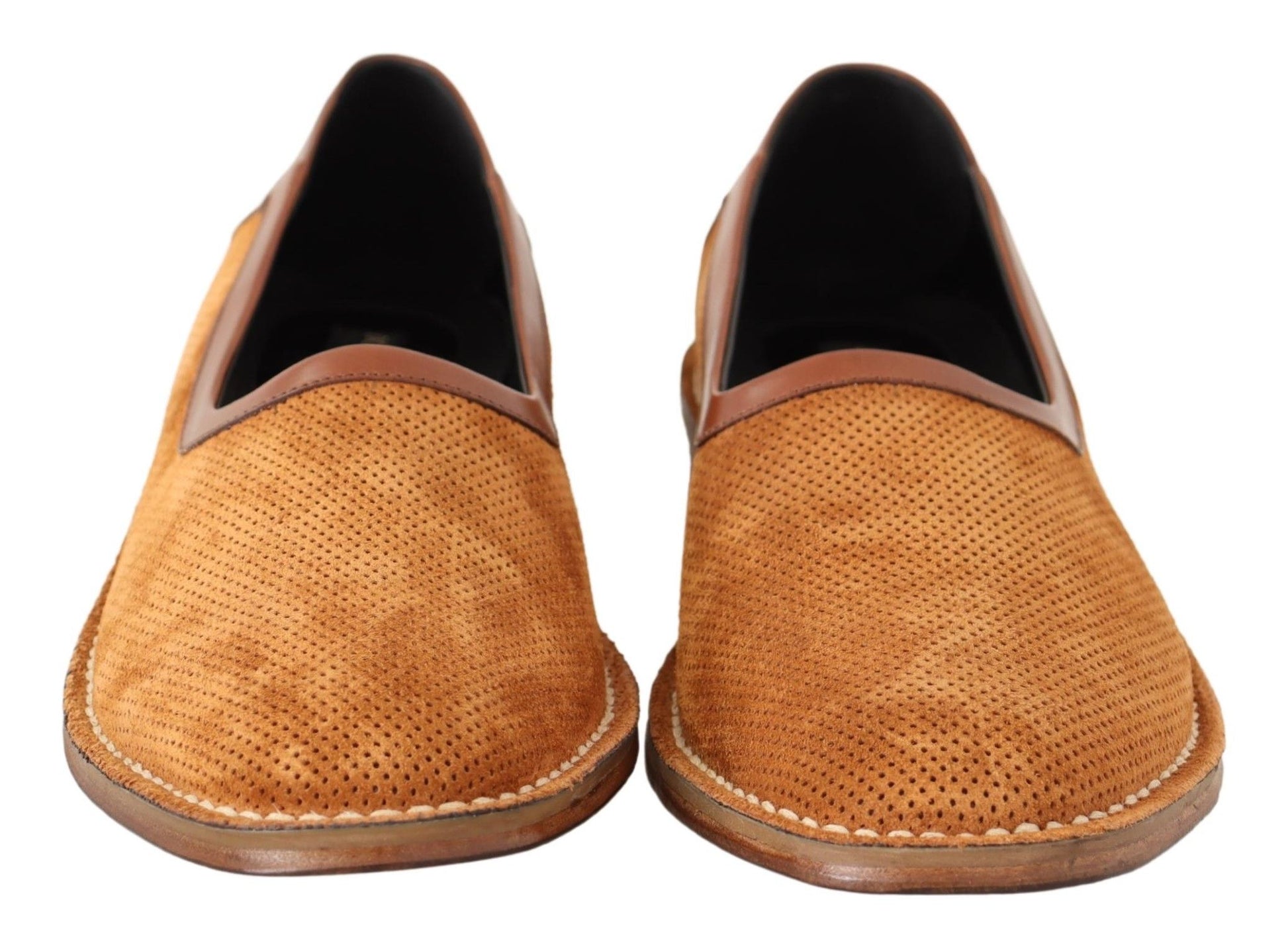 Experience unparalleled Italian craftsmanship with our exquisite loafers from Dolce & Gabbana. These loafers are perfect for any gentleman seeking to elevate his style with a touch of class. Meticulously crafted from premium leather, they boast a sleek brown finish and are adorned with subtle logo details. With a luxuriously comfortable fit, these loafers are ideal for both formal events and smart-casual outings.