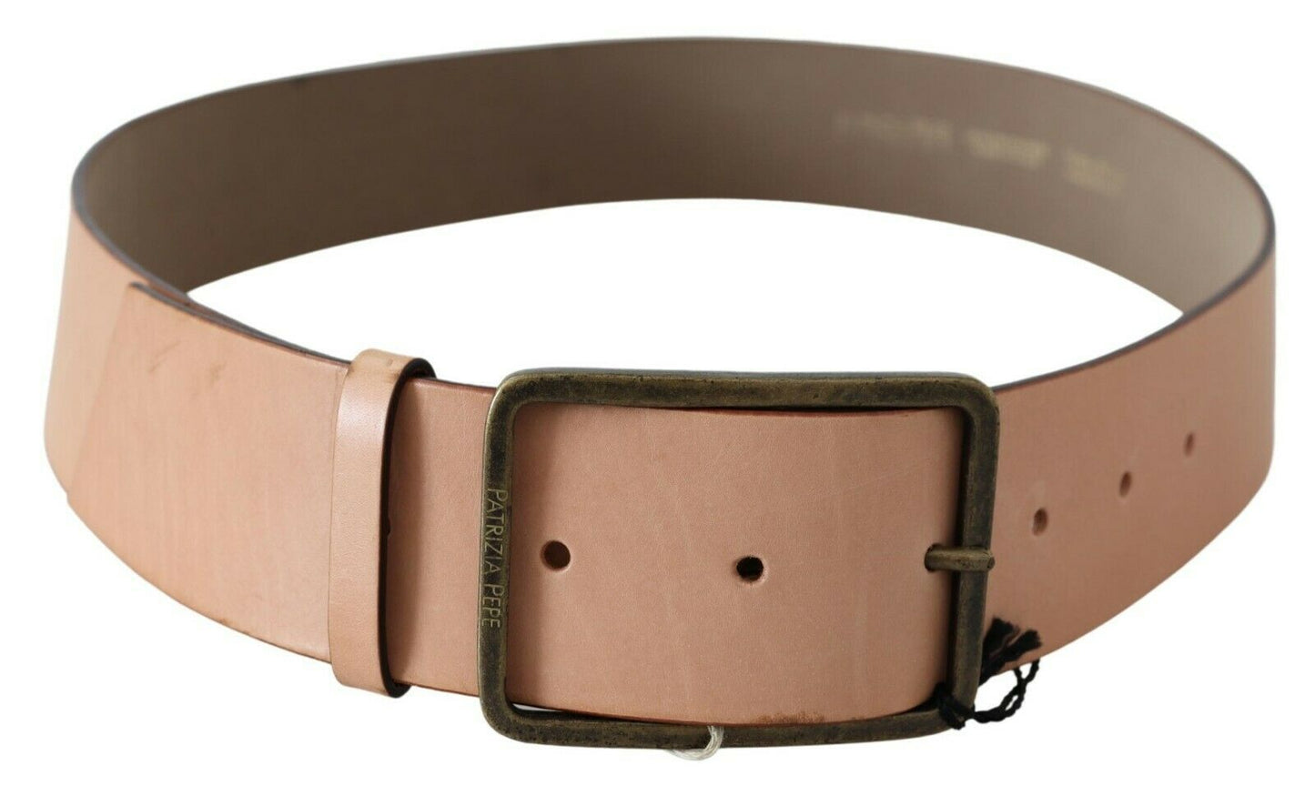 Indulge in the epitome of Italian elegance with this stunning peach-colored waist belt from Patrizia Pepe. Carefully crafted from premium leather, it showcases a chic, bronze square hardware and an eye-catching logo buckle closure that accentuates its luxurious appeal.