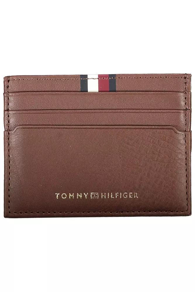 Step into the realm of timeless sophistication with the Tommy Hilfiger Leather Card Holder. Crafted for the modern man, this sleek accessory boasts a rich brown hue complemented by signature Tommy Hilfiger accents. Its compact design features one central pocket—engineered to comfortably secure your cards while maintaining a slim profile for seamless elegance.