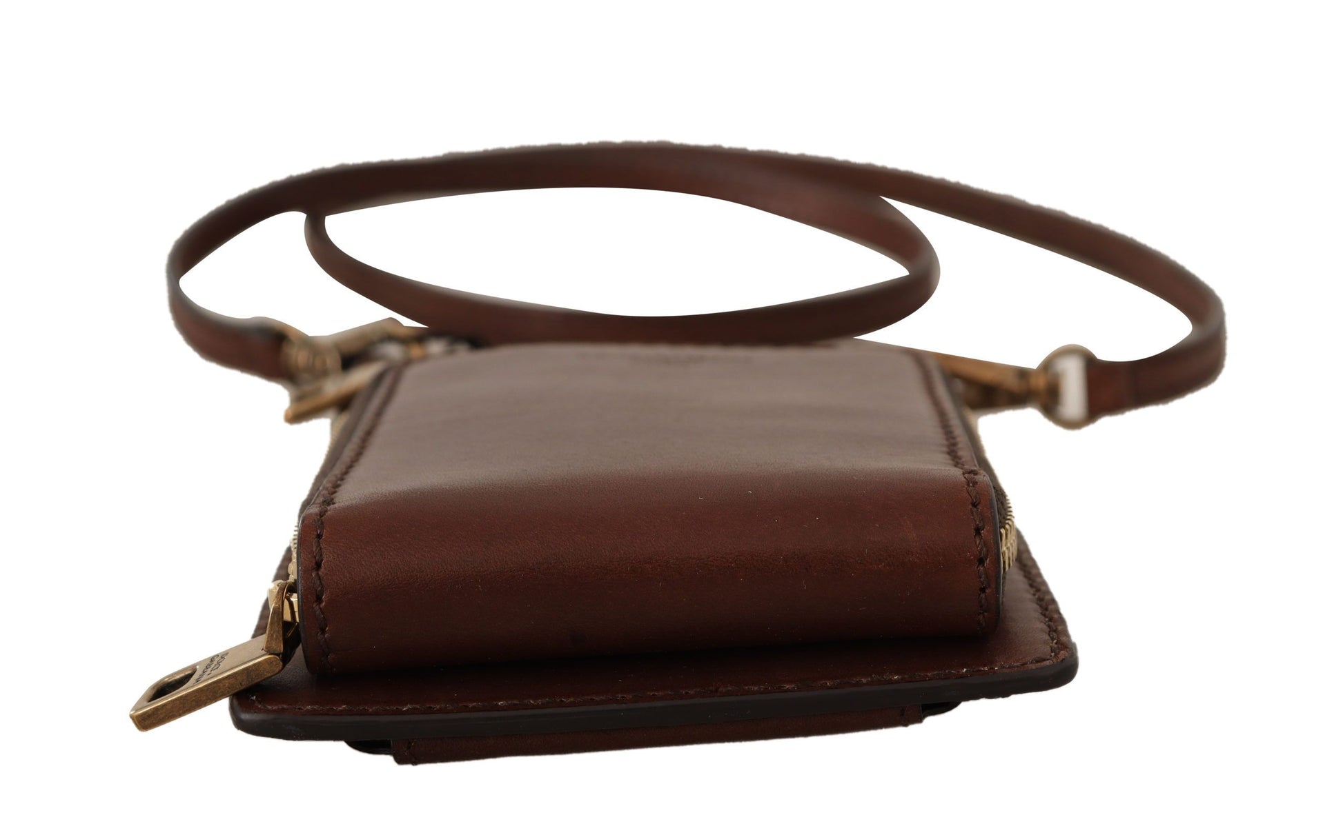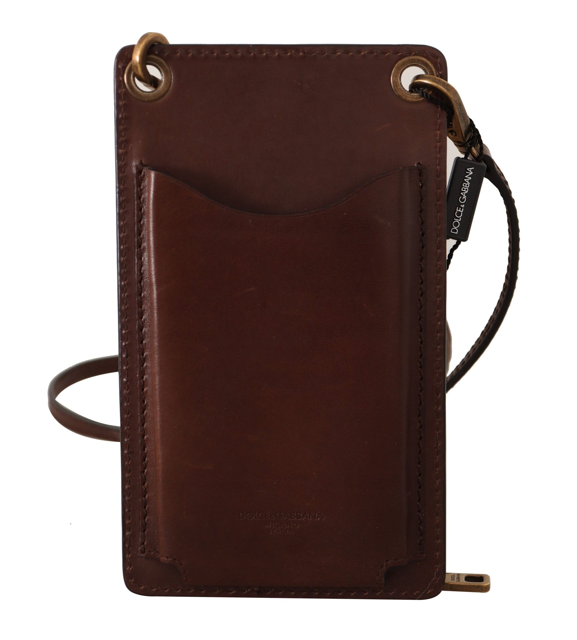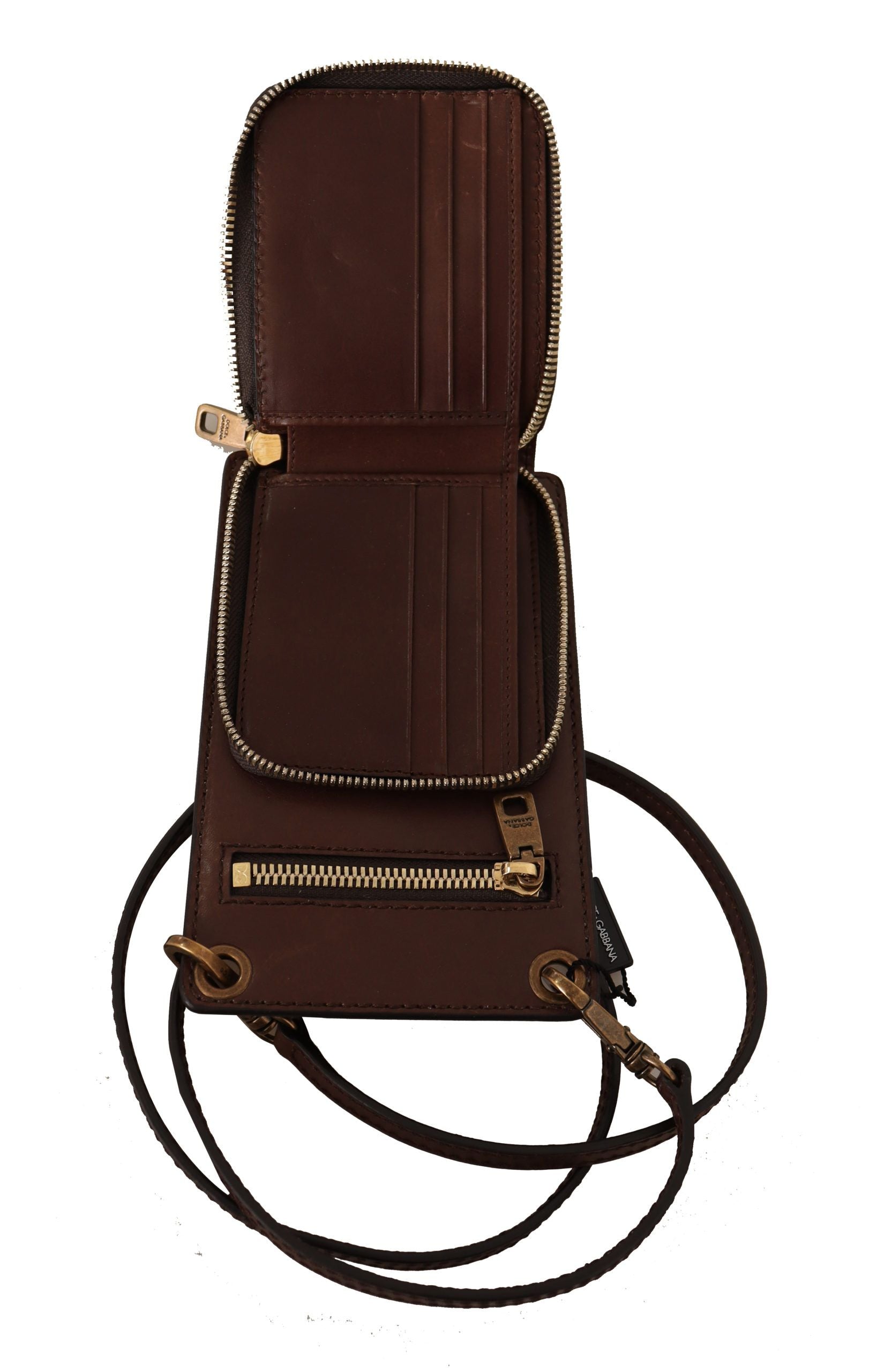 Discover the epitome of Italian craftsmanship with this stylish and practical phone wallet by Dolce & Gabbana. This premium accessory ensures your essentials are always within reach, intricately designed with a combination of function and elegance. A lustrous brown hue and gleaming gold metal detailing complements its luxurious leather composition, making it a standout addition to your collection.