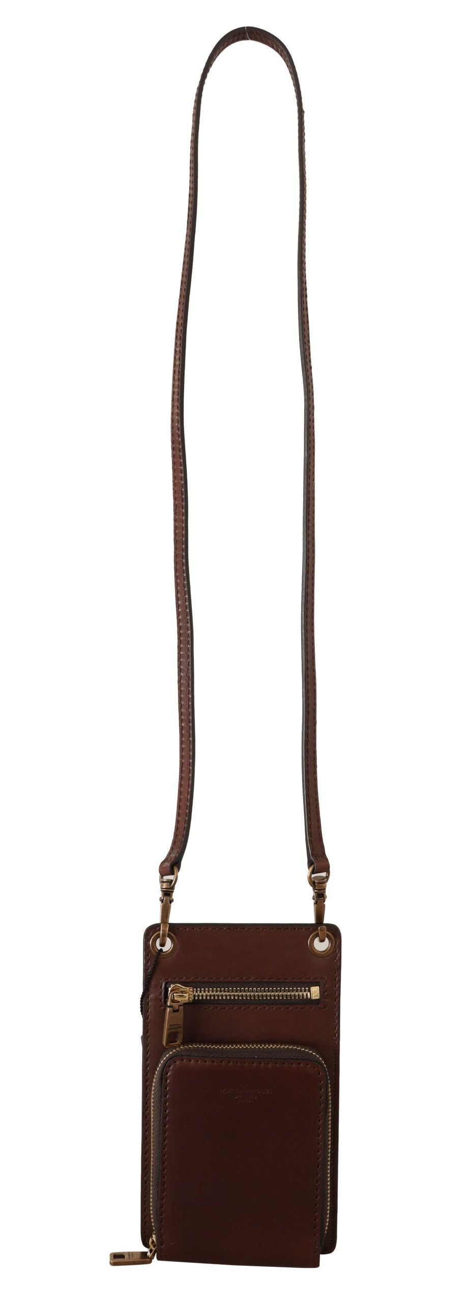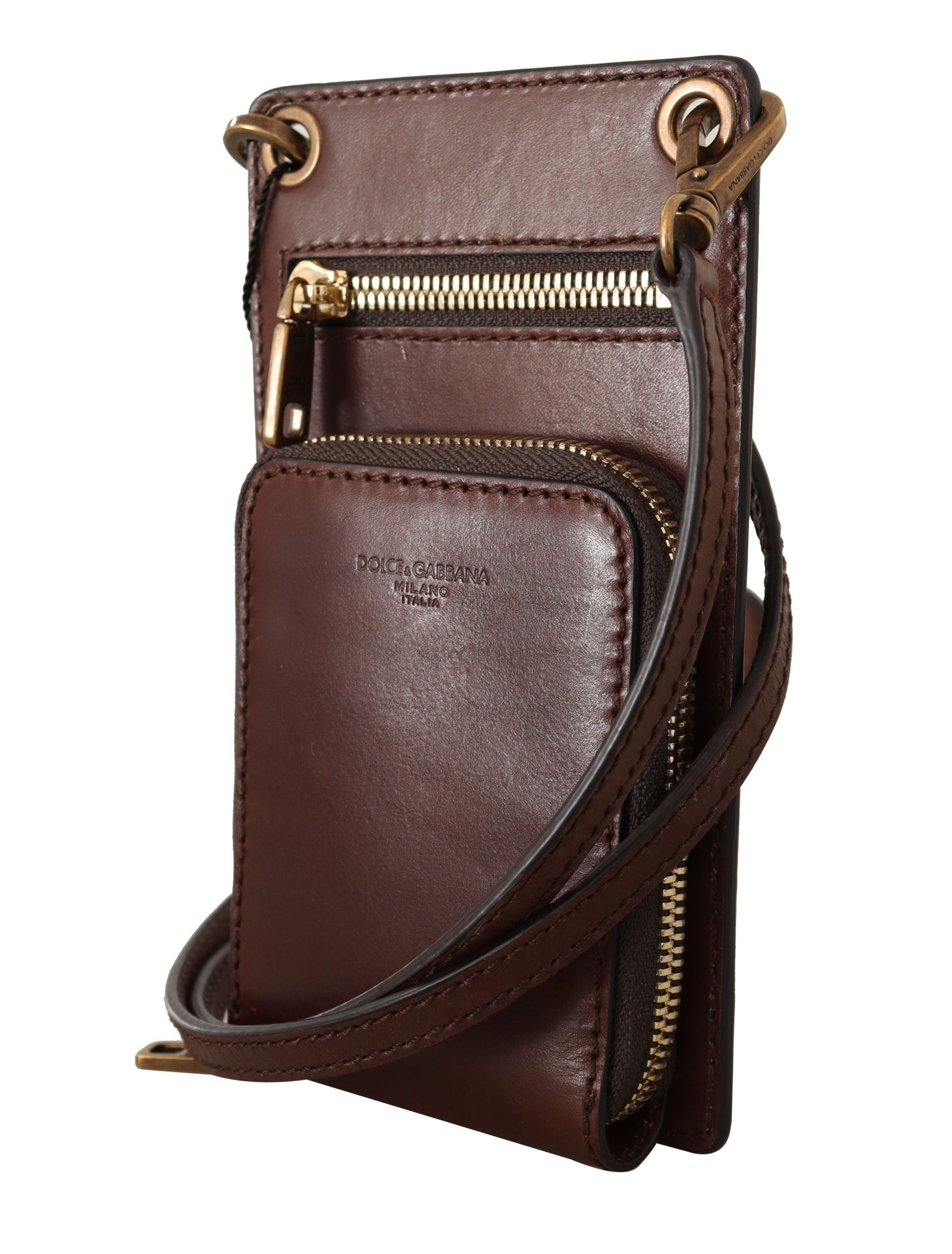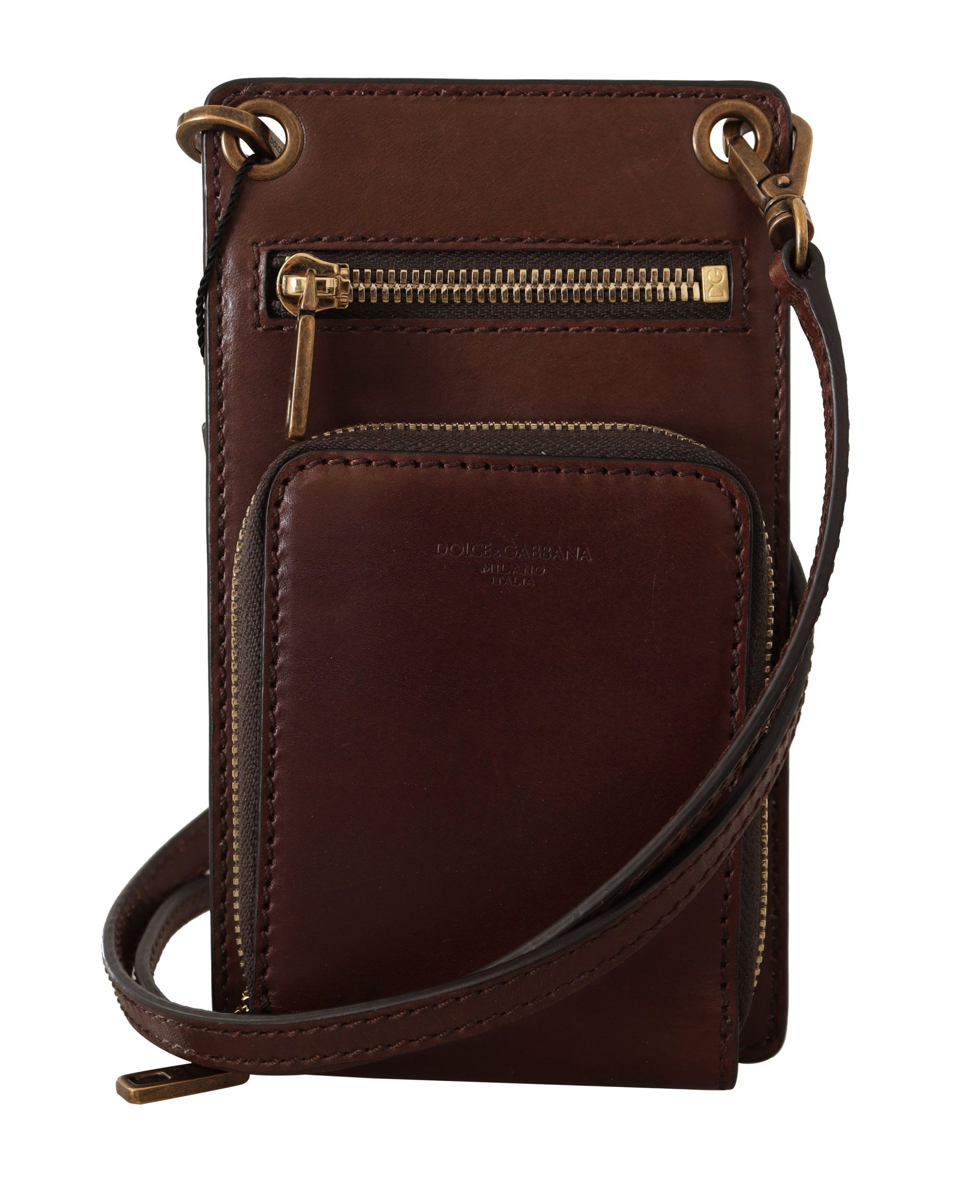 Discover the epitome of Italian craftsmanship with this stylish and practical phone wallet by Dolce & Gabbana. This premium accessory ensures your essentials are always within reach, intricately designed with a combination of function and elegance. A lustrous brown hue and gleaming gold metal detailing complements its luxurious leather composition, making it a standout addition to your collection.