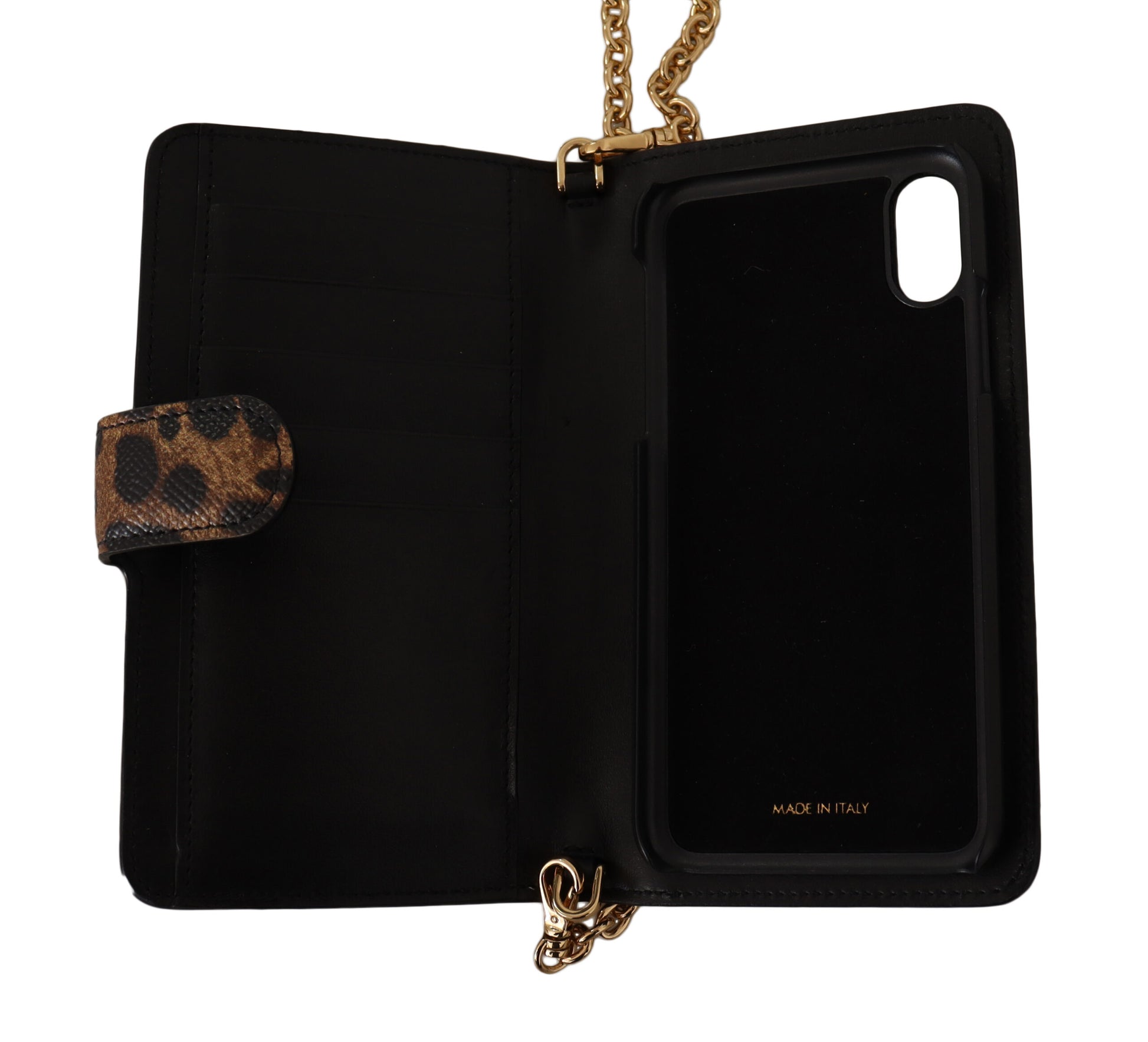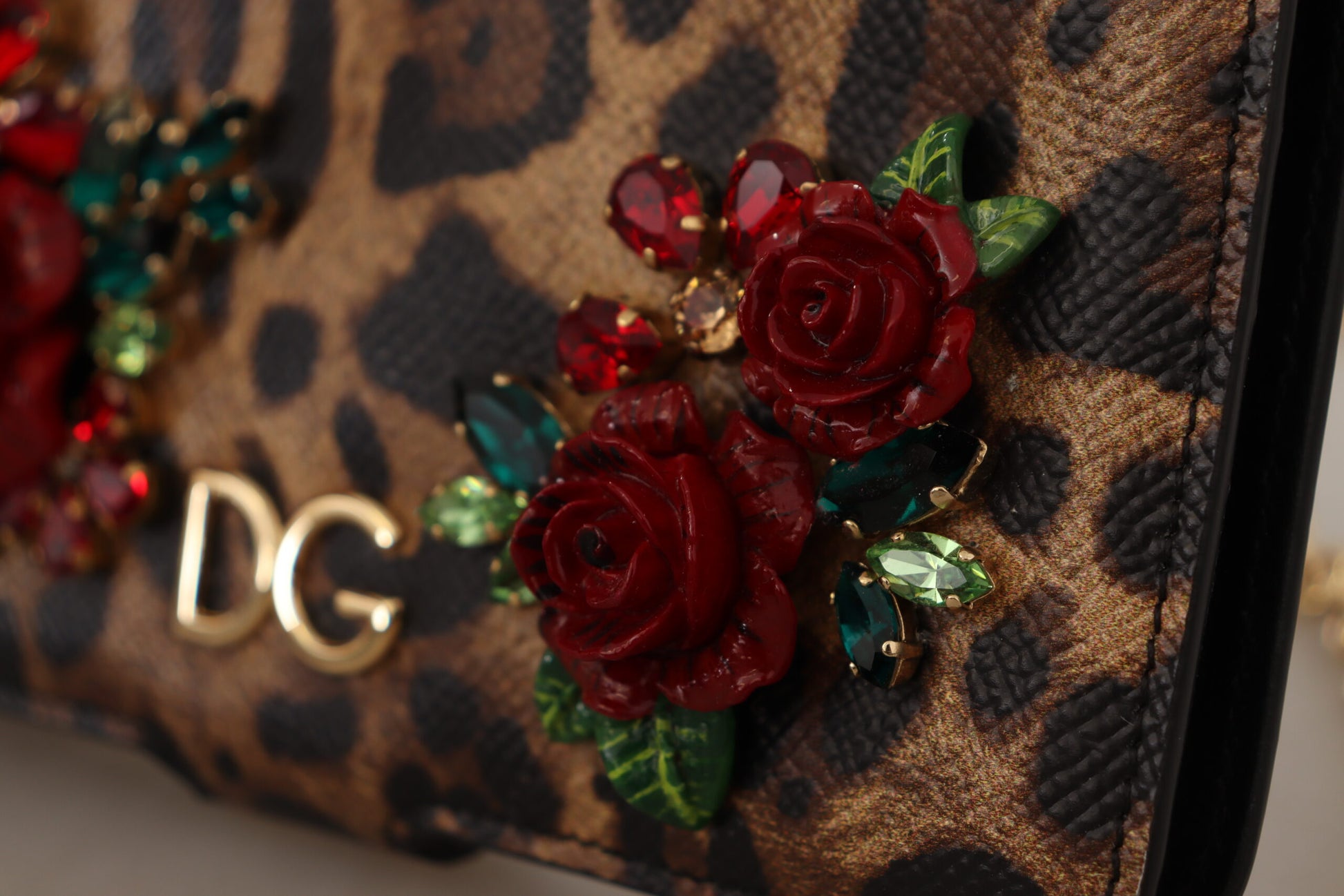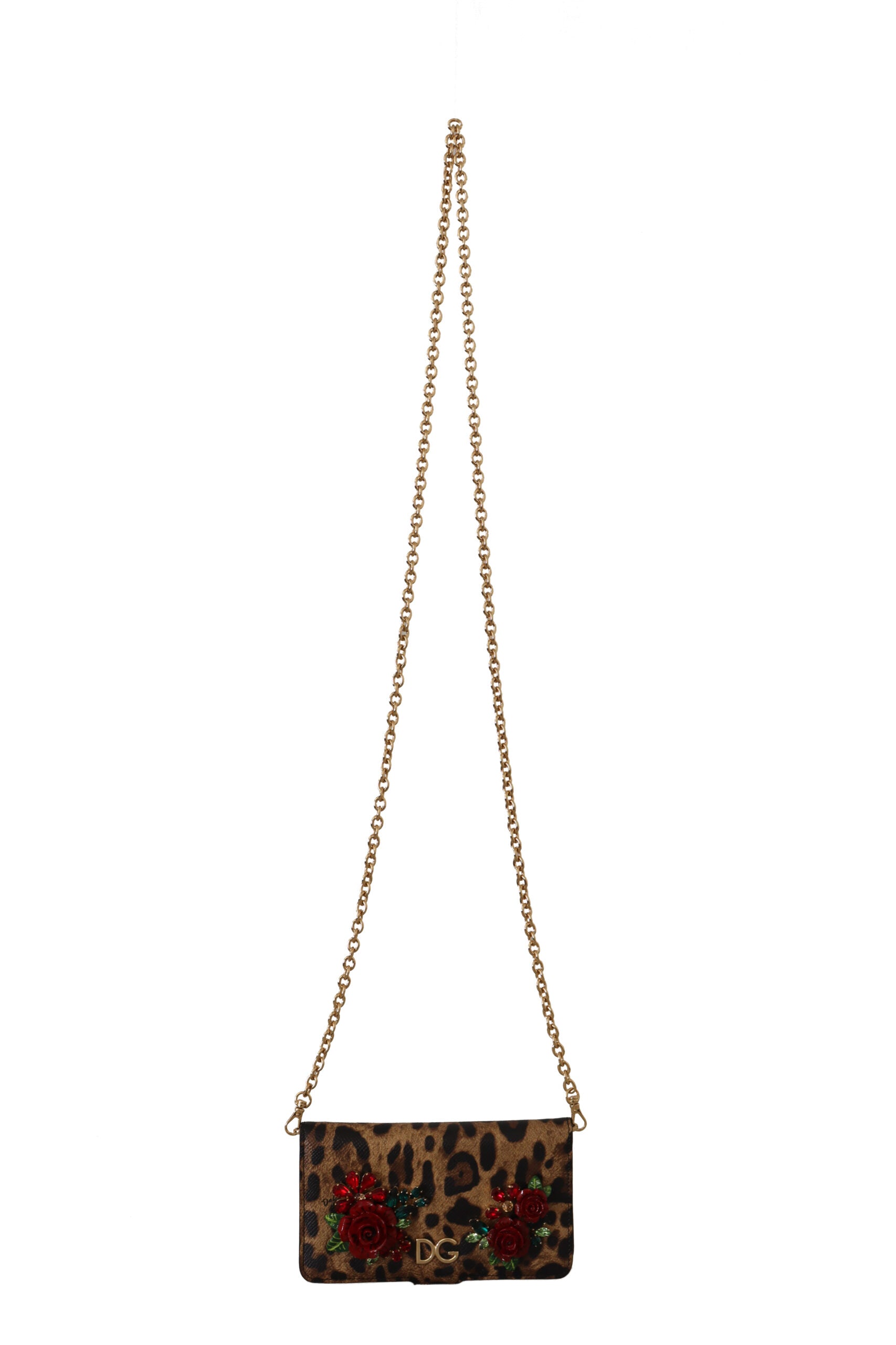 Indulge in the luxury of Dolce & Gabbana with this exquisitely crafted phone cover. Designed to add a touch of glamour to your iPhone X-XS, this cover boasts a brown leopard pattern enriched with red roses and sparkling crystal detailing. It’s more than just a protective accessory; it’s a statement of style. Made in Italy, this cover guarantees quality and durability, wrapped up in an iconic design.