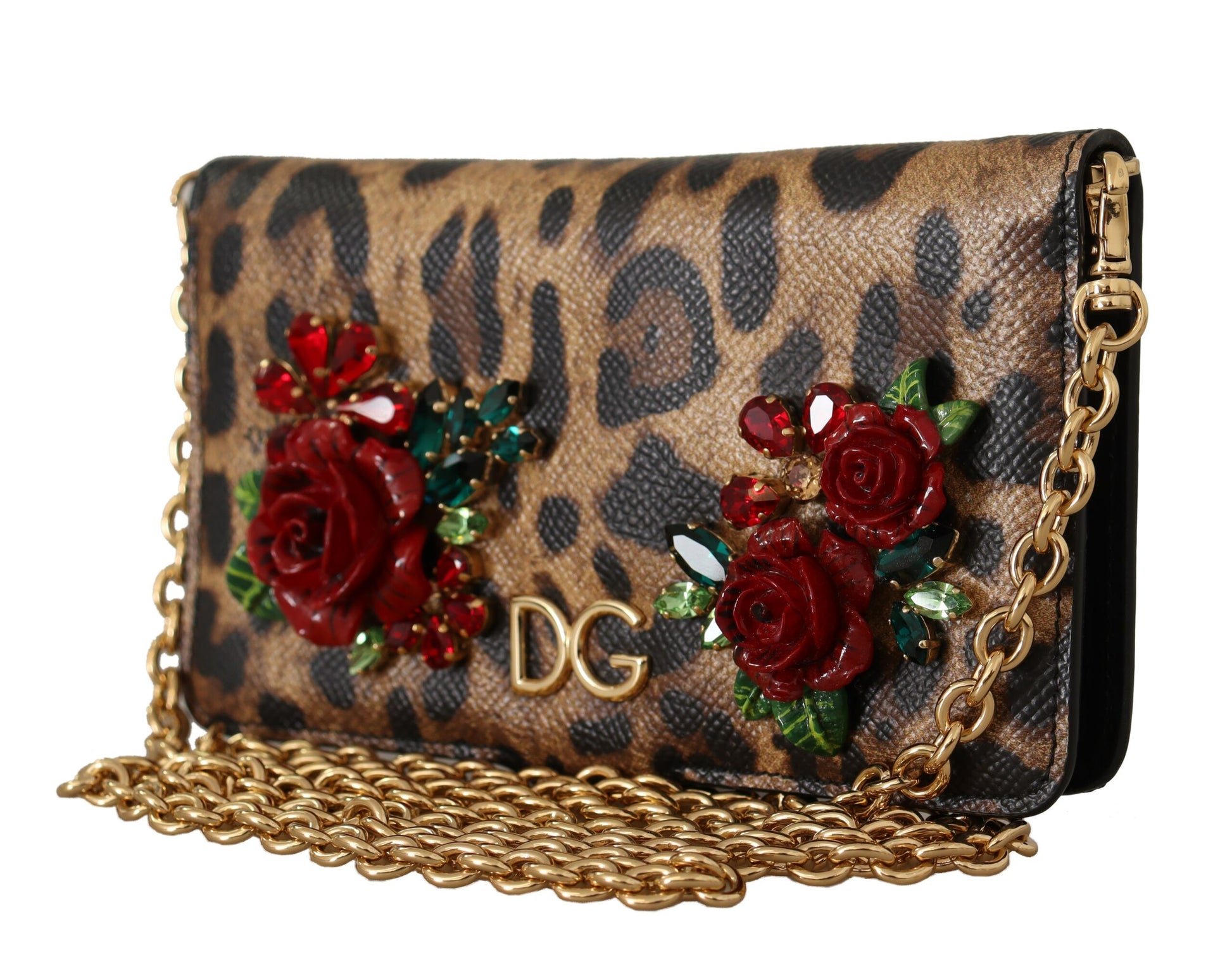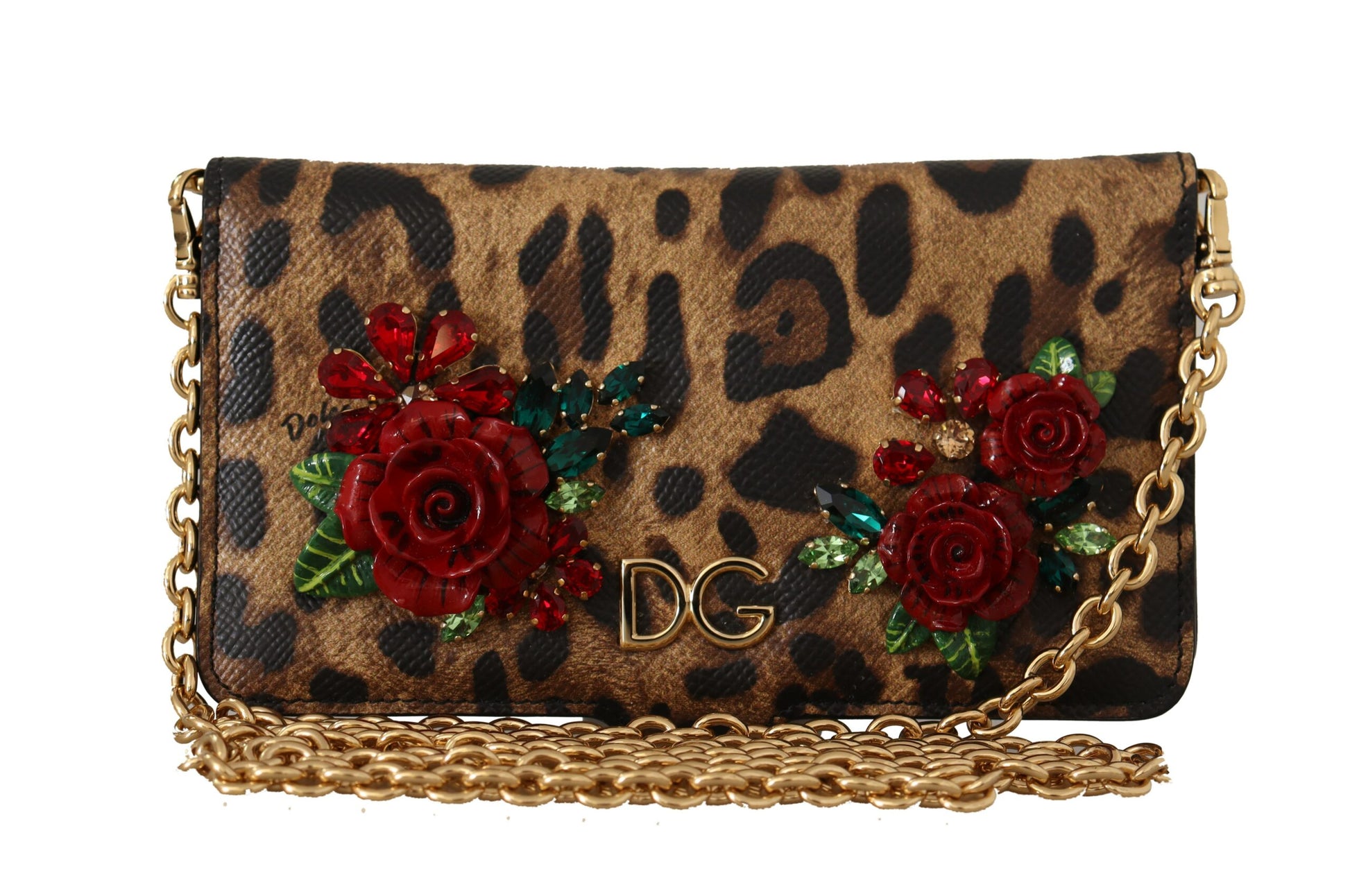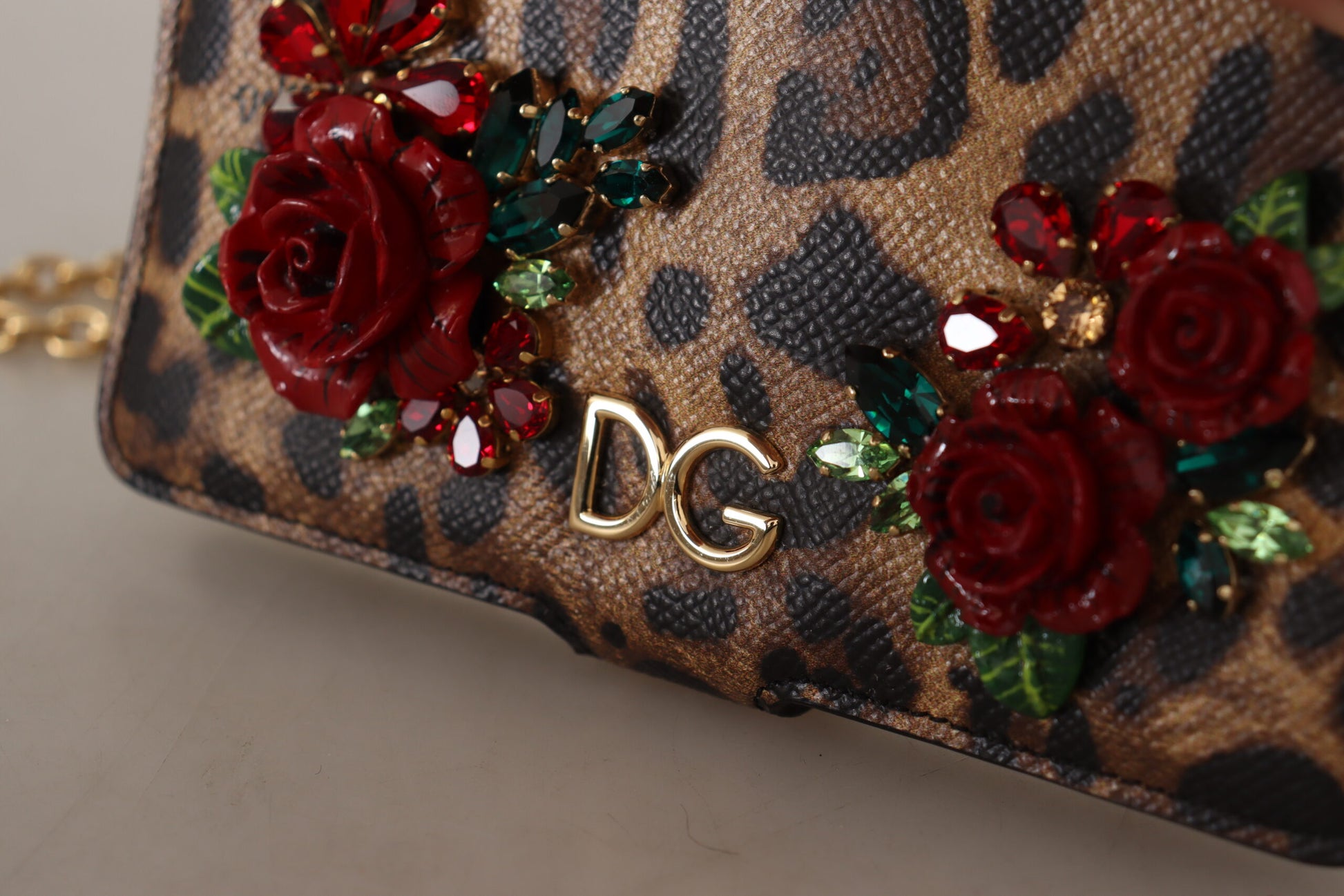 Indulge in the luxury of Dolce & Gabbana with this exquisitely crafted phone cover. Designed to add a touch of glamour to your iPhone X-XS, this cover boasts a brown leopard pattern enriched with red roses and sparkling crystal detailing. It’s more than just a protective accessory; it’s a statement of style. Made in Italy, this cover guarantees quality and durability, wrapped up in an iconic design.