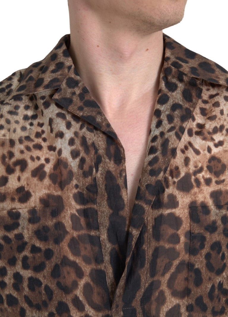 Indulge in the pinnacle of high-fashion with our stunning Dolce & Gabbana casual nylon shirt. This piece isn’t just clothing; it’s a statement. With its eye-catching leopard print on a luxurious brown background, it exudes style and confidence, perfect for any discerning fashion enthusiast. The shirt features a classic neck and short sleeves, offering a regular fit that’s both stylish and comfortable. Completed by a front button closure and refined logo details, this piece is a must-have for those who appreciate Italian craftsmanship and bold design.