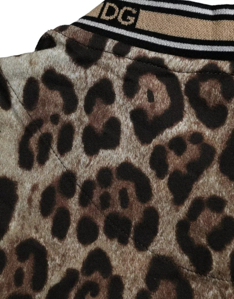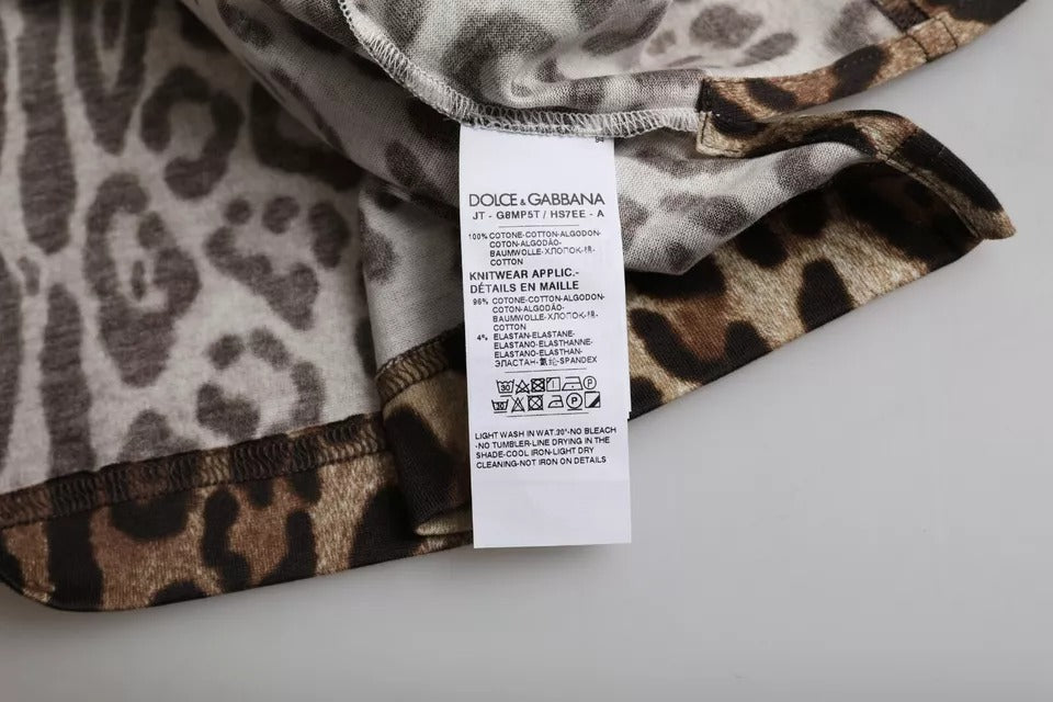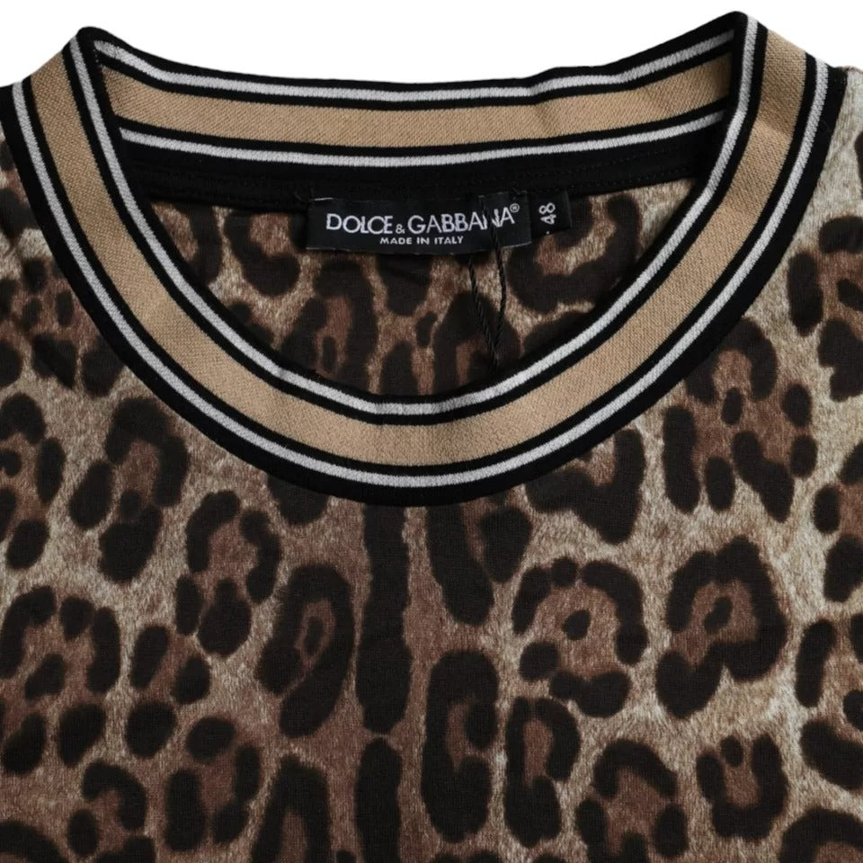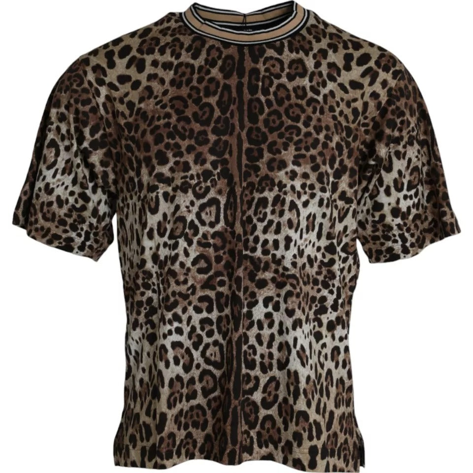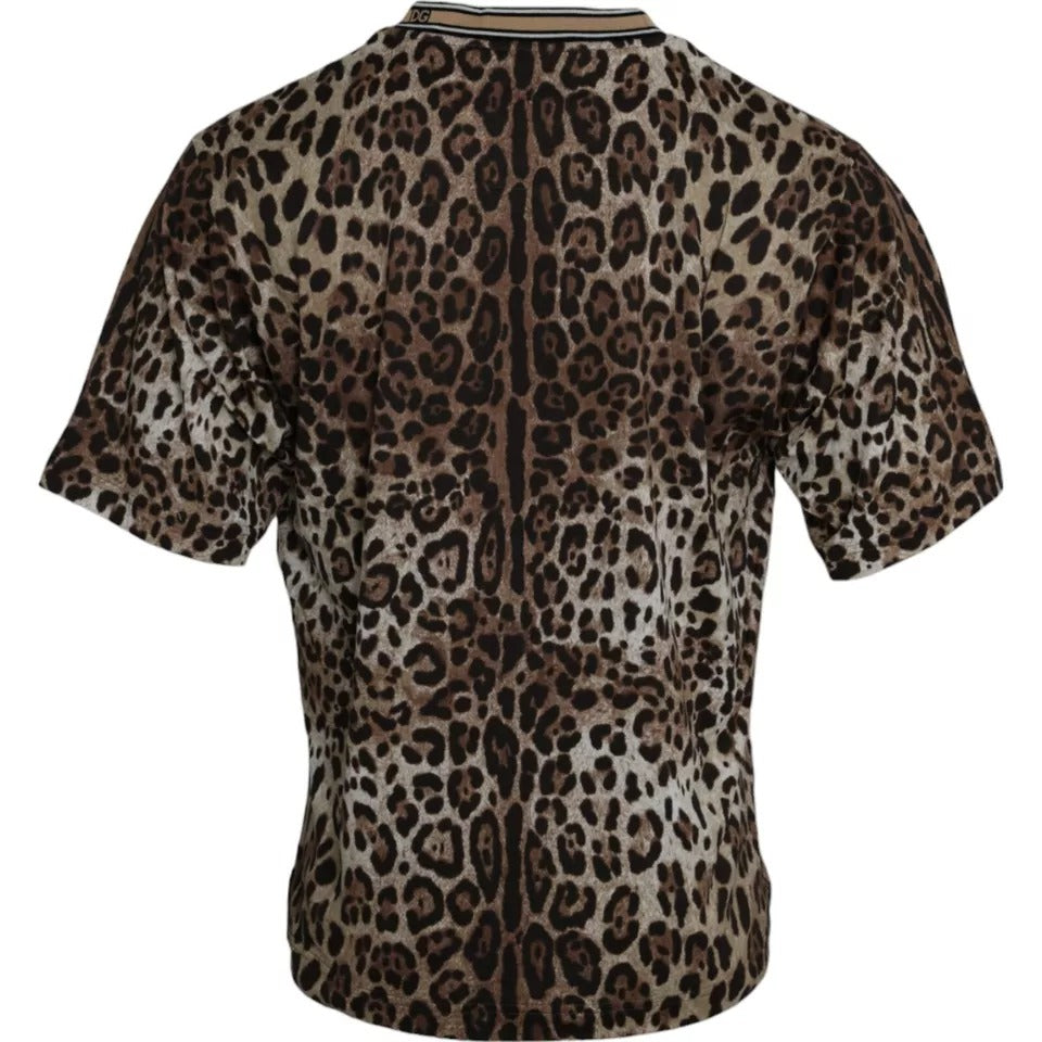 Brown Leopard Print Cotton Crew Neck T-shirt