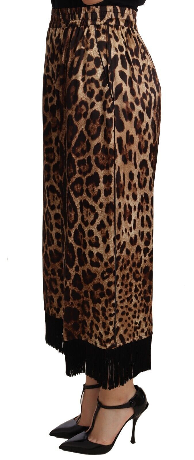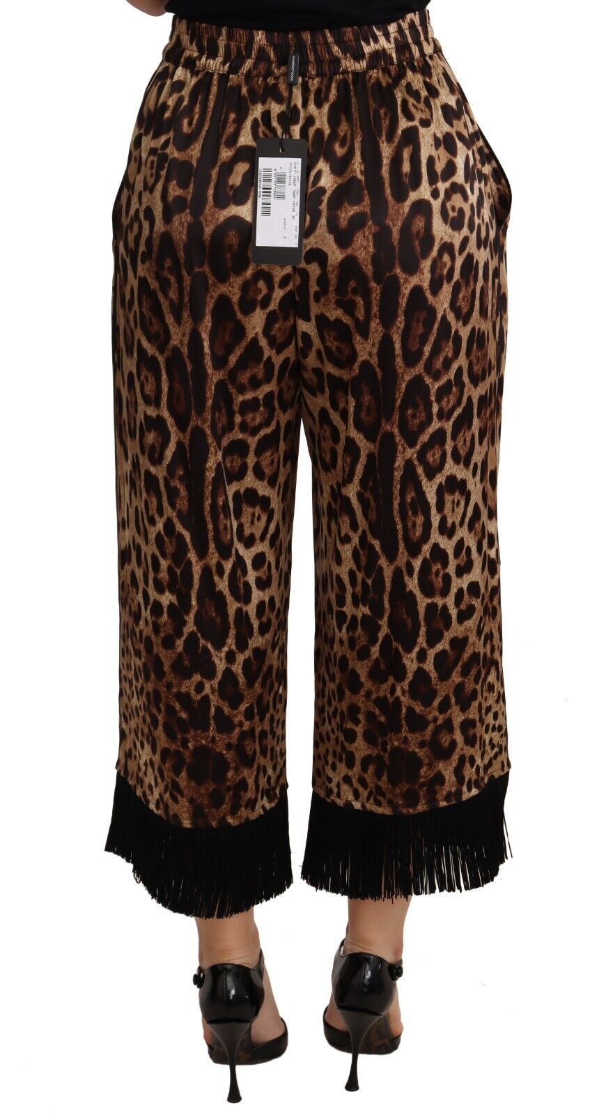 Indulge in the epitome of Italian luxury with these exquisite Dolce & Gabbana cropped pants, showcasing a bold leopard print paired with playful fringes for an impeccable blend of glamour and sophistication. A versatile addition to your wardrobe, these pants are perfect for creating a high-fashion statement while enjoying the sumptuous comfort of silk blended with a touch of elastane. Crafted in Italy, they embody the finesse and quality that Dolce & Gabbana is renowned for.