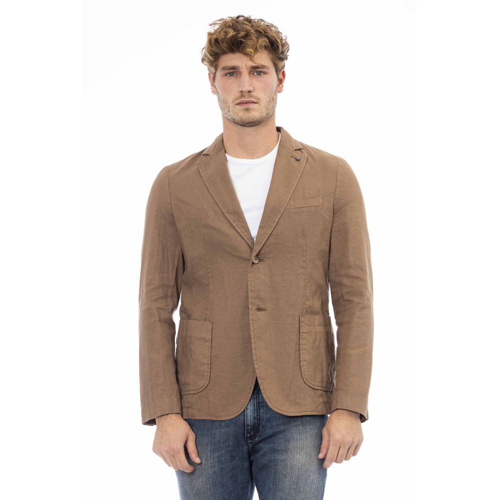 Step into a world of timeless elegance with this Distretto12 jacket, where classic design meets modern sensibilities. A piece that exudes sophistication, it’s structured with front pockets and a crisp button closure for a look that’s equally appropriate in boardrooms or at brunch. Crafted from a luxe blend that emphasizes comfort without sacrificing style, this brown blazer is a must-have for the discerning gentleman who appreciates quality and subtlety.