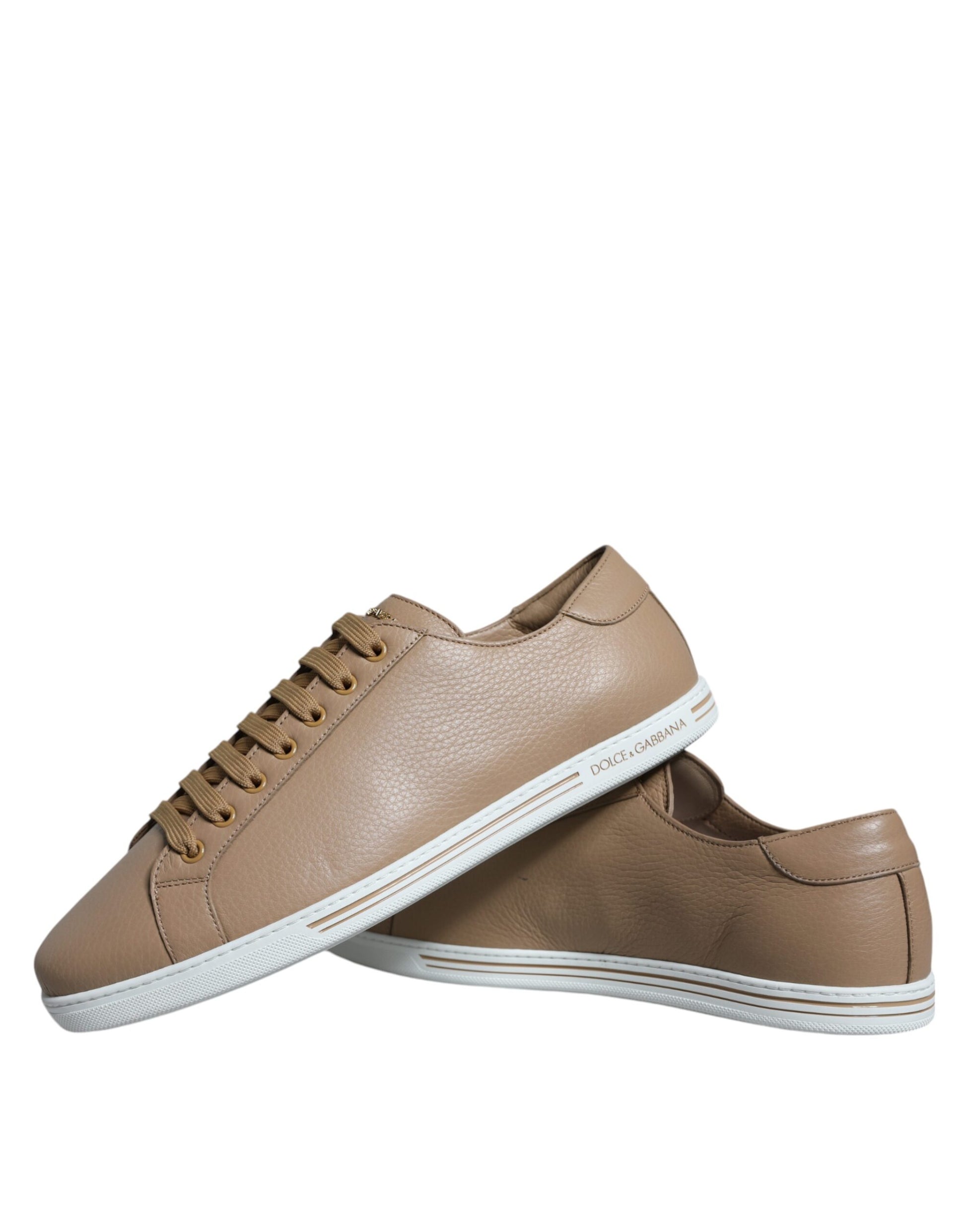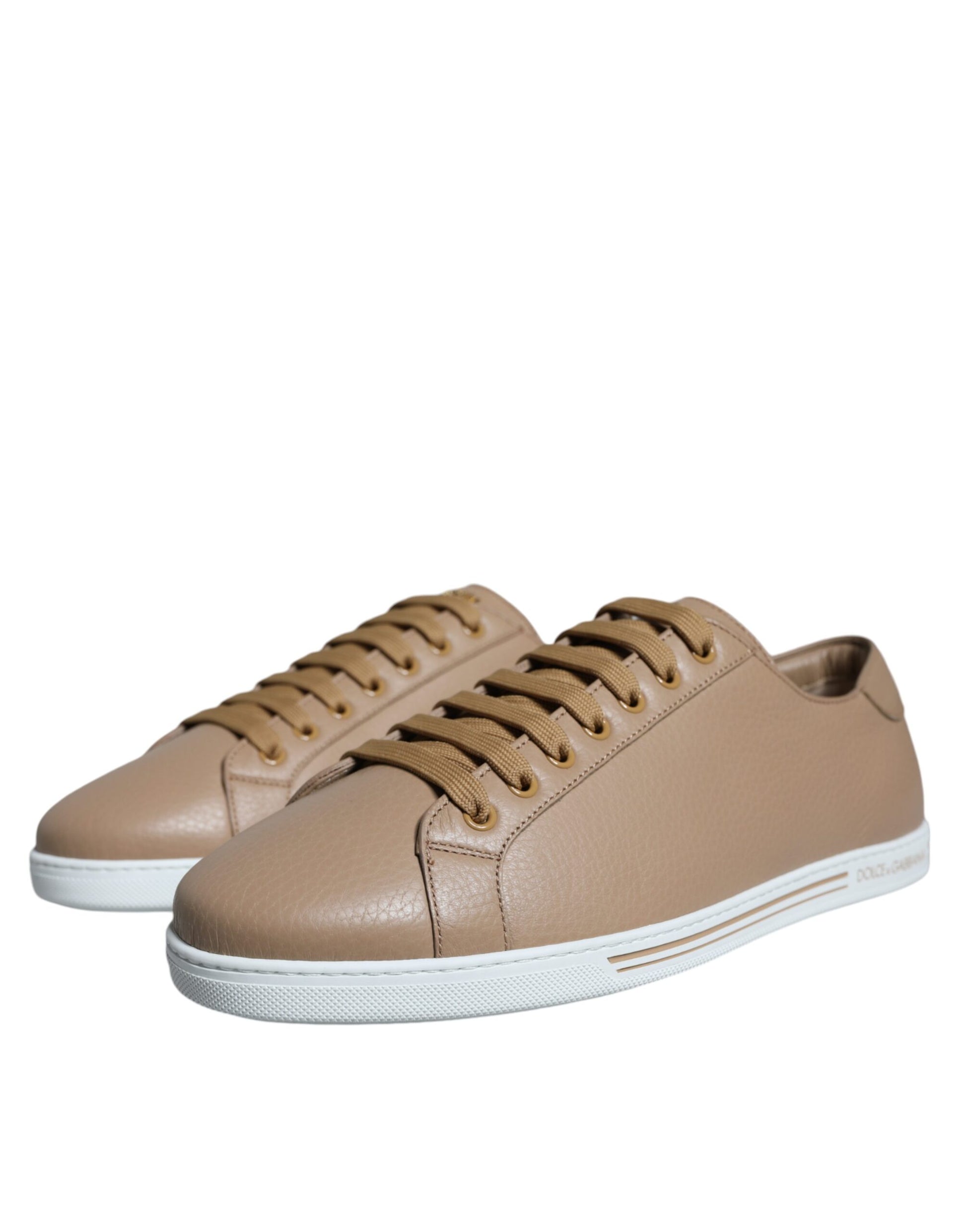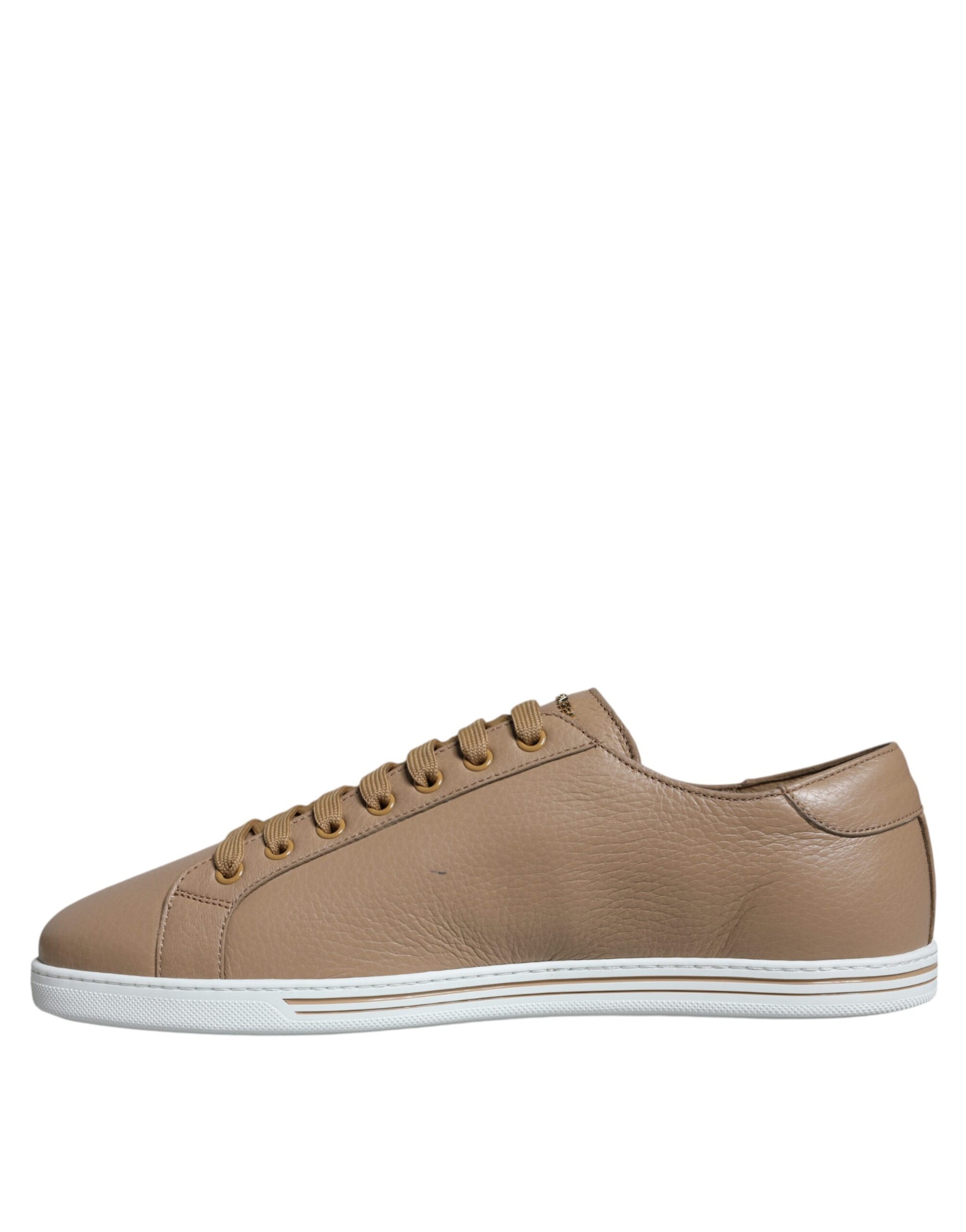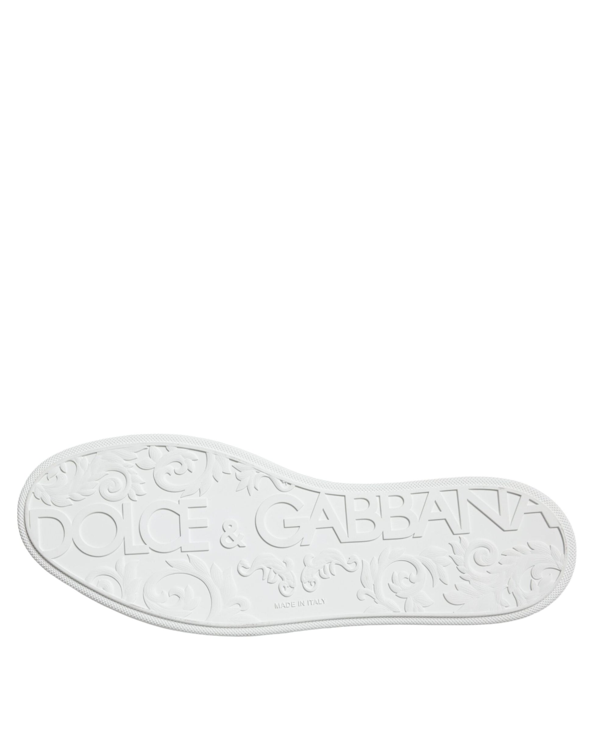 Gorgeous brand new with tags, 100% Authentic Dolce & Gabbana ‘Saint Tropez’ lace-up sneakers. Made of leather. Front decorated with a gold-tone metal logo. White rubber sole featuring an embossed logo.
