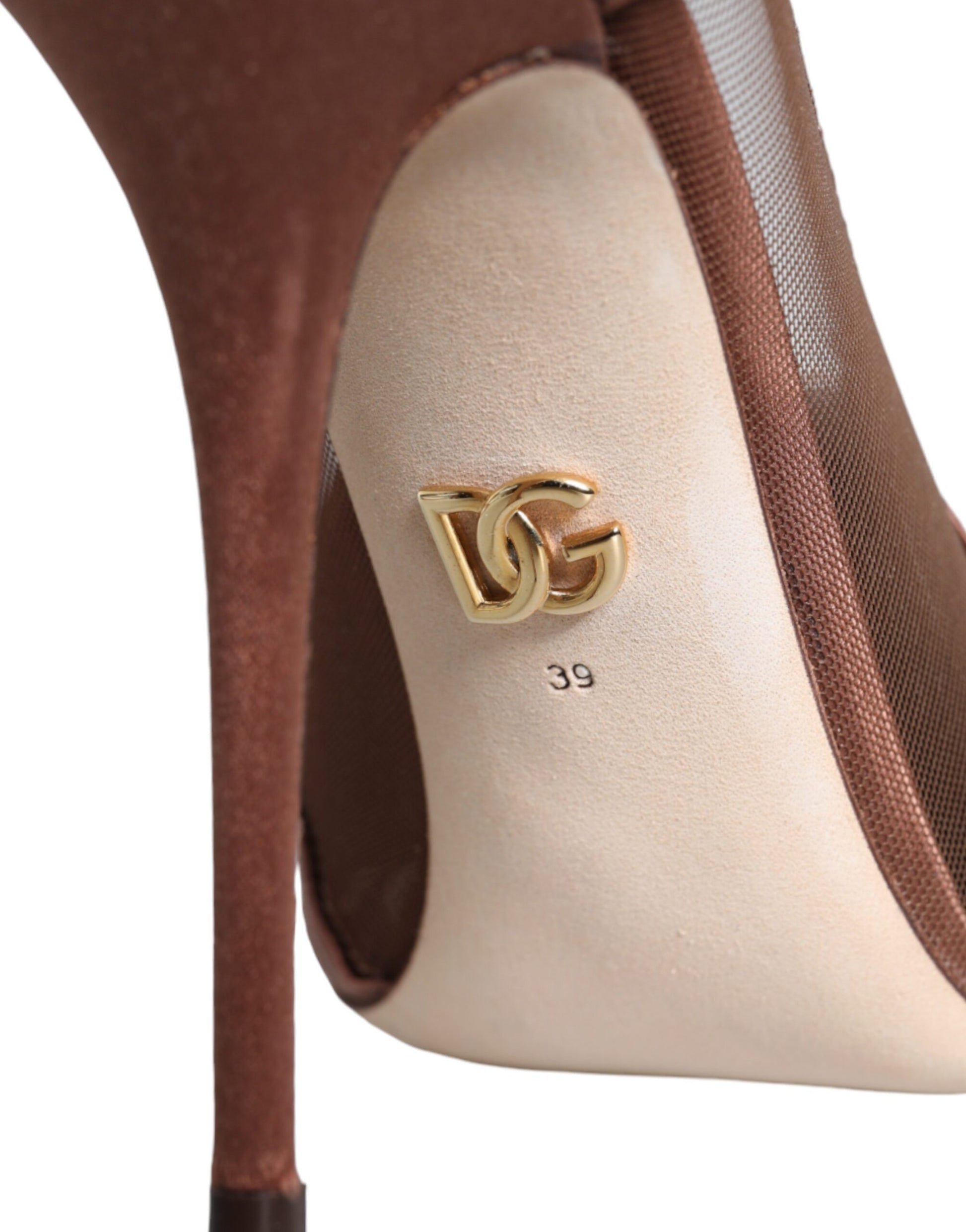 Brown Mesh Viscose Ankle Strap Pumps Shoes