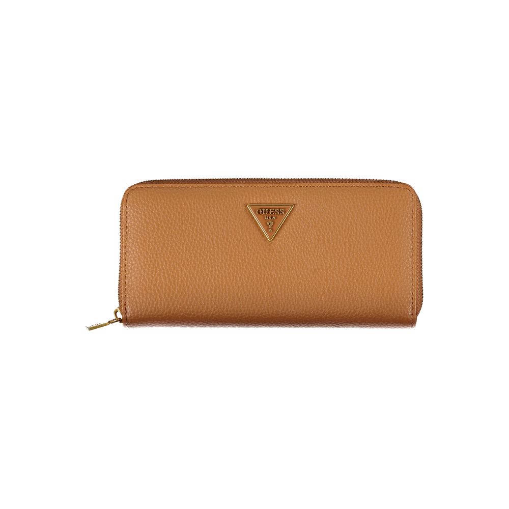 Experience the perfect blend of style and practicality with our Chic Brown Multipocket Wallet. Fashioned from high-quality polyethylene, this elegant accessory is a testament to Guess Jeans’ commitment to luxury and functionality. With five compartments, including a coin purse and double card spaces, your essentials are organized and readily accessible. The secure zip closure and a chic removable long pull add both security and a touch of sophistication. Adorned with the Guess Jeans logo, this wallet is not just a utility item but a style statement.