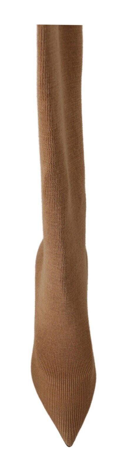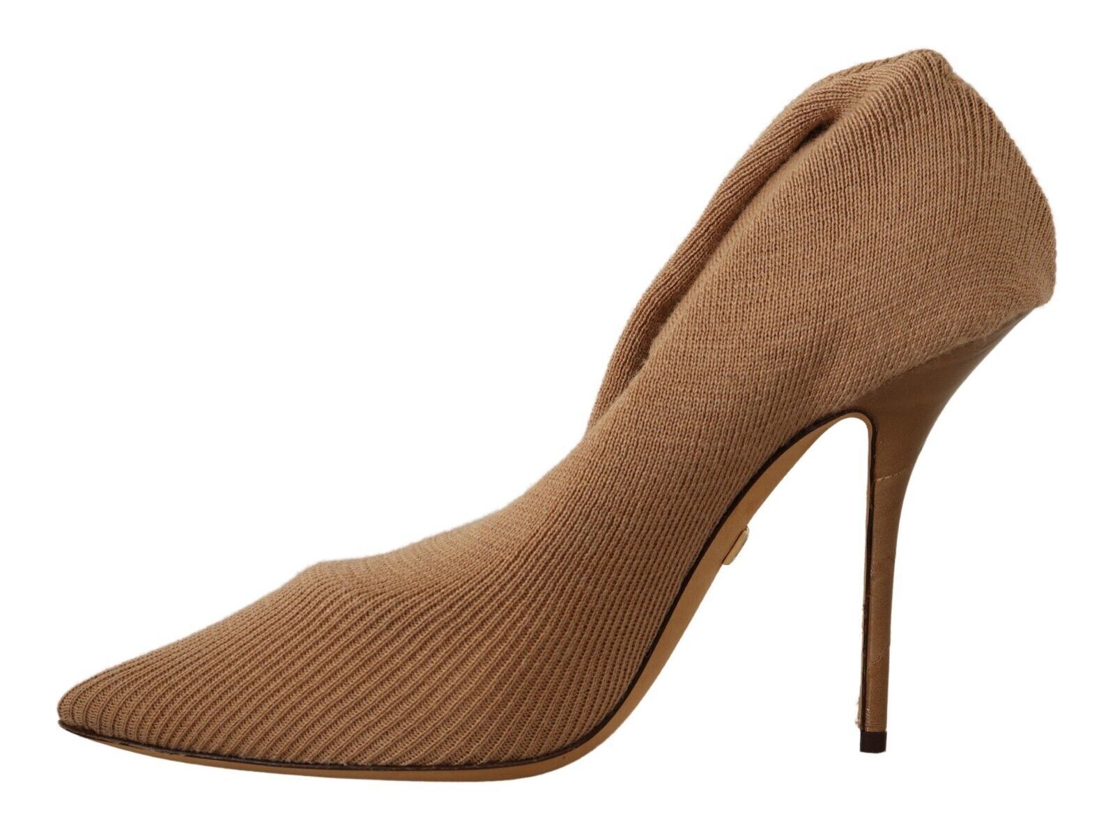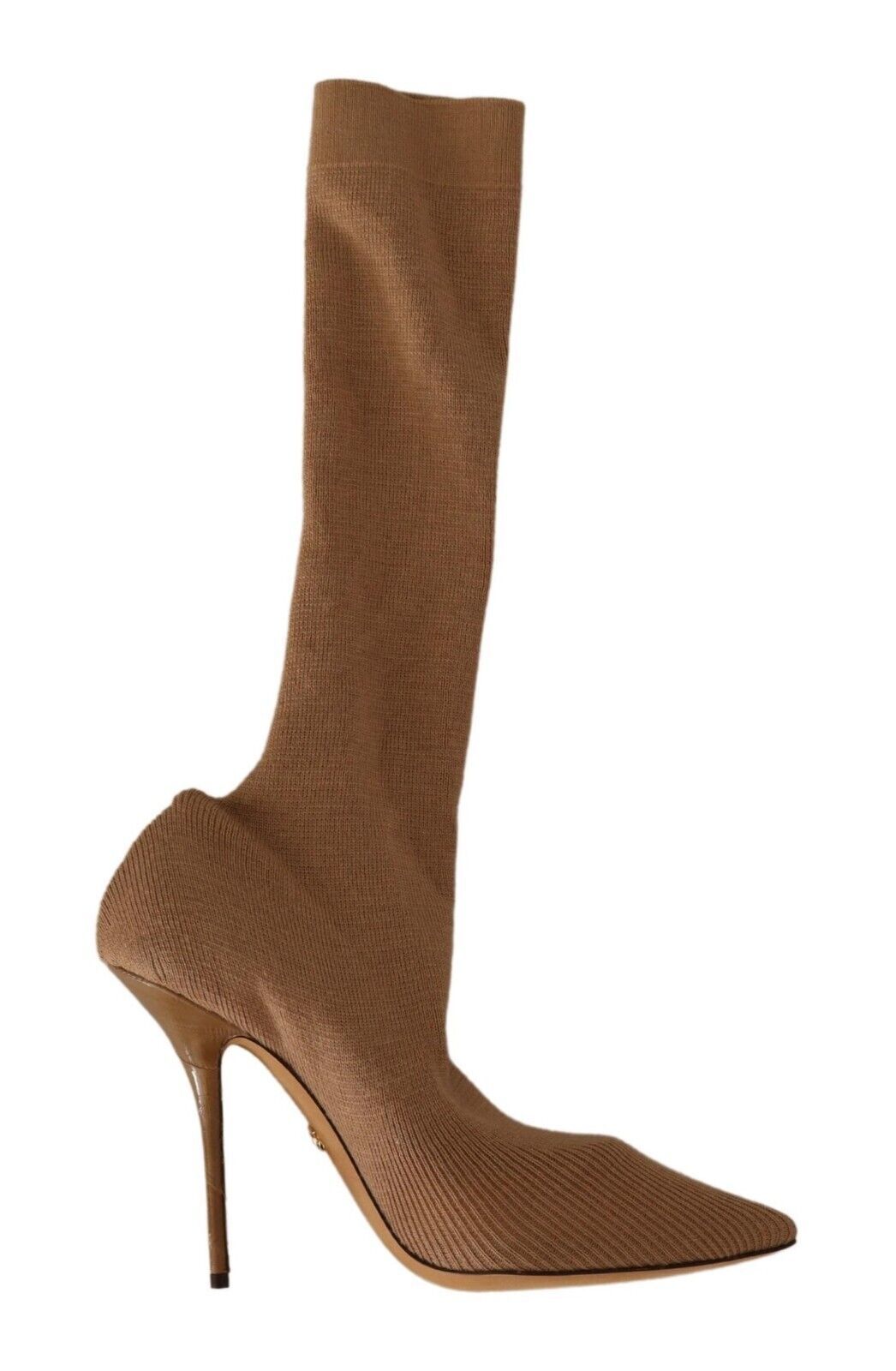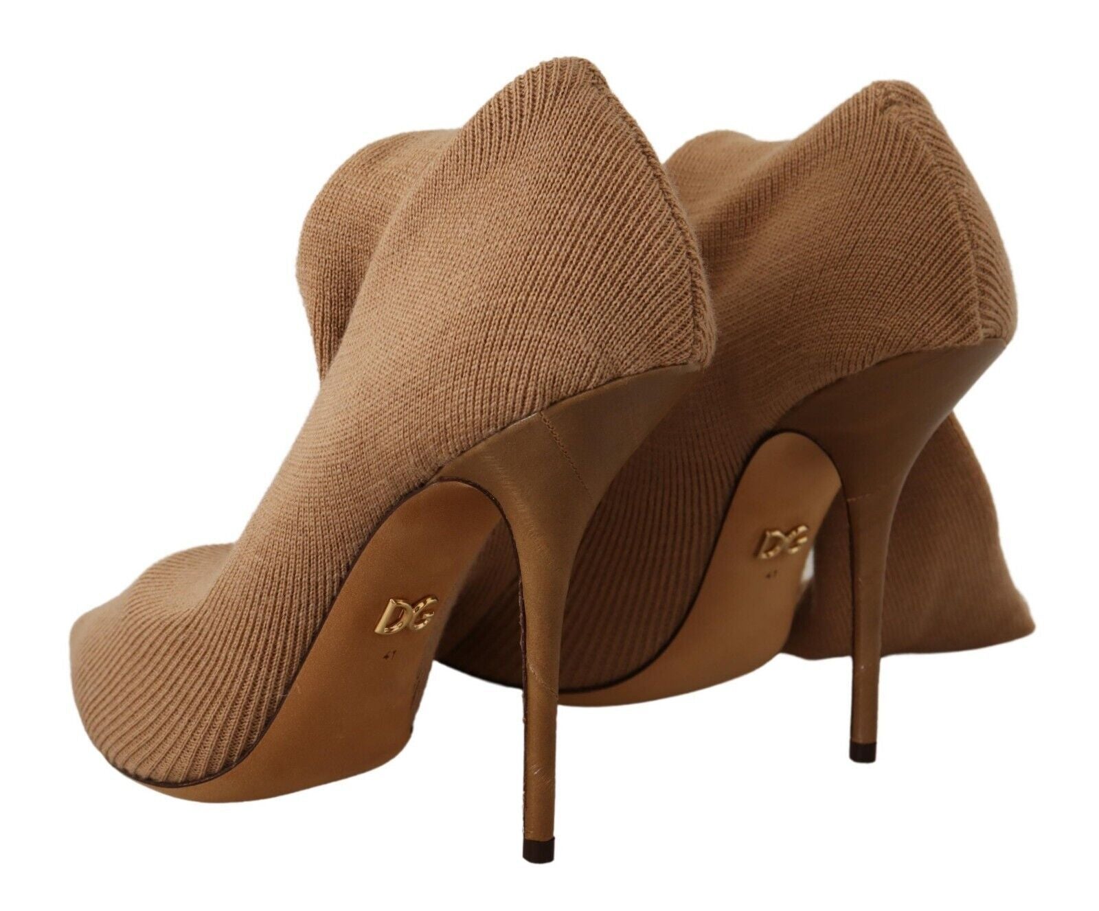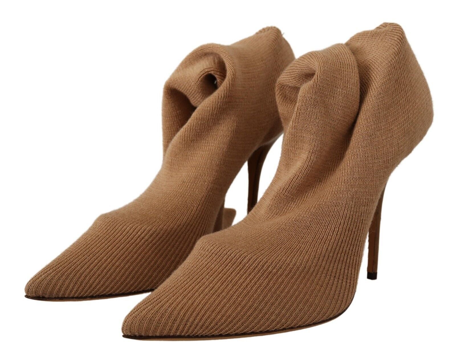 Indulge in the epitome of Italian luxury with these stunning Light Brown booties from Dolce & Gabbana. Perfectly crafted with a plush wool composition and eelskin leather, these shoes boast a sophisticated stiletto heel, ready to elevate your ensemble to new heights. Made in Italy, they are a testament to exquisite craftsmanship and unrivaled style, complete with delicate logo details.