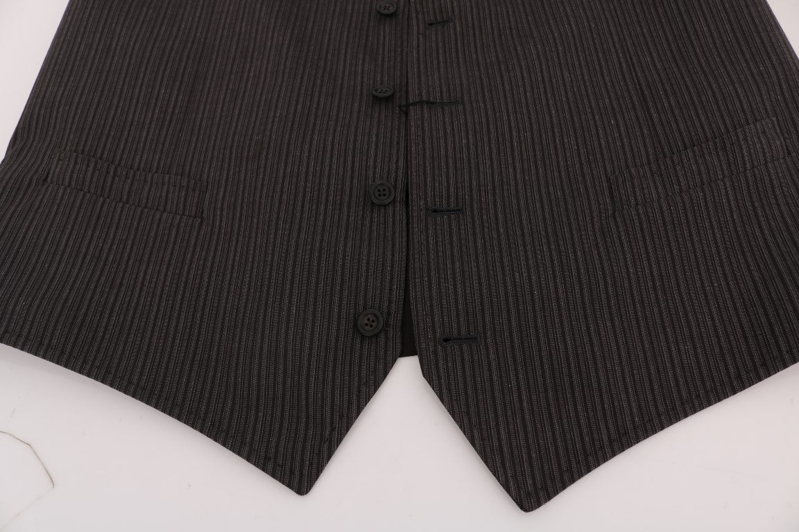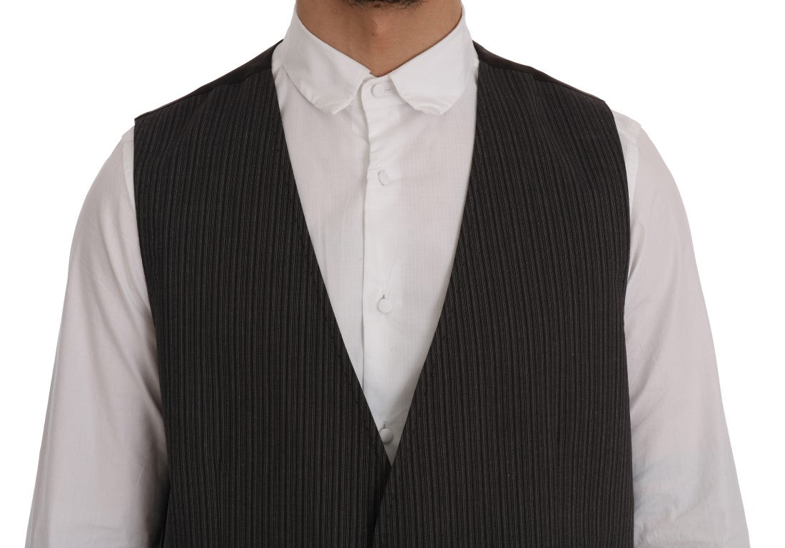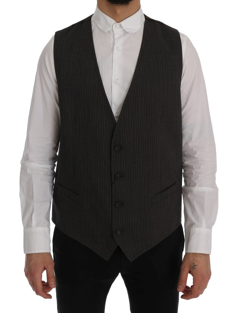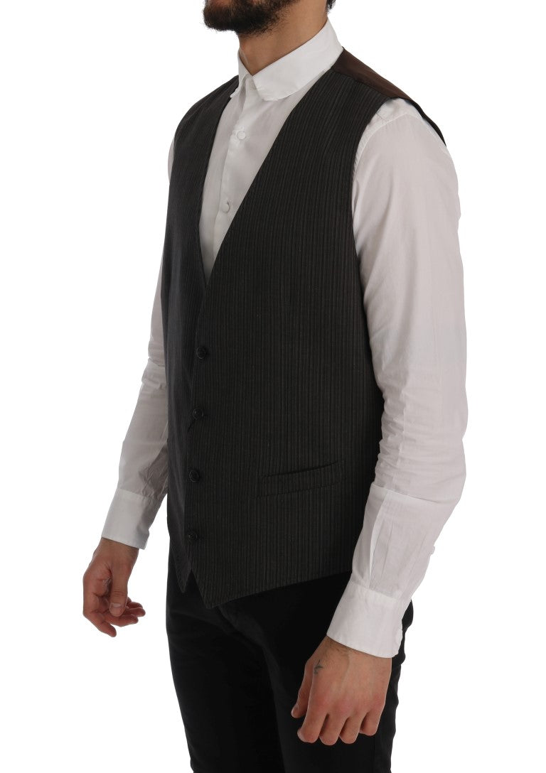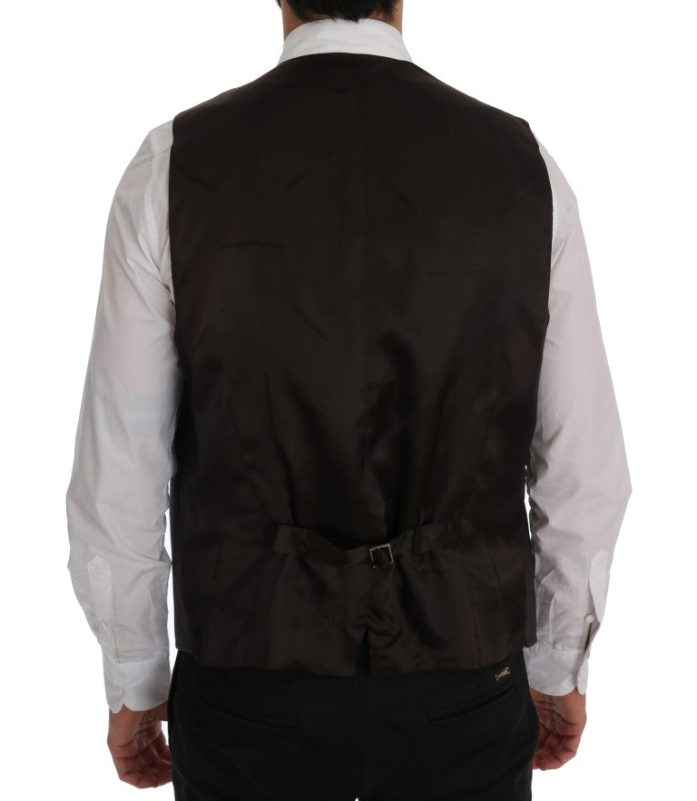 Exude timeless elegance with this Dolce & Gabbana single-breasted waistcoat vest. Boasting a classic brown striped design, this vest is perfect for adding a touch of sophistication to any ensemble. With full front button closure and an adjustable back waist strap, you’ll achieve a flawless fit. Not to forget, the subtle logo details that offer a signature touch to this luxurious garment.