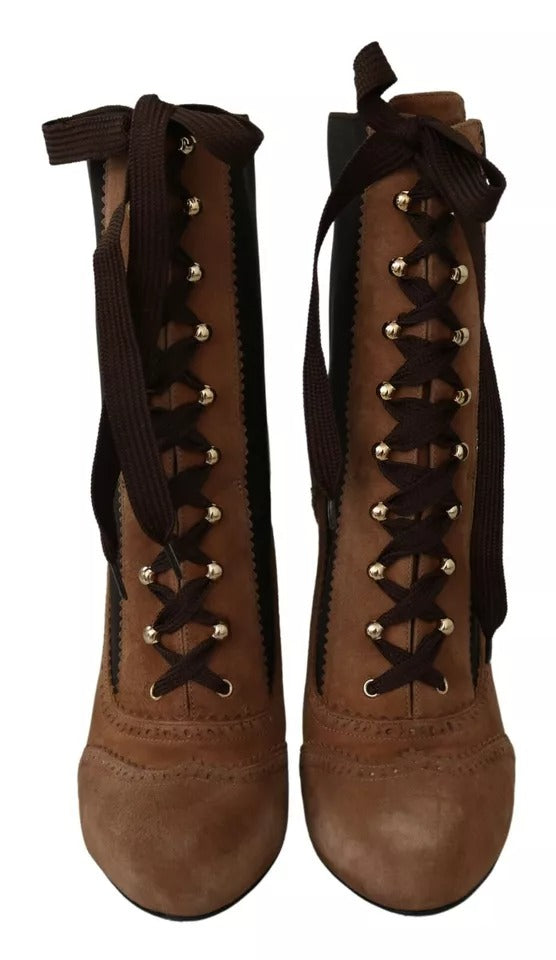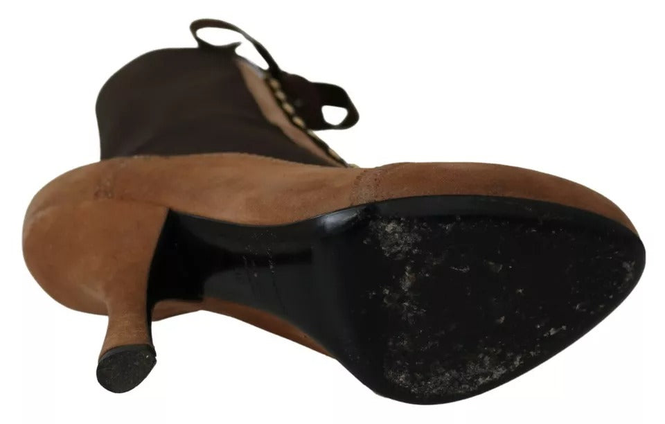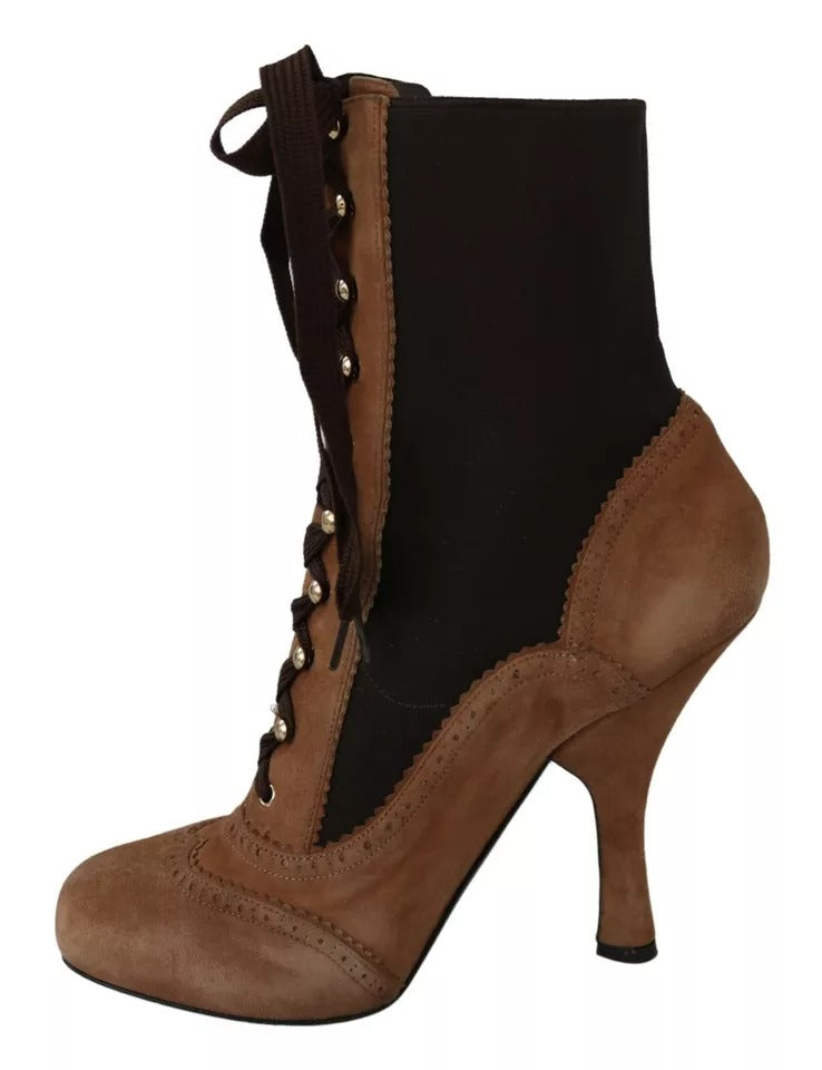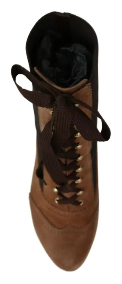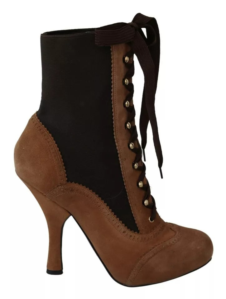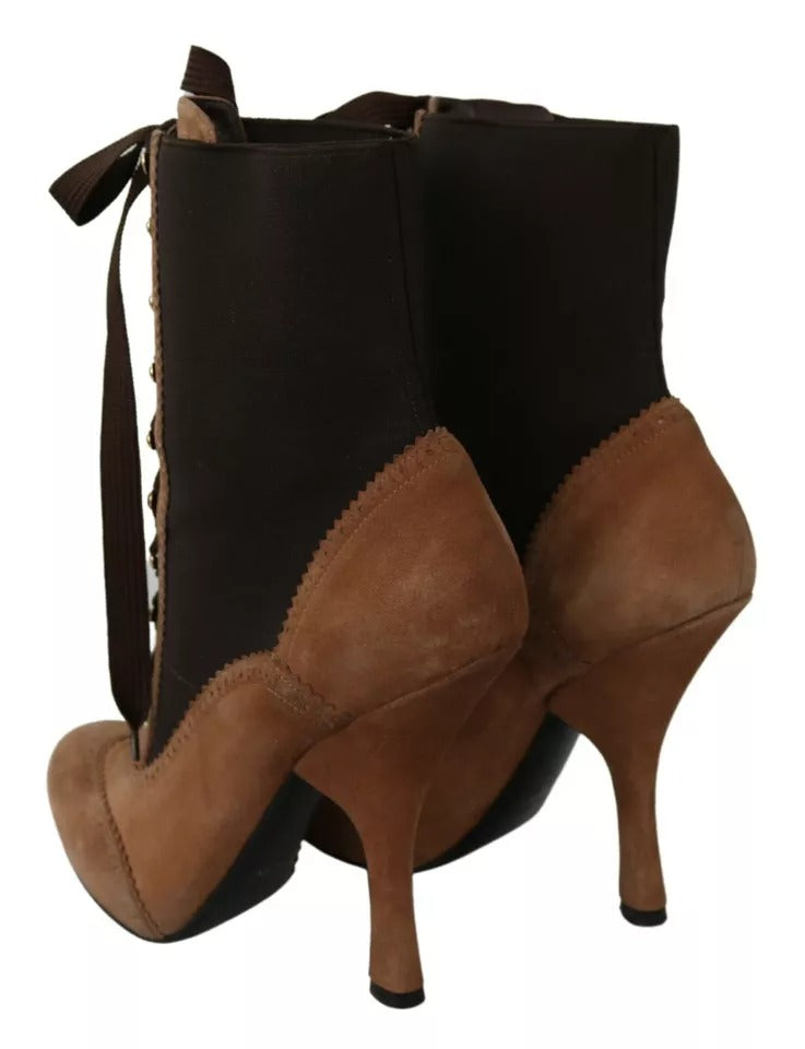 Brown Stretch Suede Ankle High Boots Shoes