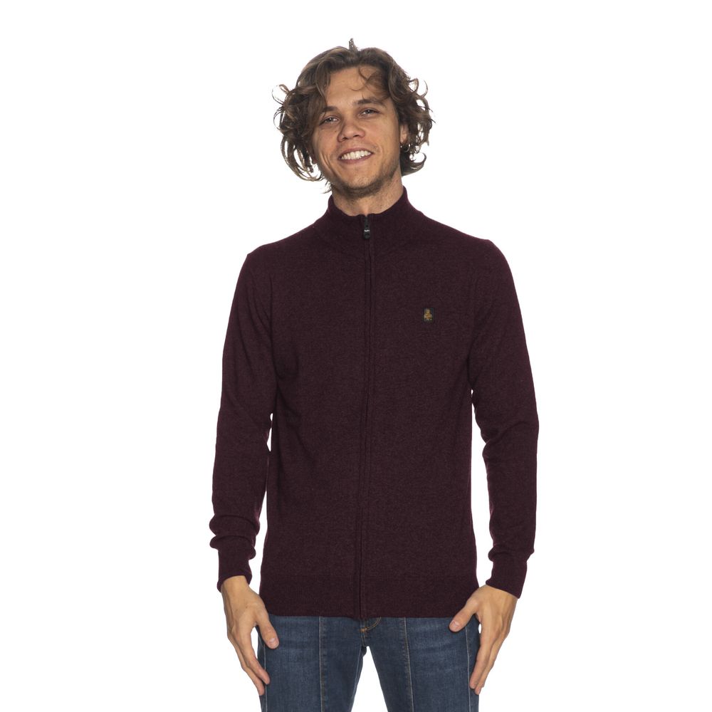 Elevate your wardrobe with the exquisite Refrigiwear York cardigan, a sophisticated fusion of warmth and luxury. This burgundy masterpiece boasts a plush blend of wool and cashmere, ensuring unparalleled comfort and style. The cardigan features a high collar and chic zip closure, accented with the iconic Refrigiwear logo embroidered on the chest. Perfect for the modern man with a bold sense of fashion, this piece guarantees to make a statement in any setting.