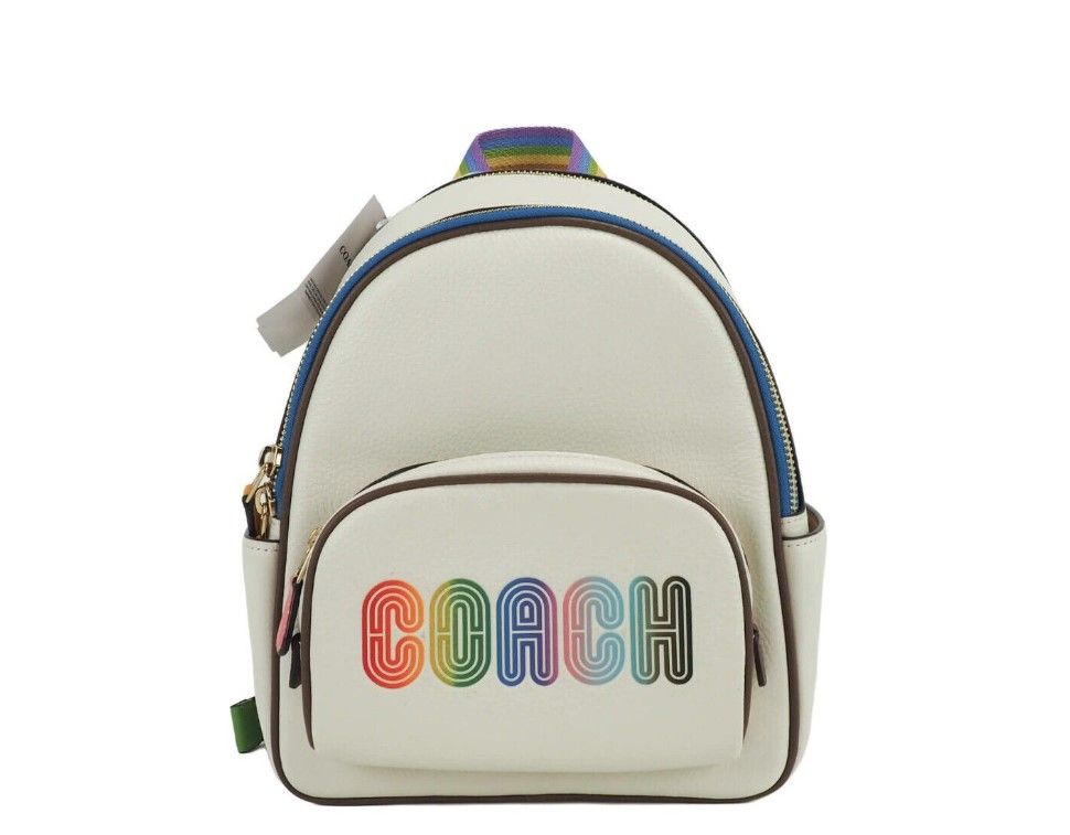 Style: Coach Mini Court Rainbow Logo Backpack (Chalk Multi)