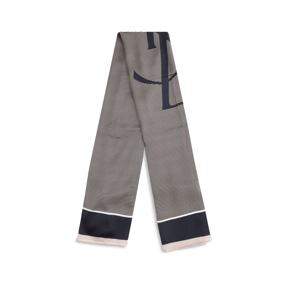 The Saint Laurent Semi-Transparent Striped Stole is distinguished by the light elegance of the fabric and the essential design. The Cassandre signature stands out in the center, while the plain border and smooth trim complete the accessory with a touch of understated sophistication.