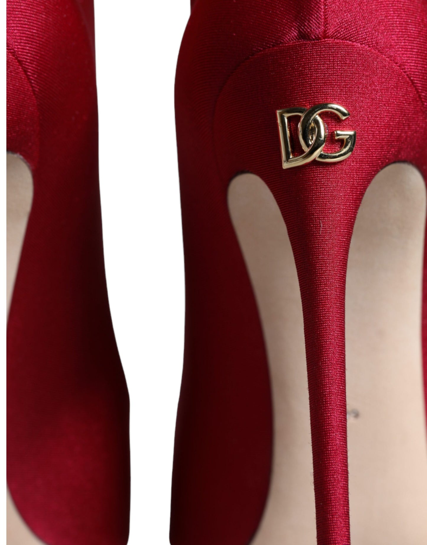 Cherry Red Stretch Stilettos Ankle Boot Shoes
