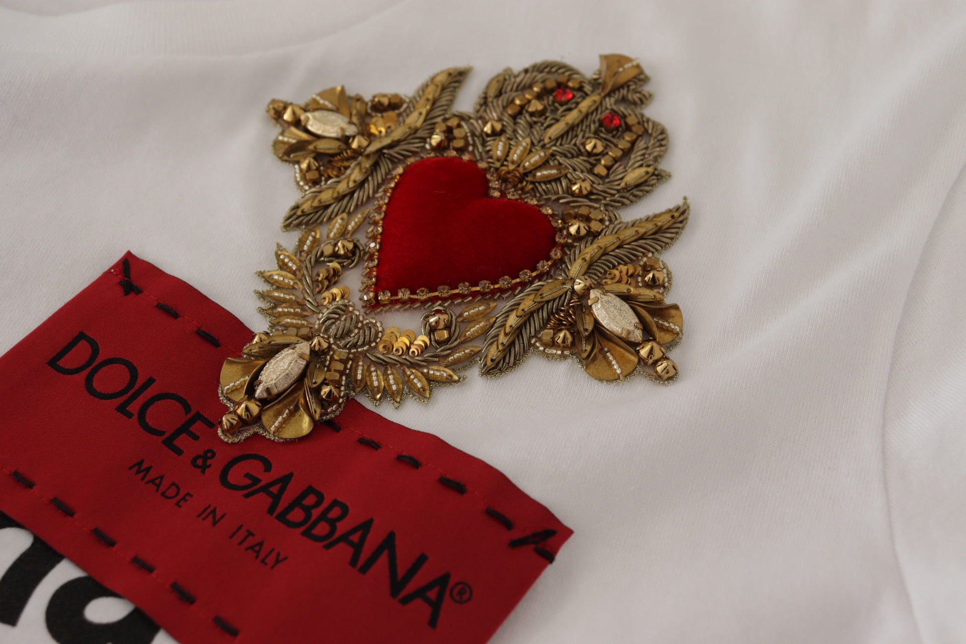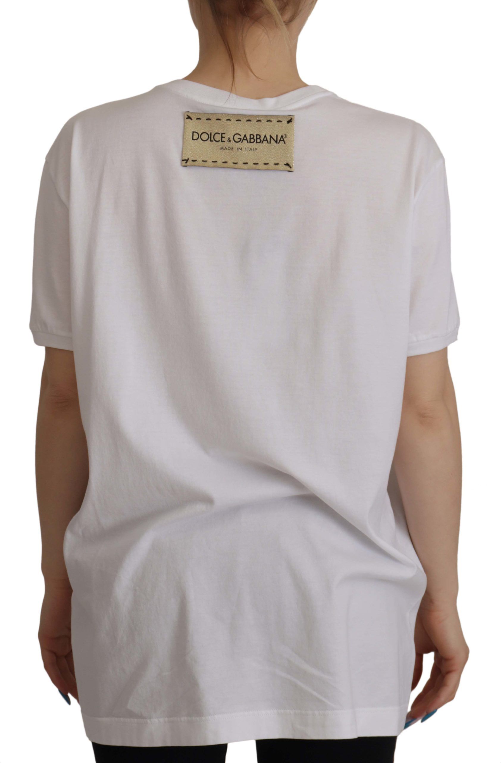 Discover the epitome of Italian chic with this gorgeous, brand new, tag-attached Dolce & Gabbana T-shirt. Exuding elegance with its stunning print and ornate embellishments, this piece is crafted from the finest 100% cotton for your absolute comfort. Perfectly tailored with a round neck and short sleeves, it captures the essence of effortless luxury. A white hue serves as a canvas for the exquisite logo details that celebrate the brand’s heritage. Get ready to elevate your wardrobe with this made-in-Italy masterpiece – a true blend of fashion and artistry by Dolce & Gabbana.