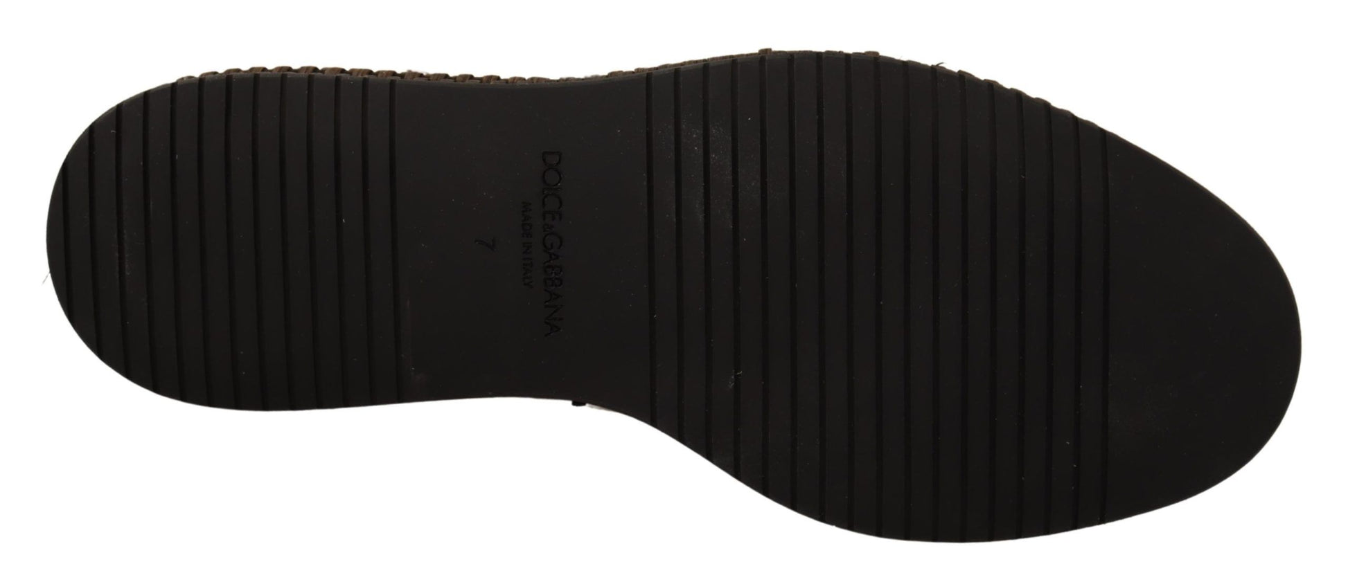Indulge in the fusion of luxury and comfort with our Dolce & Gabbana espadrilles. Crafted from supple velvety suede with a sneaker-inspired silhouette, these cream-colored shoes are a testament to fine Italian craftsmanship. Trimmed with premium leather for an added touch of elegance, they come equipped with a handy back loop for ease of wear. Whether stepping out for a casual day or elevating your weekend style, these espadrilles with their signature logo detailing are the epitome of laid-back luxury.