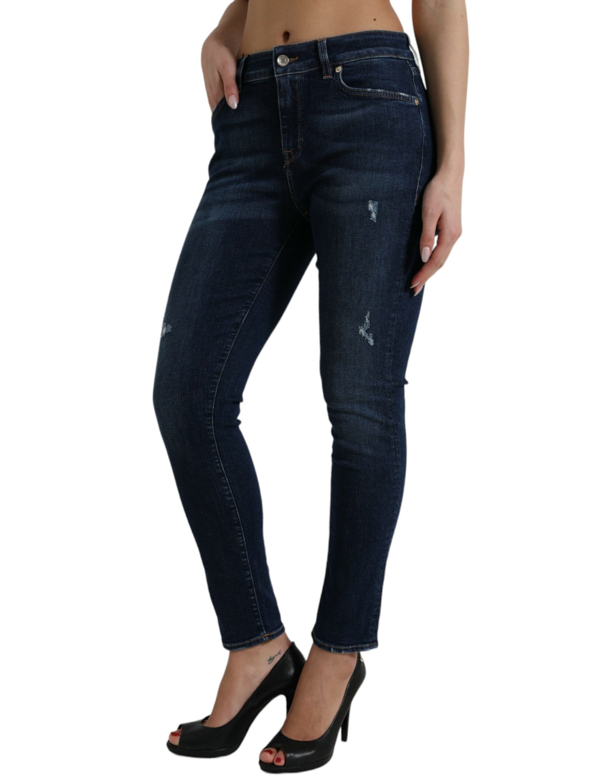 Elegant Dark Blue Mid Waist Stretch Jeans